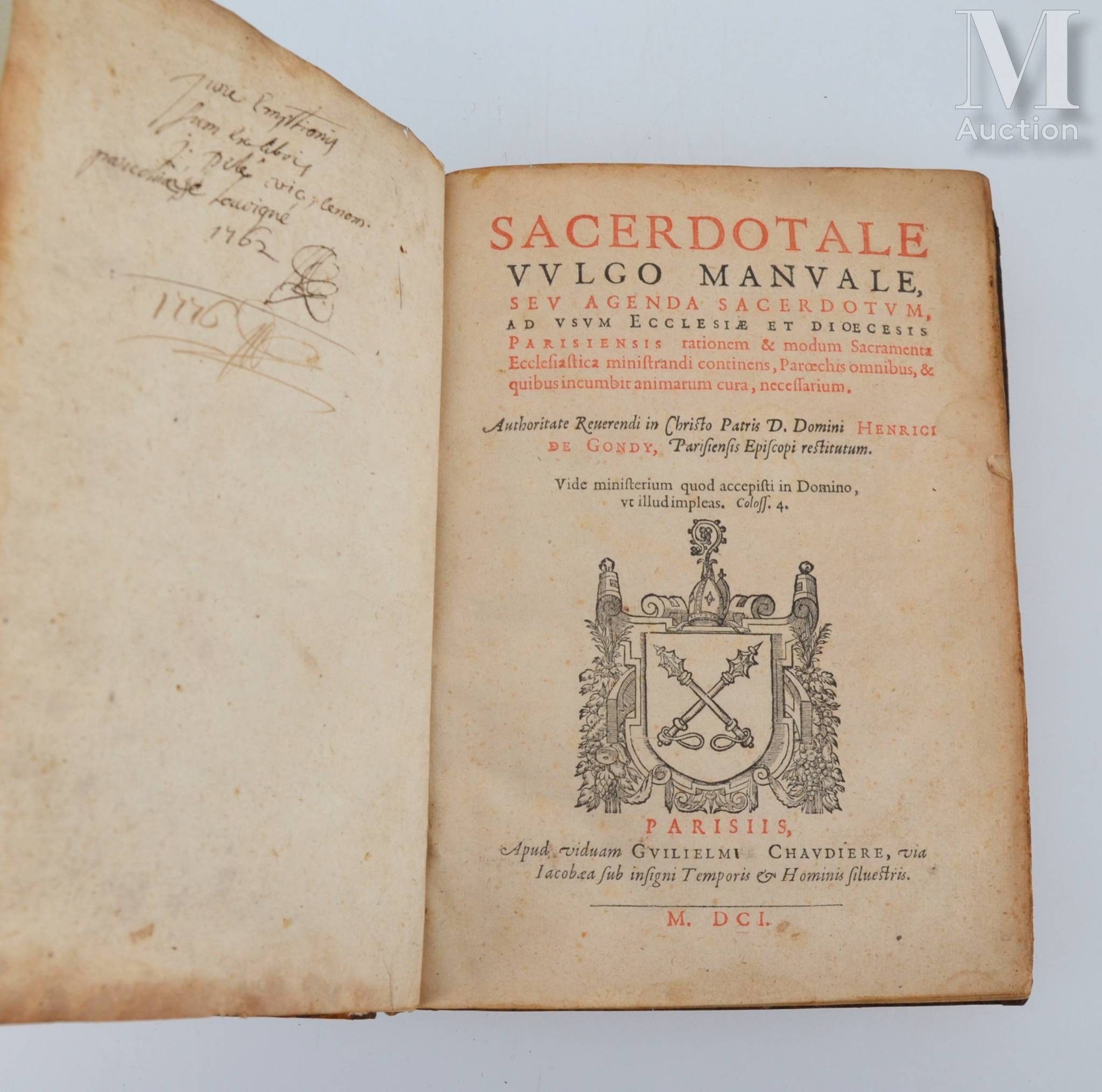 Sacerdotale vulgo manuale eu agenda sacerdotum, ad usum ecclesiae et dioecesis Parisiensis. Paris, Veuve Guillaume Chaudière, 1601. In-4, brown calf, large gilt iron in the centre, small iron on the spine (Binding of the period).