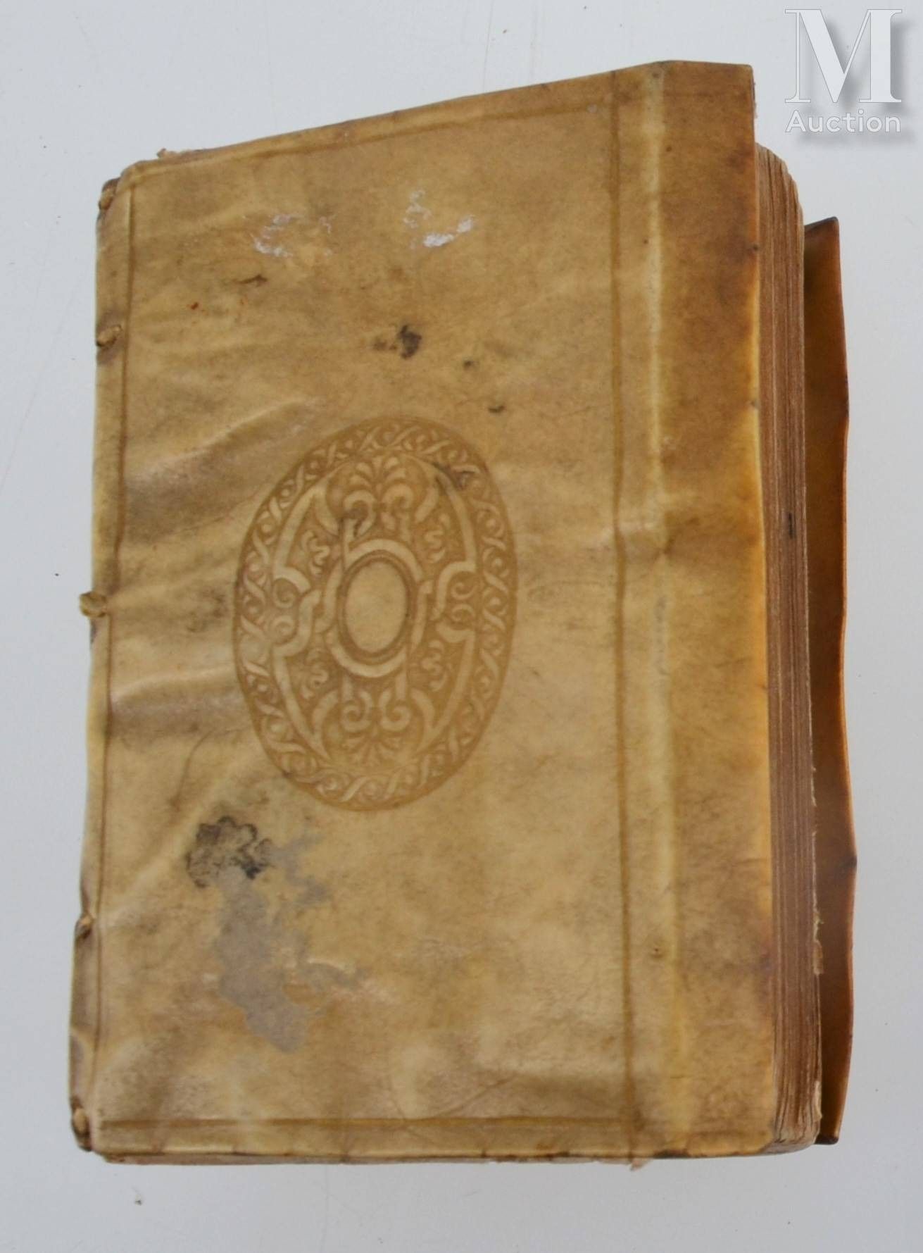 Libri IX. Ejusdem et Trajani Imp. [...]. S.l. [Geneva], Henri Estienne, s.d. [1581]. 2 parts in one volume in-16, overlapping vellum, fillet, central azure cartouche, smooth spine decorated, gilt edges (Binding of the period).