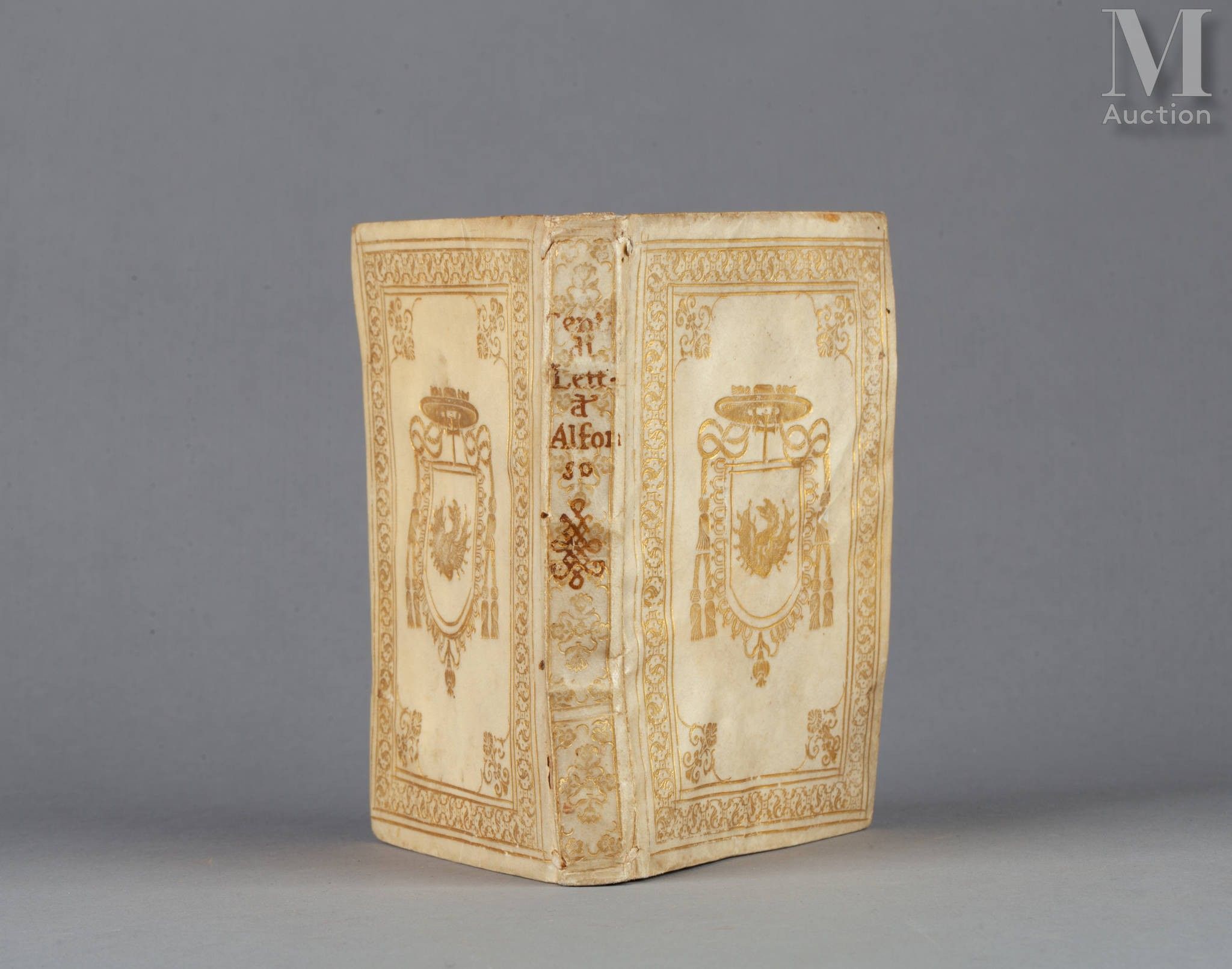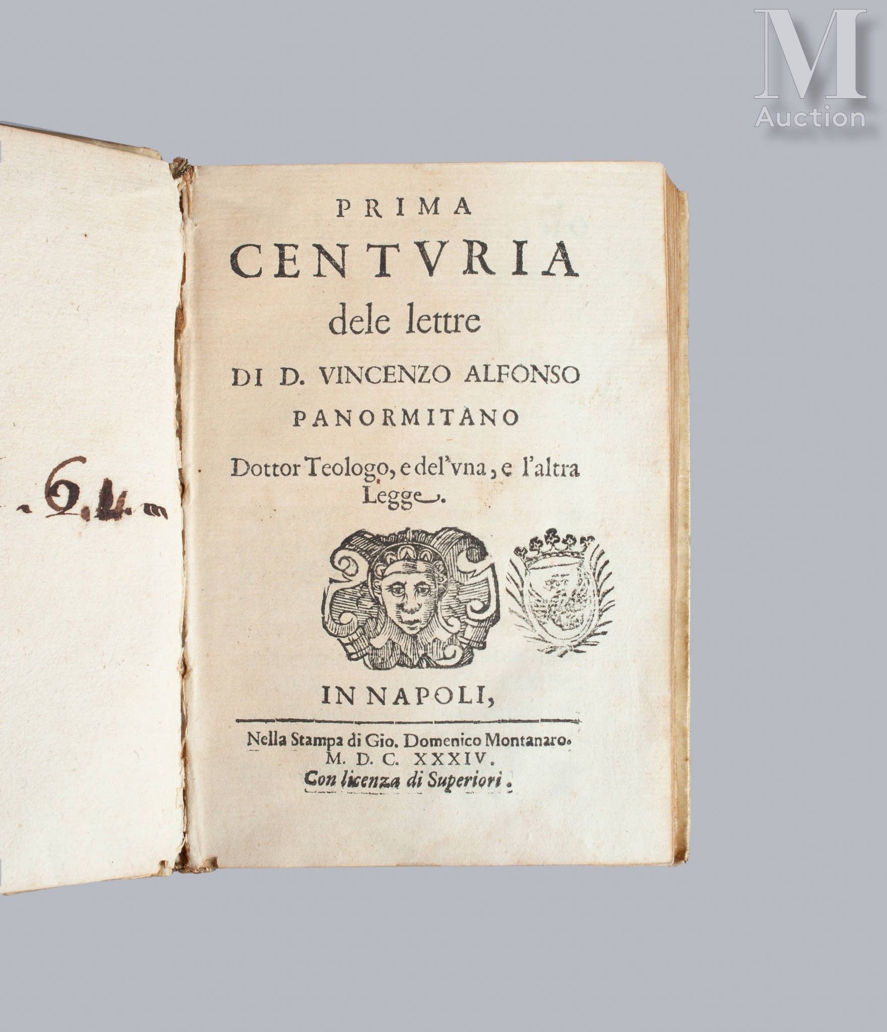 Prima centuria dele lettre di D. Vincenzo Alfonso Panormitano. Naples, Gio. Domenico Montanaro, 1634. Small in-8, soft vellum, gilt border, coat of arms in the centre, traces of laces, smooth spine decorated with gilt small irons with the title written in pen, gilt edges (Italian binding of the period).