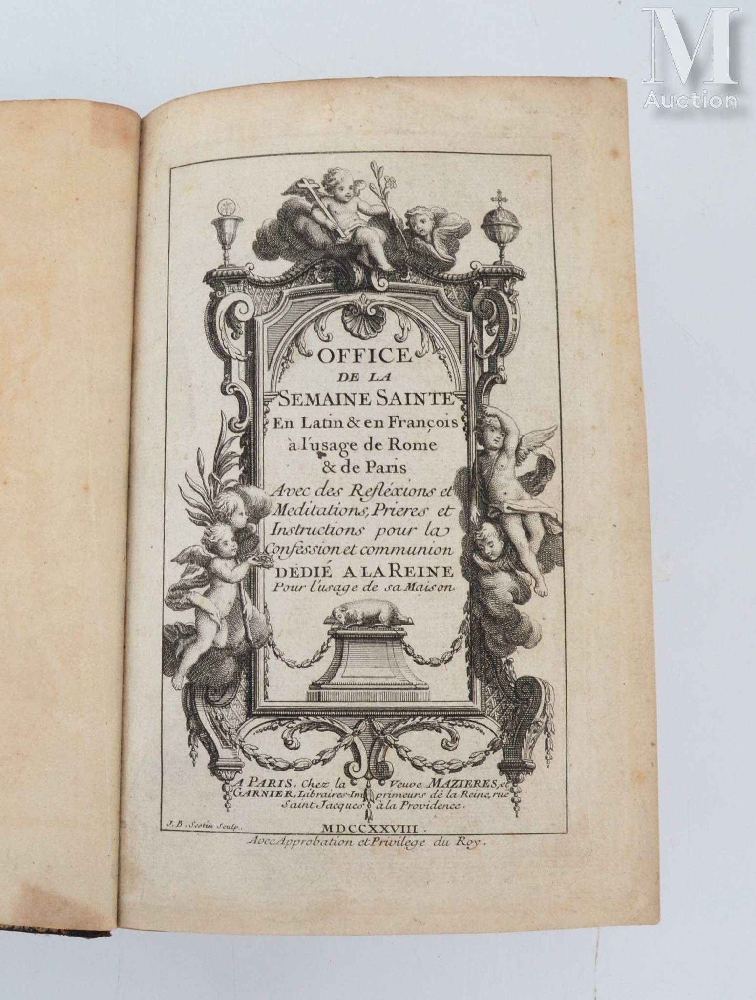L'Office de la Semaine Sainte, en latin et en françois à l'usage de Rome et de Paris, dédié à la Reine. Paris, Veuve Mazières et Garnier, 1728. In-8, black morocco, roulette decorated with large irons in the handles of the drawers, silver decoration, gilt edges (Binding of the period).