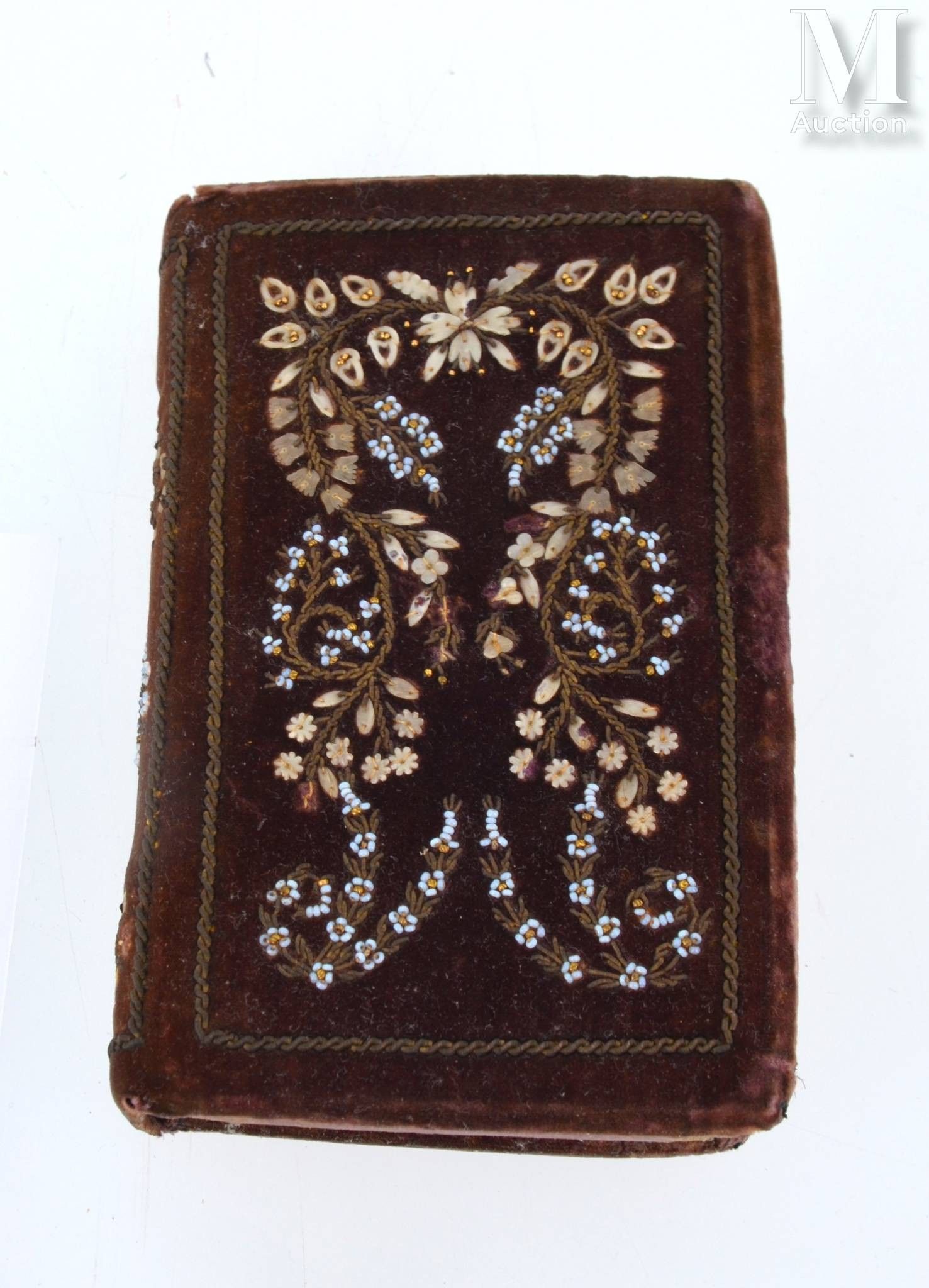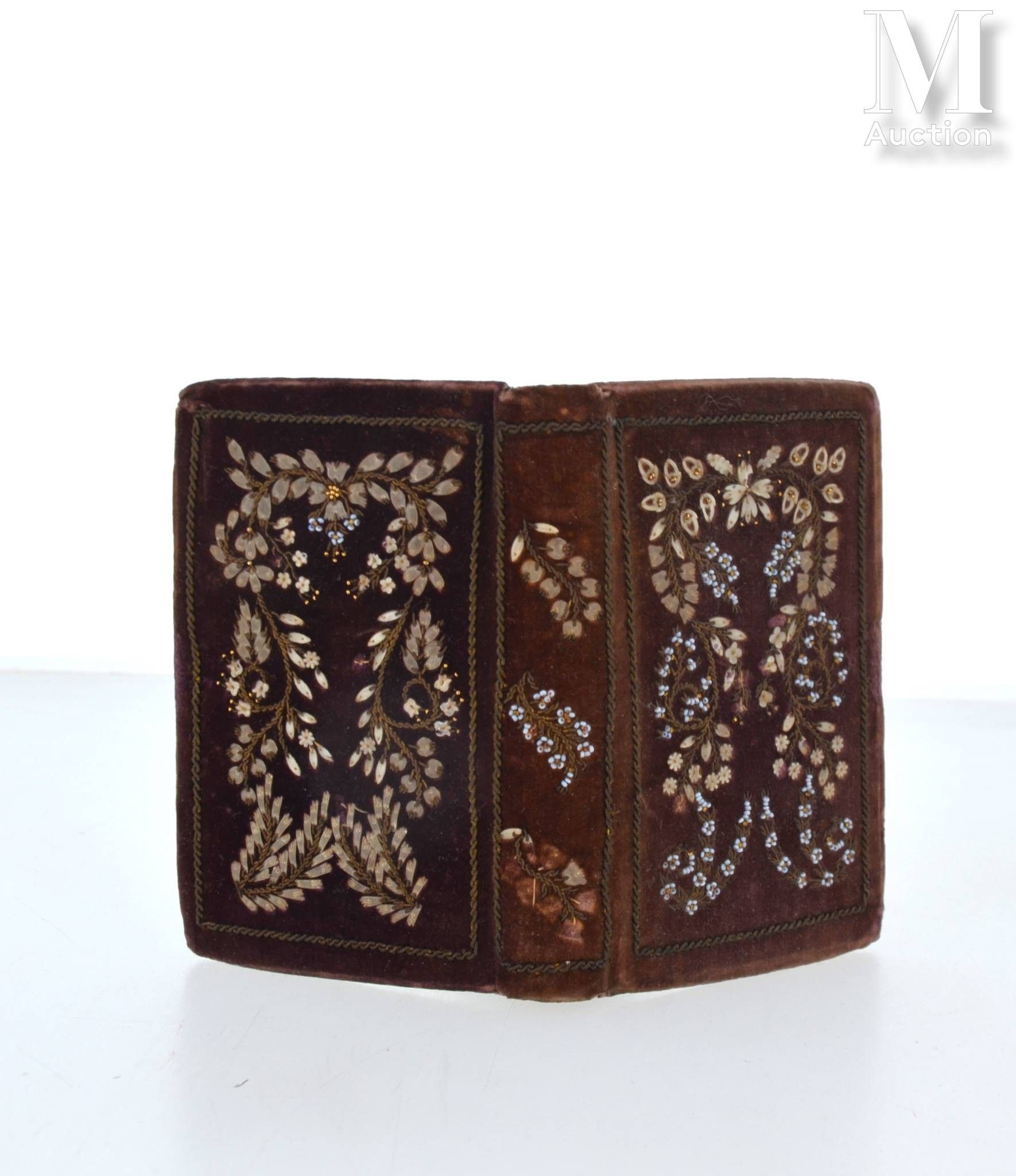 Imperial Hours. Paris, Saintin [Imprimerie de Firmin-Didot], s.d. [early 19th century]. [early 19th century]. In-12, plum velvet, boards and spine decorated with embroidered flowers made with pieces of shells, gilt edges (Binding of the period).