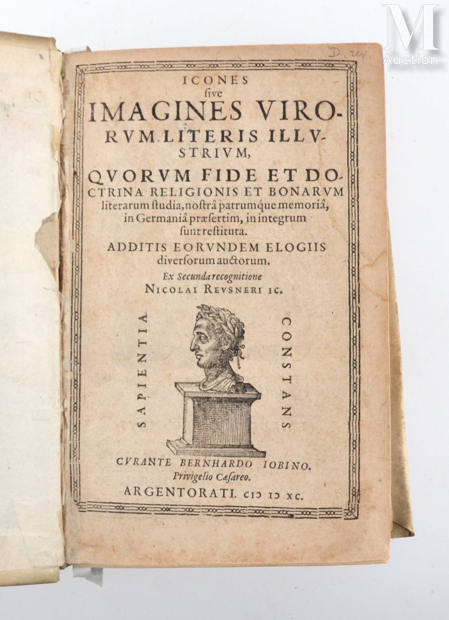 Icones sive imagines virorum literis illustrium. Strasbourg, Bernhard Jobin, 1590. 8 pages, modern vellum.
