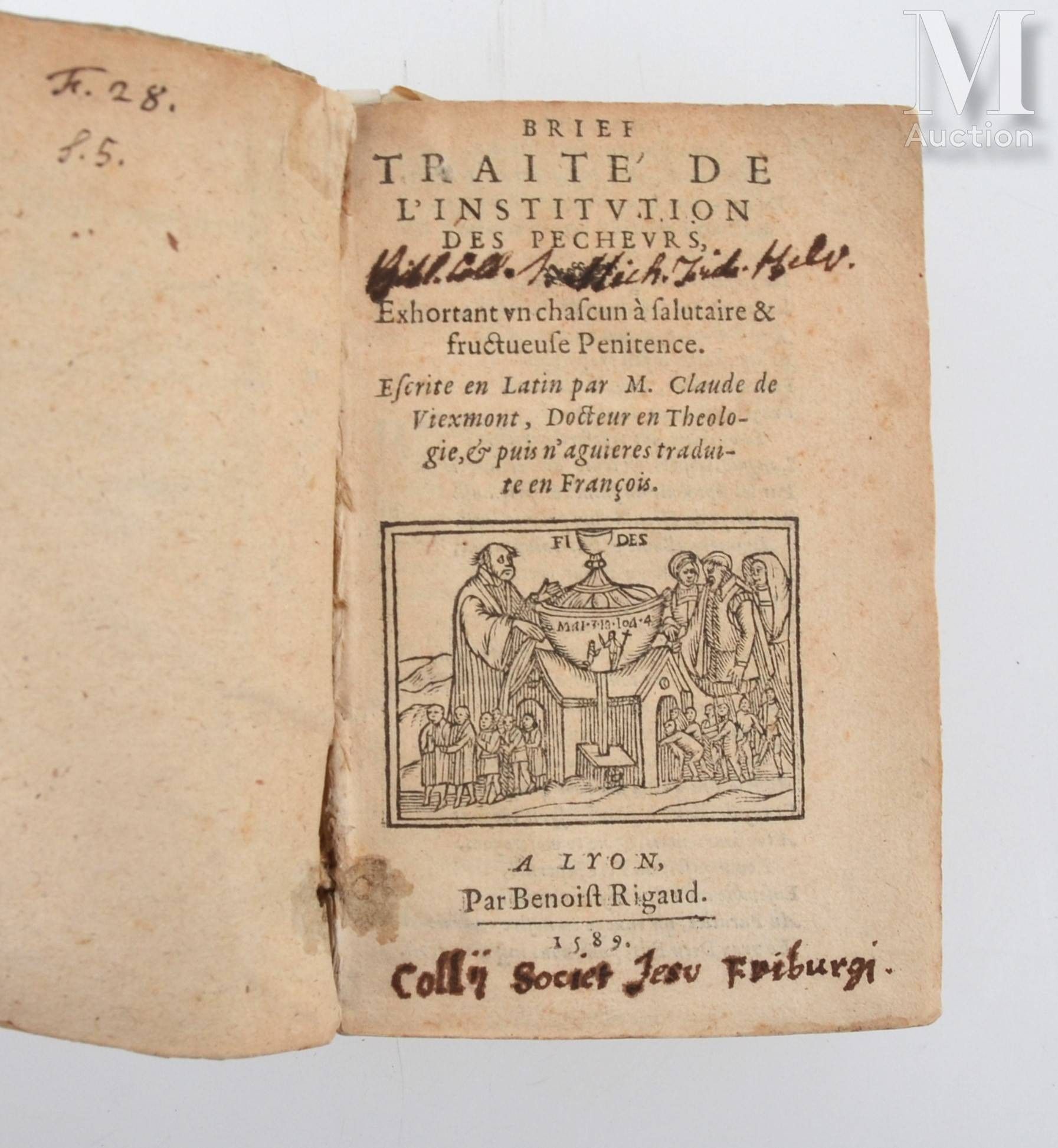 Brief treatise on the institution of sinners. Exhortant un chacun à salutaire & fructueuse Pénitence. Lyon, Benoît Rigaud, 1589. In-16, contemporary soft vellum.
