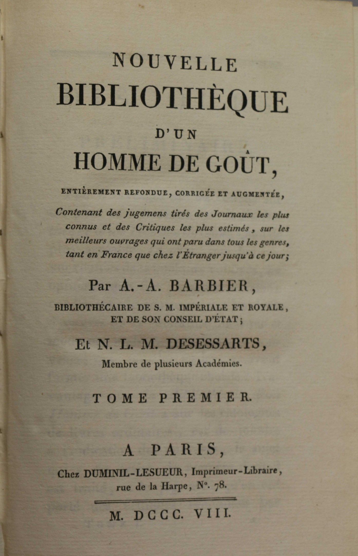 BARBIER. Nouvelle bibliothèque d'un homme de goût.