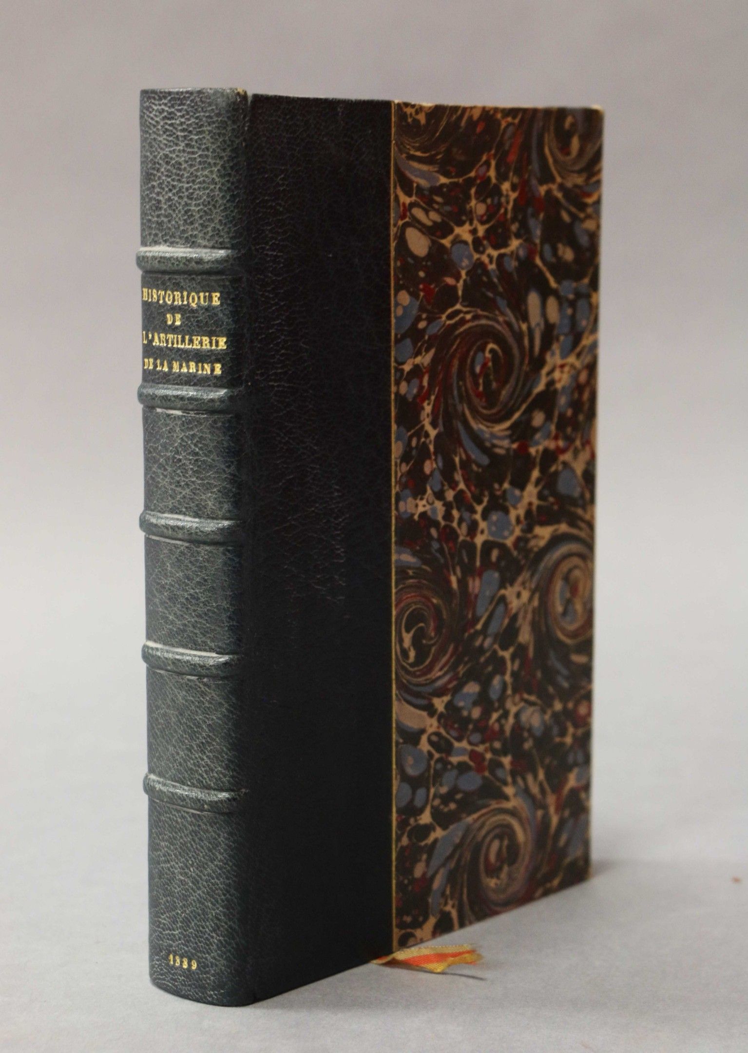 DELAUNAY & GUITTARD. Historique de l'artillerie de la Marine. Paris, Dumoulin, 1889 in-8, half mar. A gros grain vert, spine ribbed, gilt head. With 16 colour plates. Handwritten note on the back of the frontispiece.
