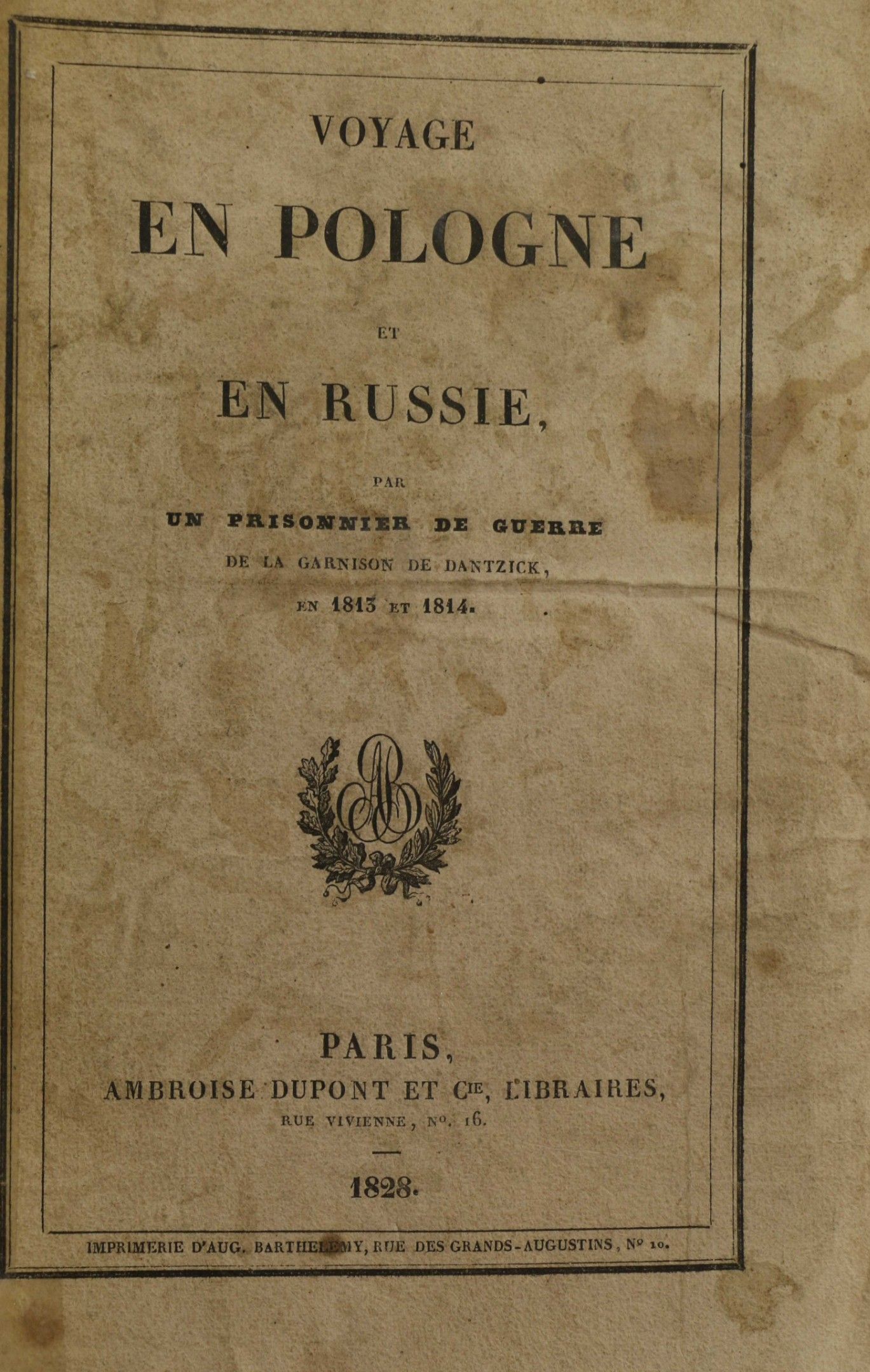ARPENTIGNY (Stanislas D'). Voyage en Pologne et en Russie par un prisonnier de guerre de la garnison de Dantzick en 1813 et en 1814. Paris, Dupont, 1828, in-8, half-rel. red chag., spine ribbed, covers preserved, worn. Wear to endpapers with scotch tape. 6 loose handwritten leaves of receipts and expenses, history of Russia.