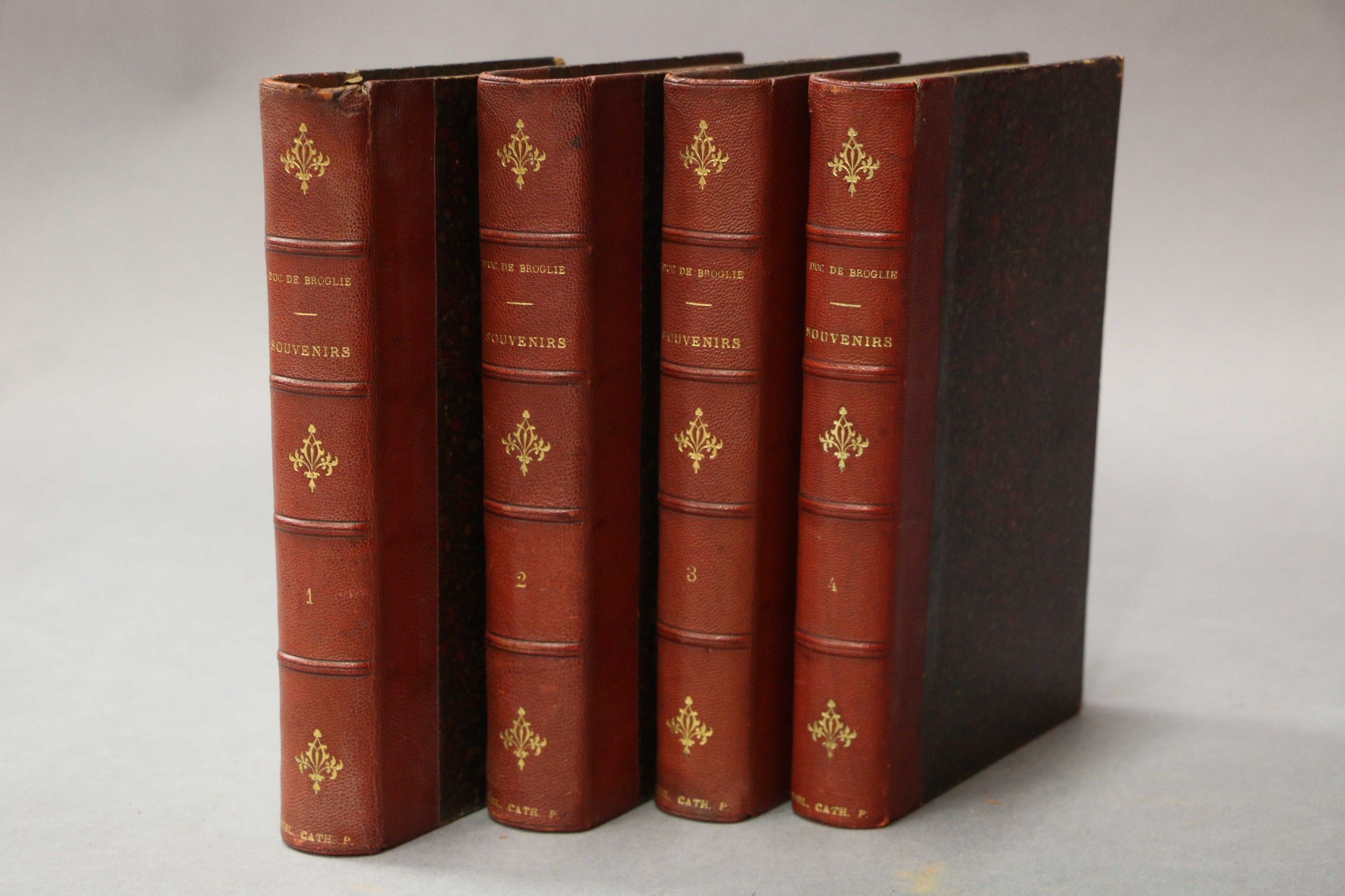 BROGLIE (Duke of). Souvenirs.1785-1870. Paris, Lévy,1886, 4 vols in-8, half-rel. red chag., ribbed spine (worn binding). FIRST EDITION. Some foxing.