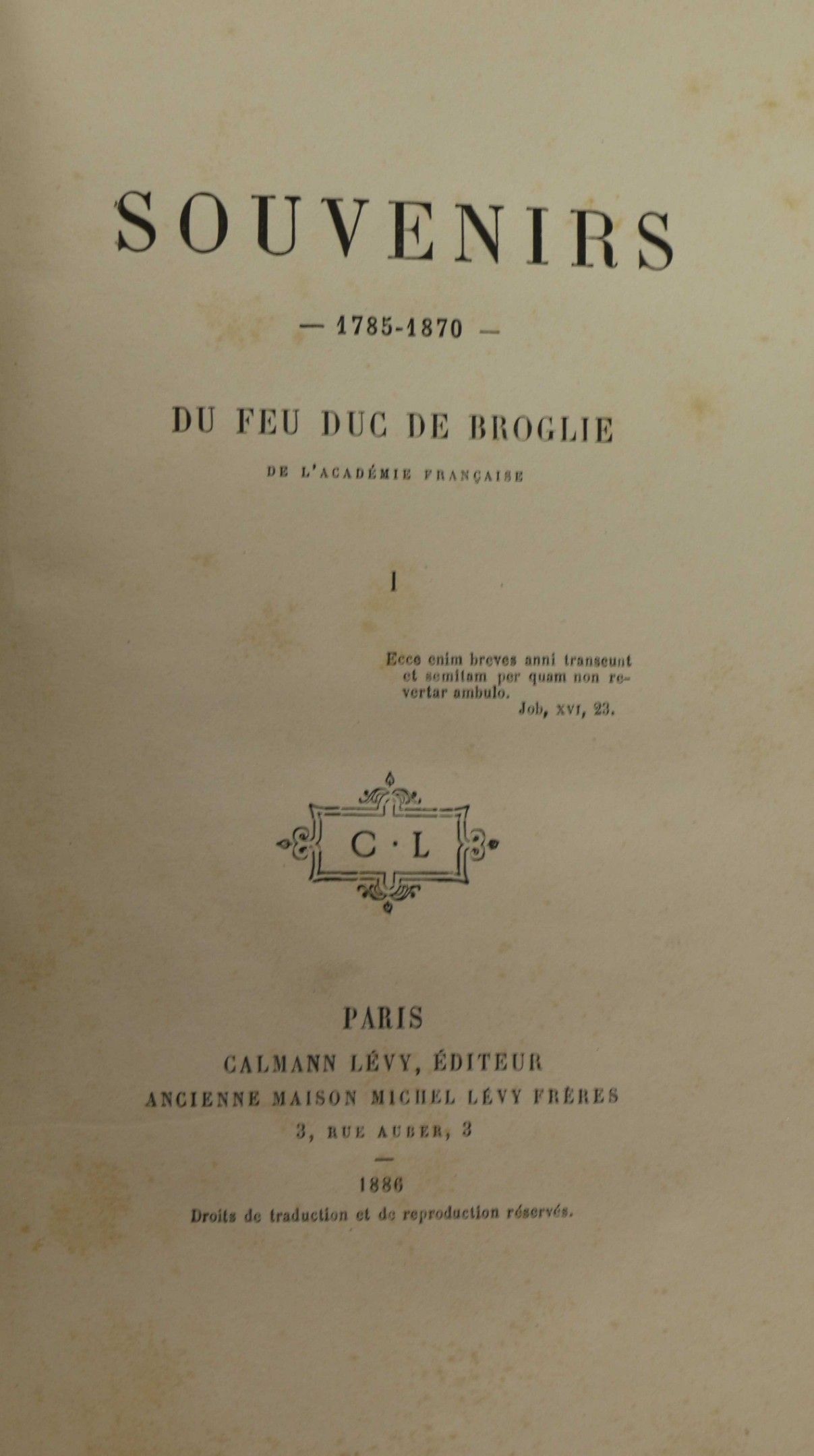 BROGLIE (Duke of). Souvenirs.1785-1870.
