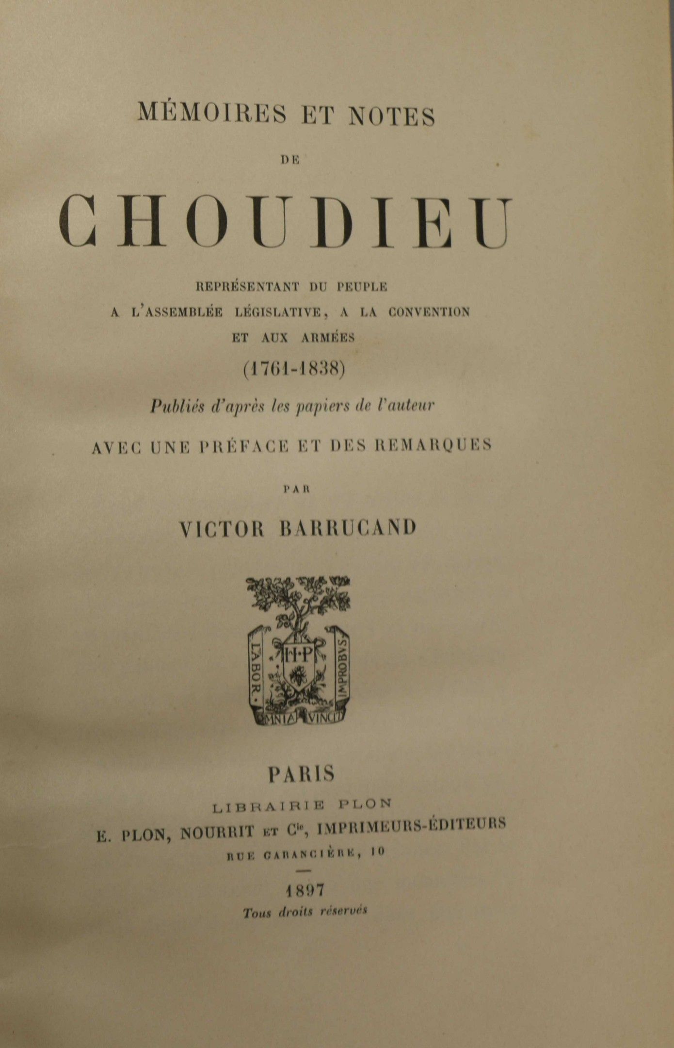 CHOUDIEU. Memoirs and notes. With a preface and remarks by V…