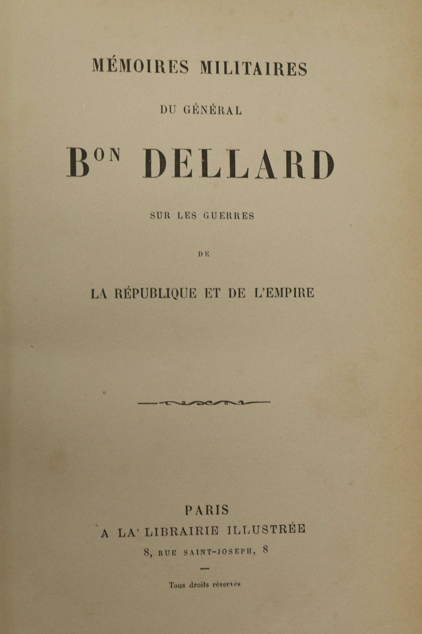 DELLARD (Baron). Mémoires militaires du général baron Dellard sur les guerres de la République et de l'Empire. Paris, A la Libraire illustrée, s.d. (1892), in-8, half-rel. bas. black, smooth spine, decorated. FIRST EDITION. With a frontispiece portrait.