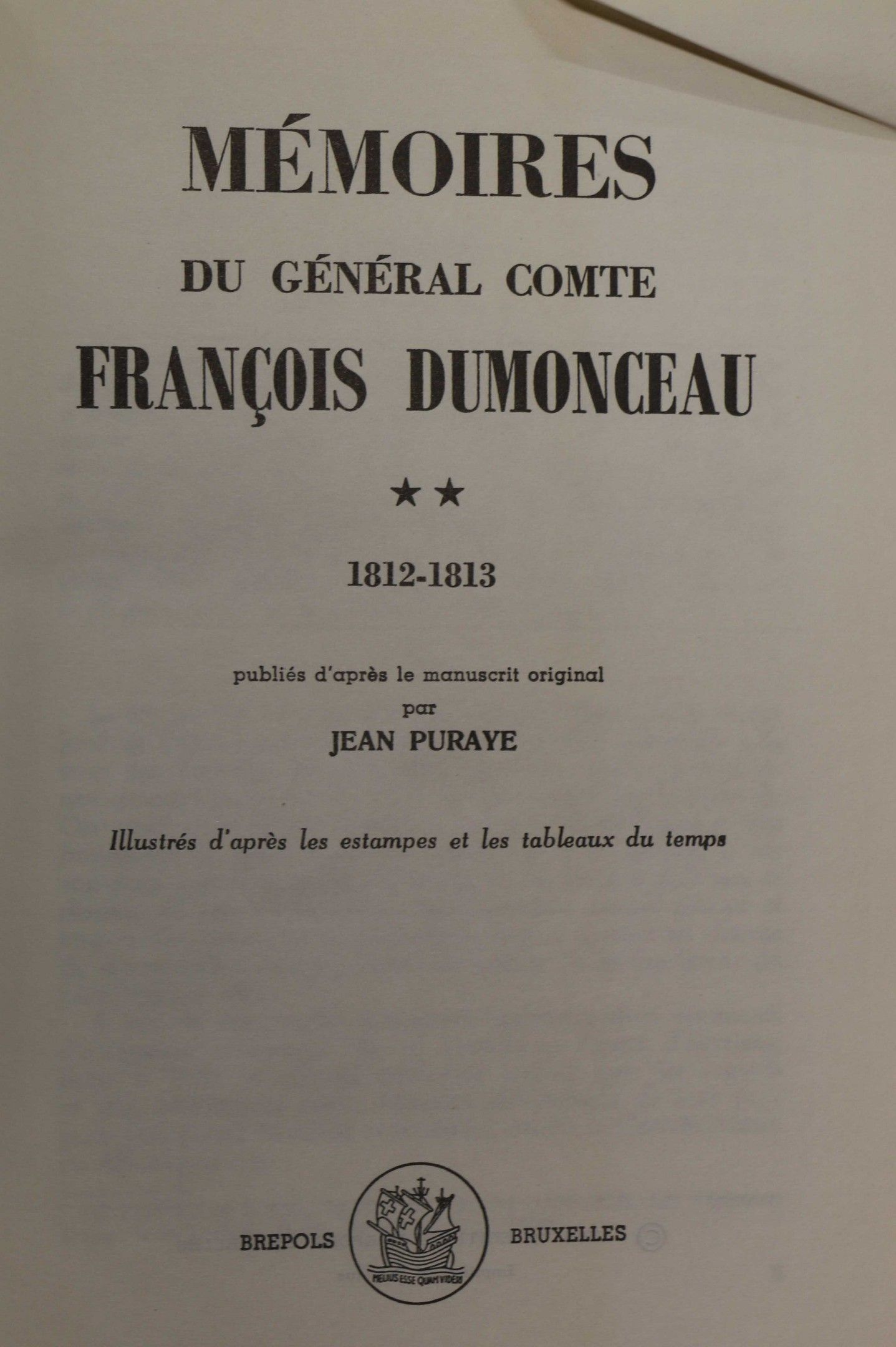 DUMONCEAU. Memoirs of General Count François Dumonceau. Bruxeles, Brepols, 1958, 3 vol. in-8, cart. Edit. Illustrated.