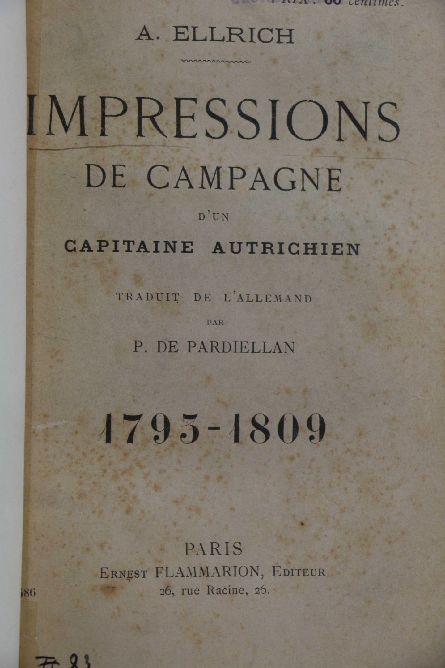 ELLRICH (A.) Impressions de campagne d'un capitaine autrichi…