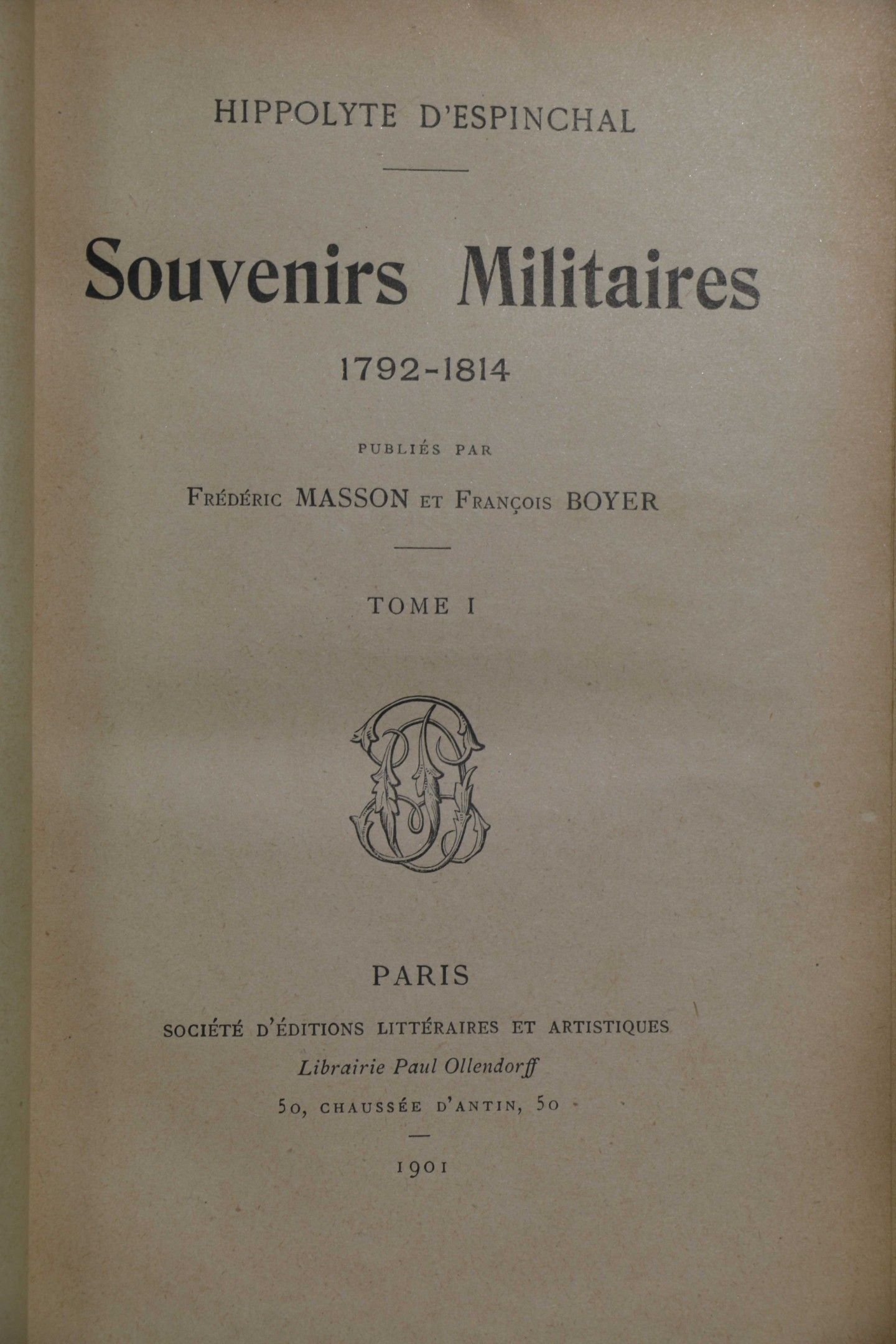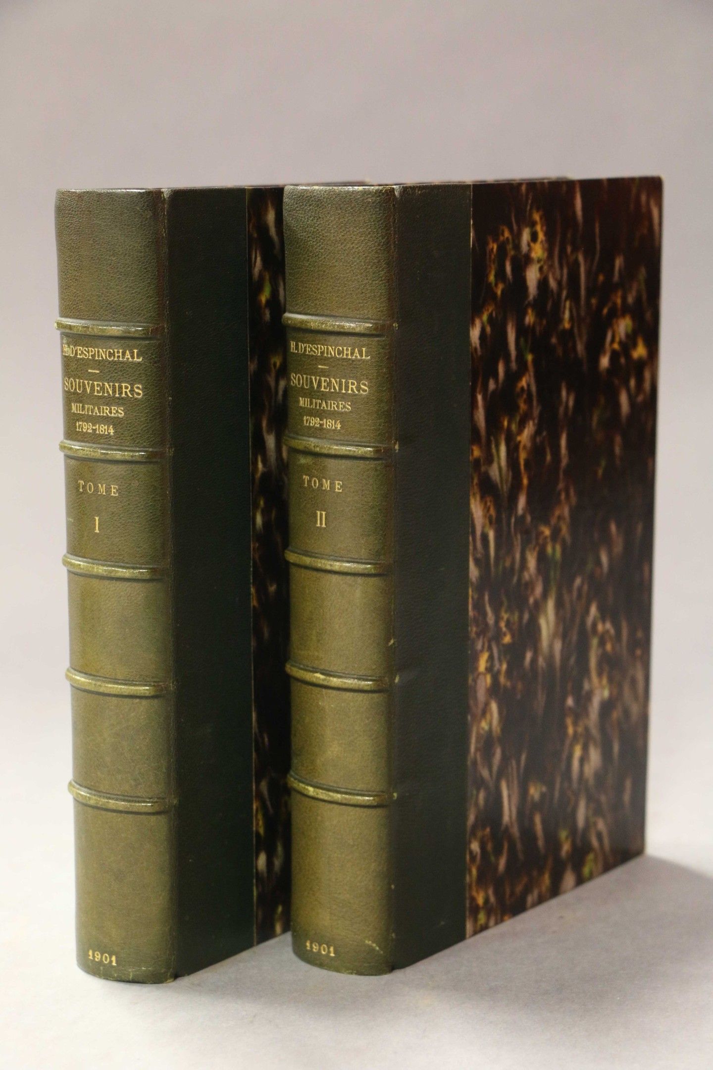 ESPINCHAL (Hippolyte d'). Souvenirs militaires.1792-1814. Paris, Ollendorff, 1901, 2 vol. in-8, half calf green chag., spine ribbed, insolated, covers preserved. FIRST EDITION.