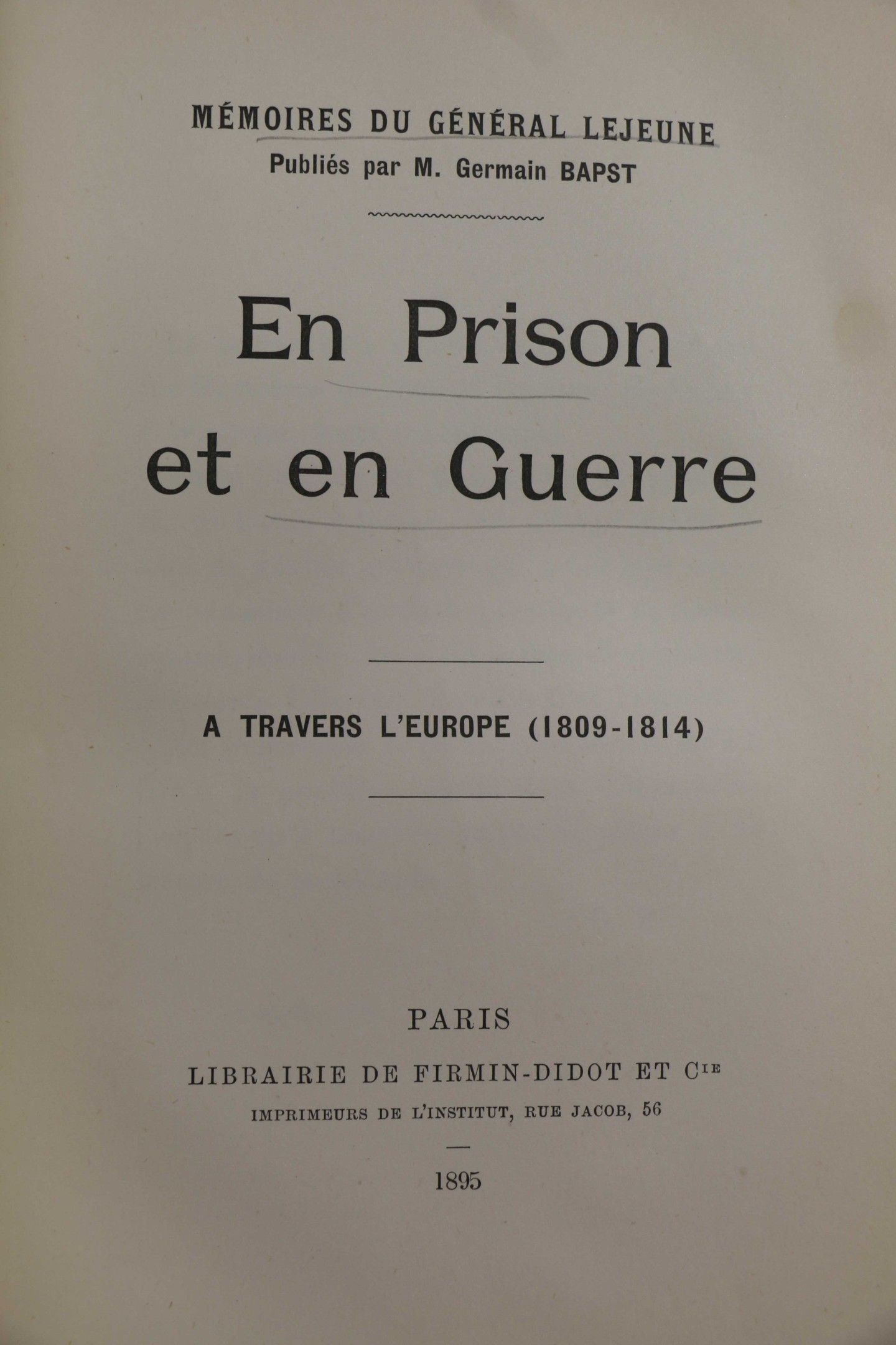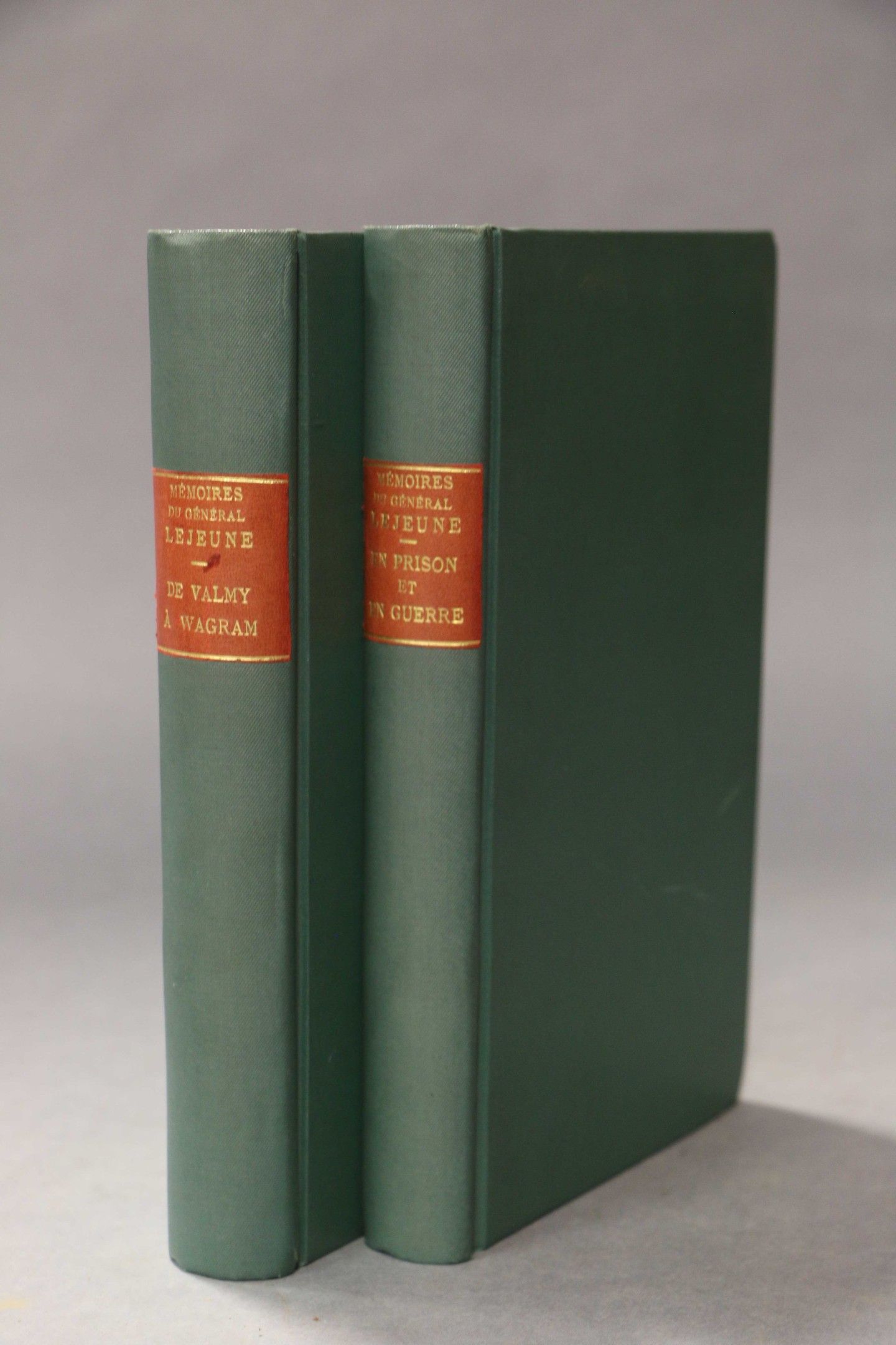 LEJEUNE (General). Memoirs. From Valmy to Wagram. Close to Napoleon. - En prison et en guerre Paris, Firmin-Didot, 1895, 2 vol. in-8, full green cloth, smooth spine, red title page. Second edition published after the very rare Toulouse edition in 1851. With a letter from the author on the false title of volume 1.