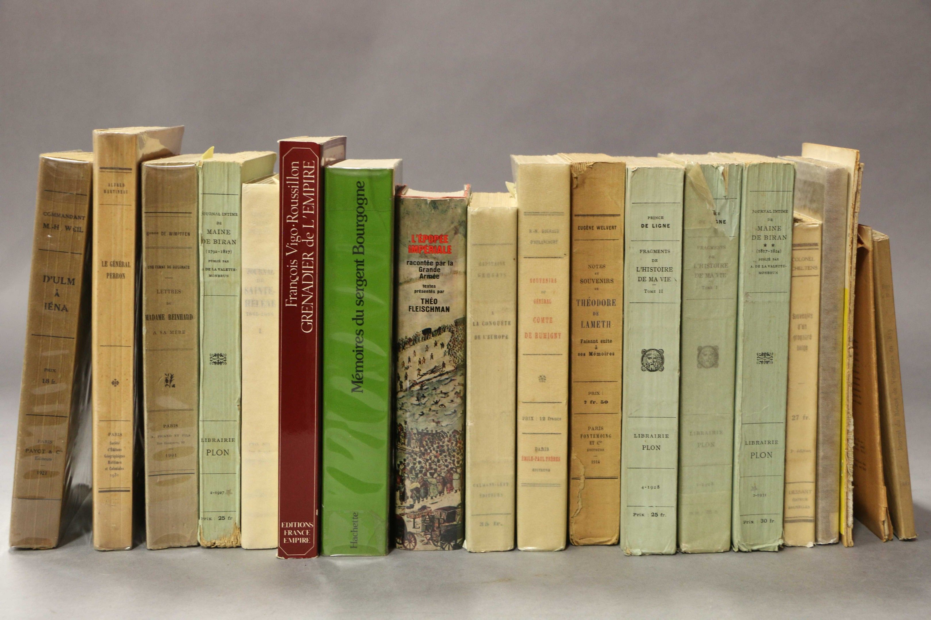 LOT of 17 memoirs on the empire, history, etc., most of them in paperback: Prince de Ligne. Fragments de ma vie. Paris, 1928. 2 vols. - The blockade of Vincennes in 1815. - Vigo-Roussillon. Campaign. 1981. - Diary of Maine de Biran. Paris, Plon, 1927, 2 vols. - Gourgaud. Journal de Sainte Hélène. Vol. 1. - Memoirs of Sergeant Bourgogne. 1978. - Fleischman. The Imperial Epic. - Scheltens. Memoirs of a Belgian Grognard. - Gervais. The conquest of Europe. Paris, Lévy, 1939. - Rumigny. Souvenirs. Paris, Emile-Paul, 1921. - Notes et souvenirs de Théodore de Lameth. Paris, 1914 - Letters from Madame Reinhard to her mother. Paris, 1901 - Weil. From Ulm to Jena. Paris, 1921. - Martineau. General Perron. Paris, 1931. - Martha-Beker. General Beker. Paris, Didier, 1876.