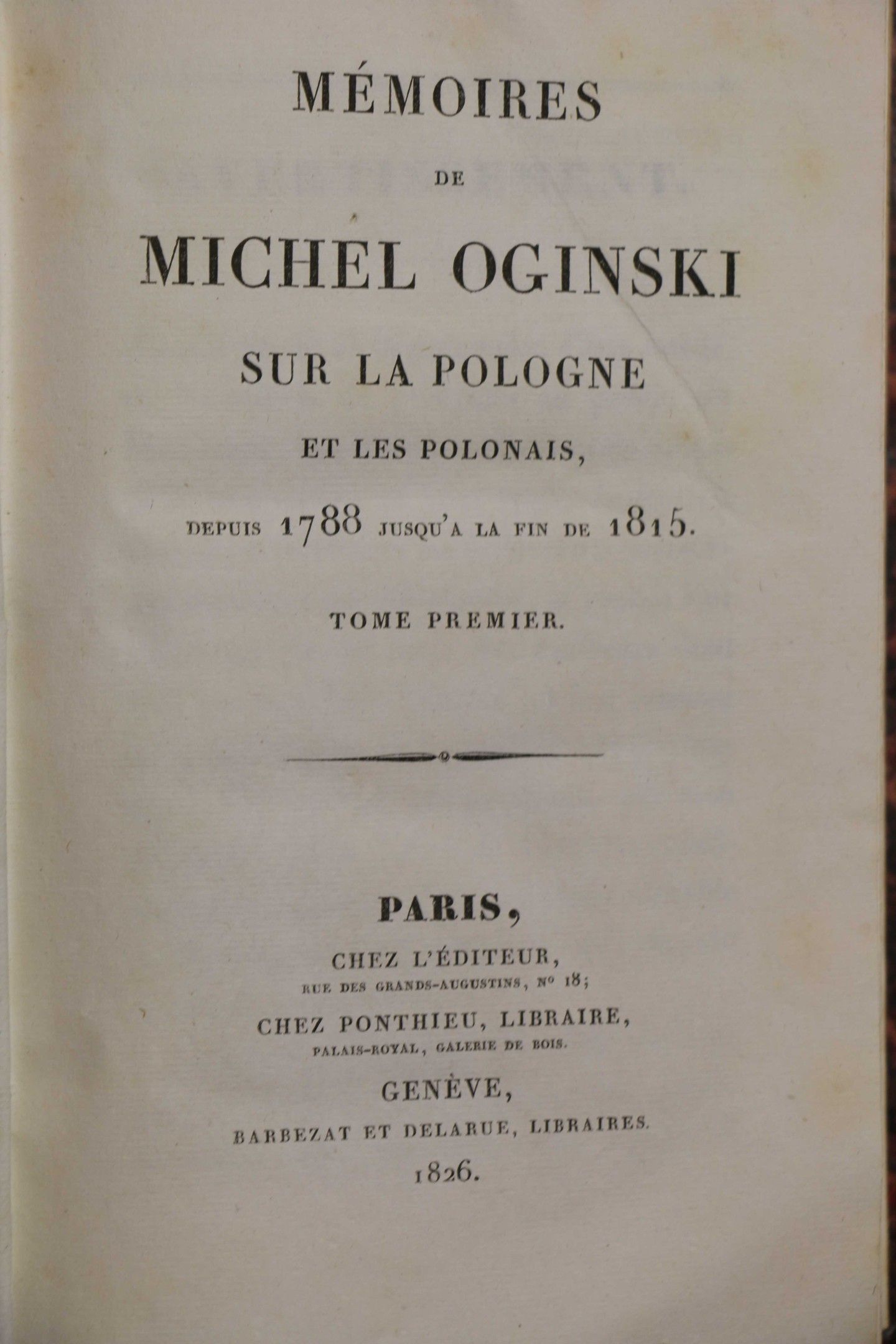 OGINSKI (Michel). Memoirs of Michel Oginski on Poland and the Poles from 1788 to the end of 1815. Paris, Ponthieu, 1826, 2 vols (out of 4), in-8, half calf, smooth spine, decorated.