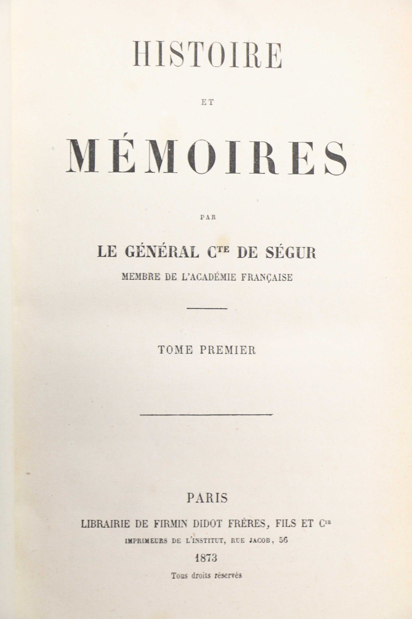 SEGUR (General Cte de). Histoire et mémoires.