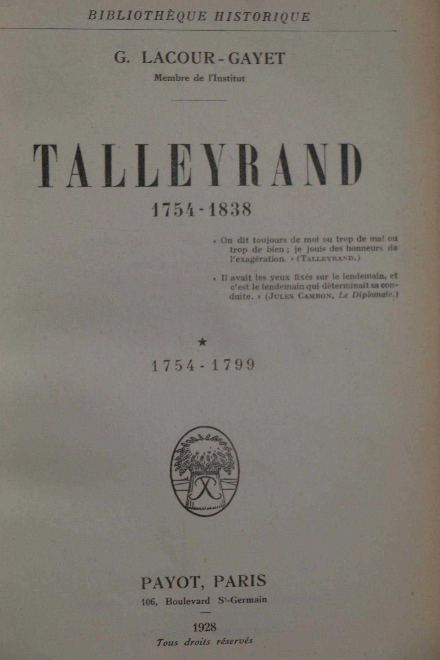 TALLEYRAND - LACOUR-GAYET. 1754-1838.