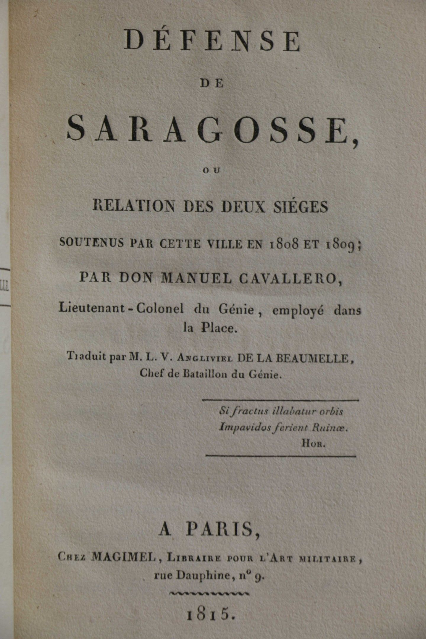 CAVALLERO (Don Manuel). Défense de Saragosse ou relation des…