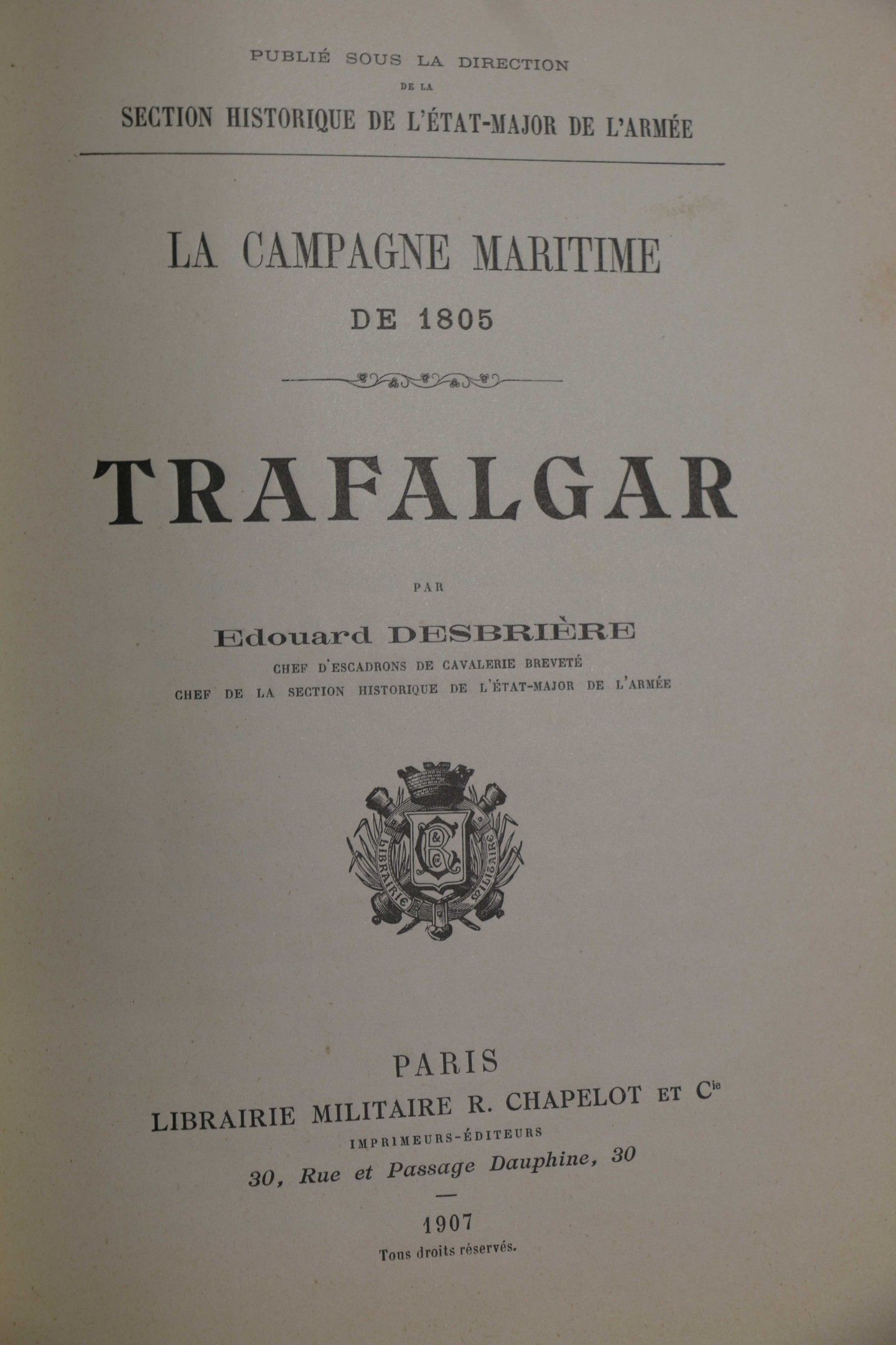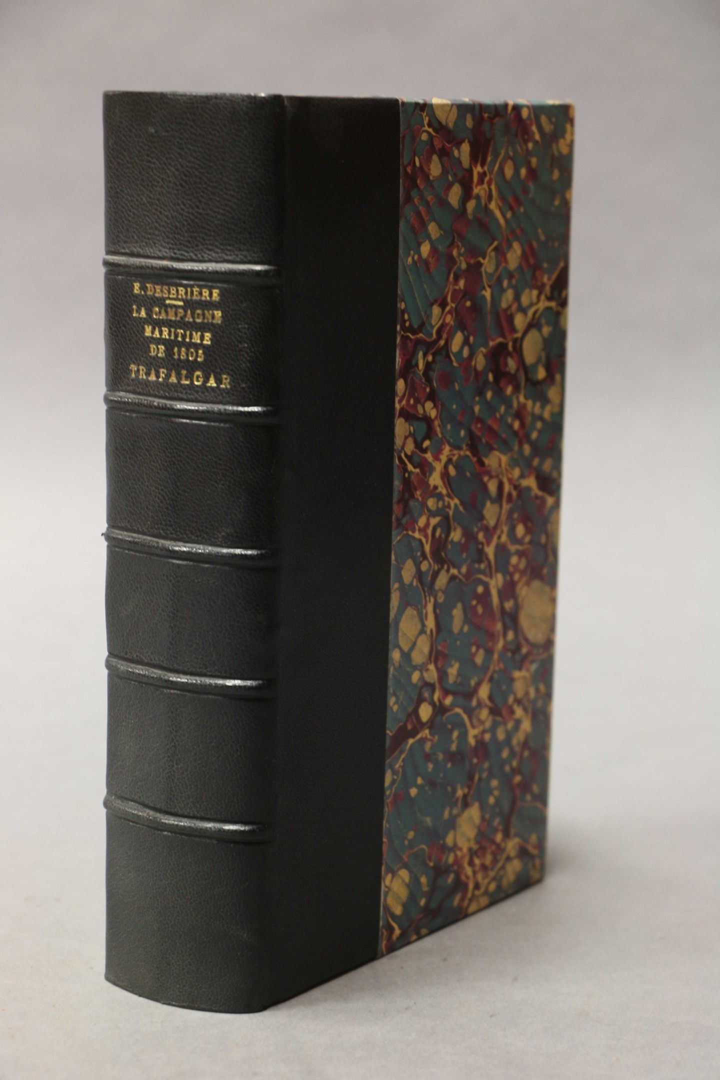 DESBRIERE (Edouard). The maritime campaign of 1805. Trafalgar. Paris, Chapelot, 1907, in-8, navy blue half calf chag. spine, covers preserved (mod. rel.). With 17 hors-texte sketches and 5 folded maps in-fine.