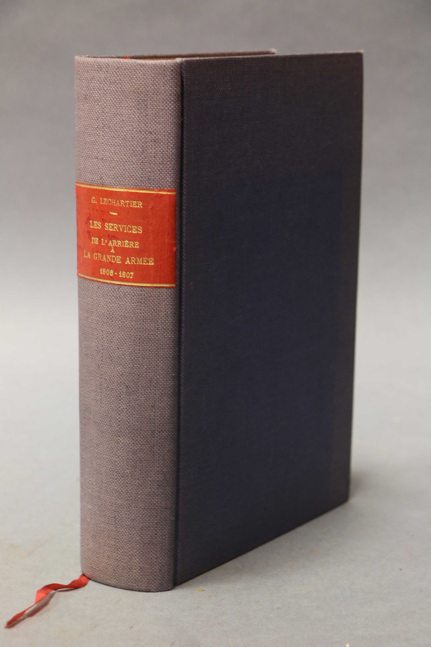 LECHARTIER. Les services de l'arrière à la grande armée en 1806-1807. Paris, Chapelot,1910, in-8, full blue cloth, smooth spine, red title page (modern binding). With 5 hors-texte maps.