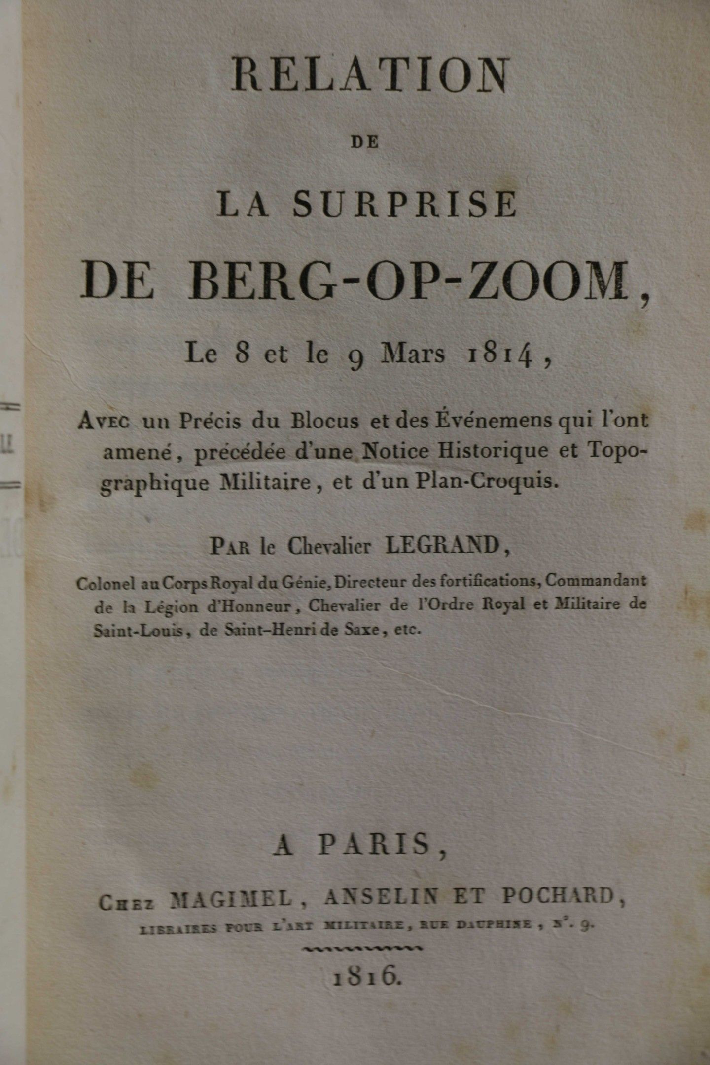 LEGRAND. Relation de la surprise de Berg-Op-Zoom le 8 et le 9 mars 1814. Paris, Magimel, 1816, in-8, red bas. half-rel., ribbed spine (mod. rel.). With a large folded map. A few brown spots.