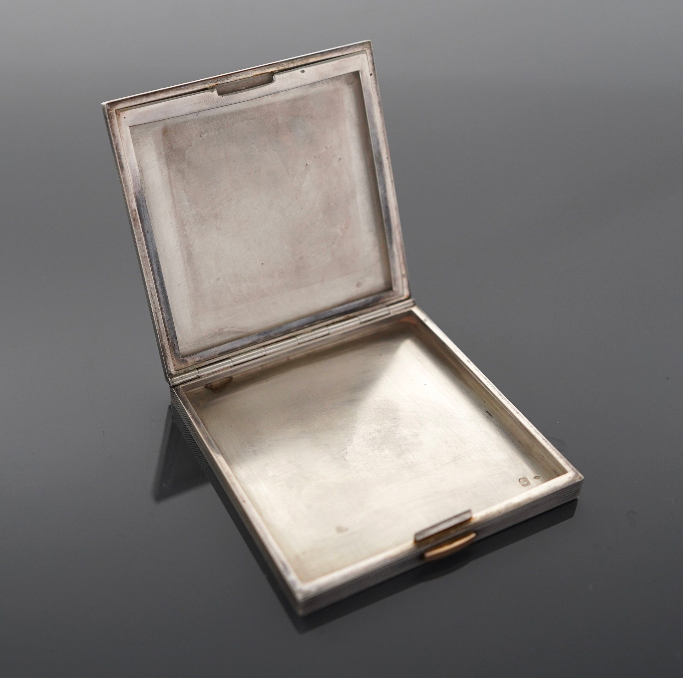 Silver and vermeil poudrier (950‰) entirely guilloché and gadrooned, opening with "lost" hinges.