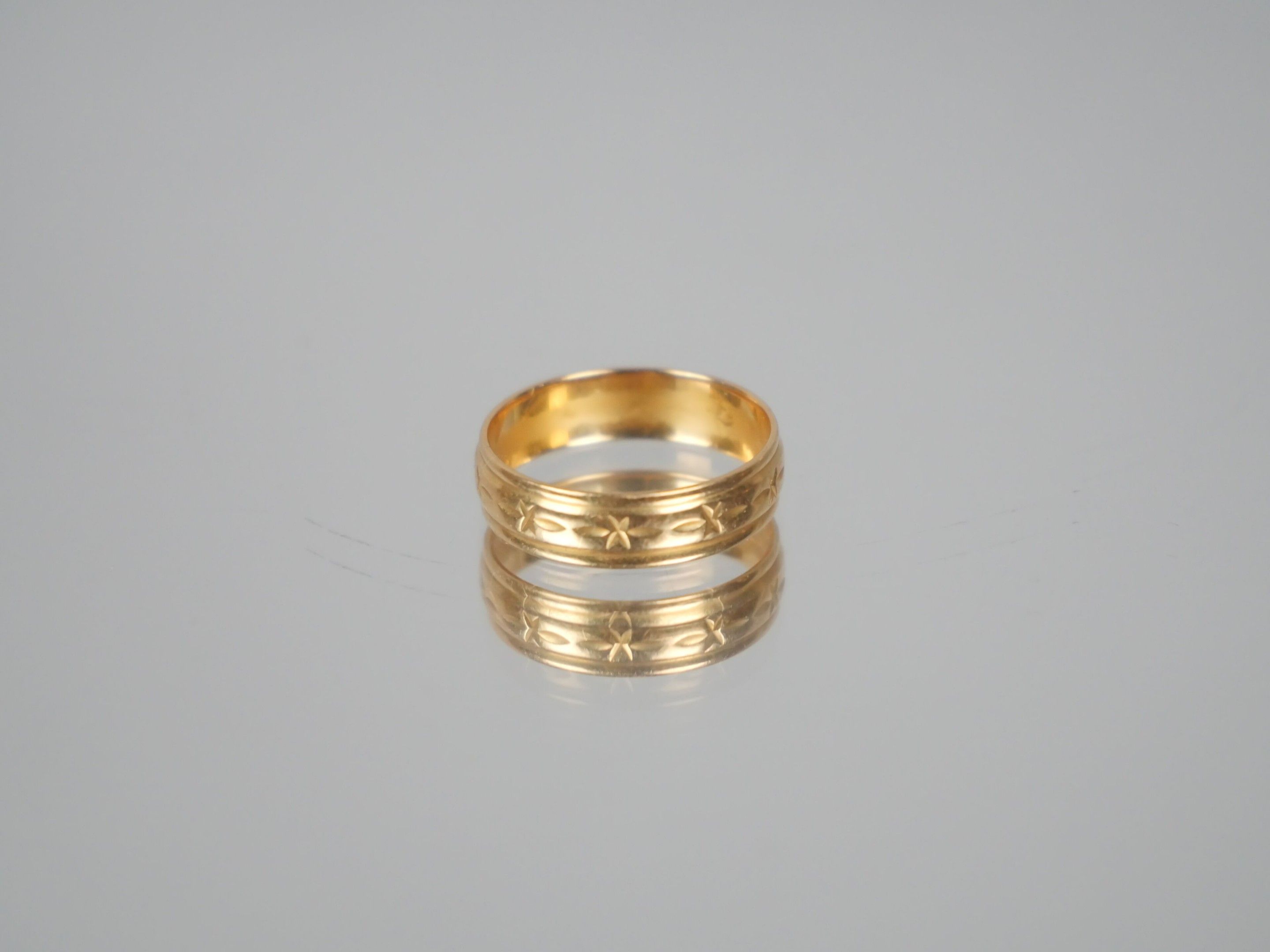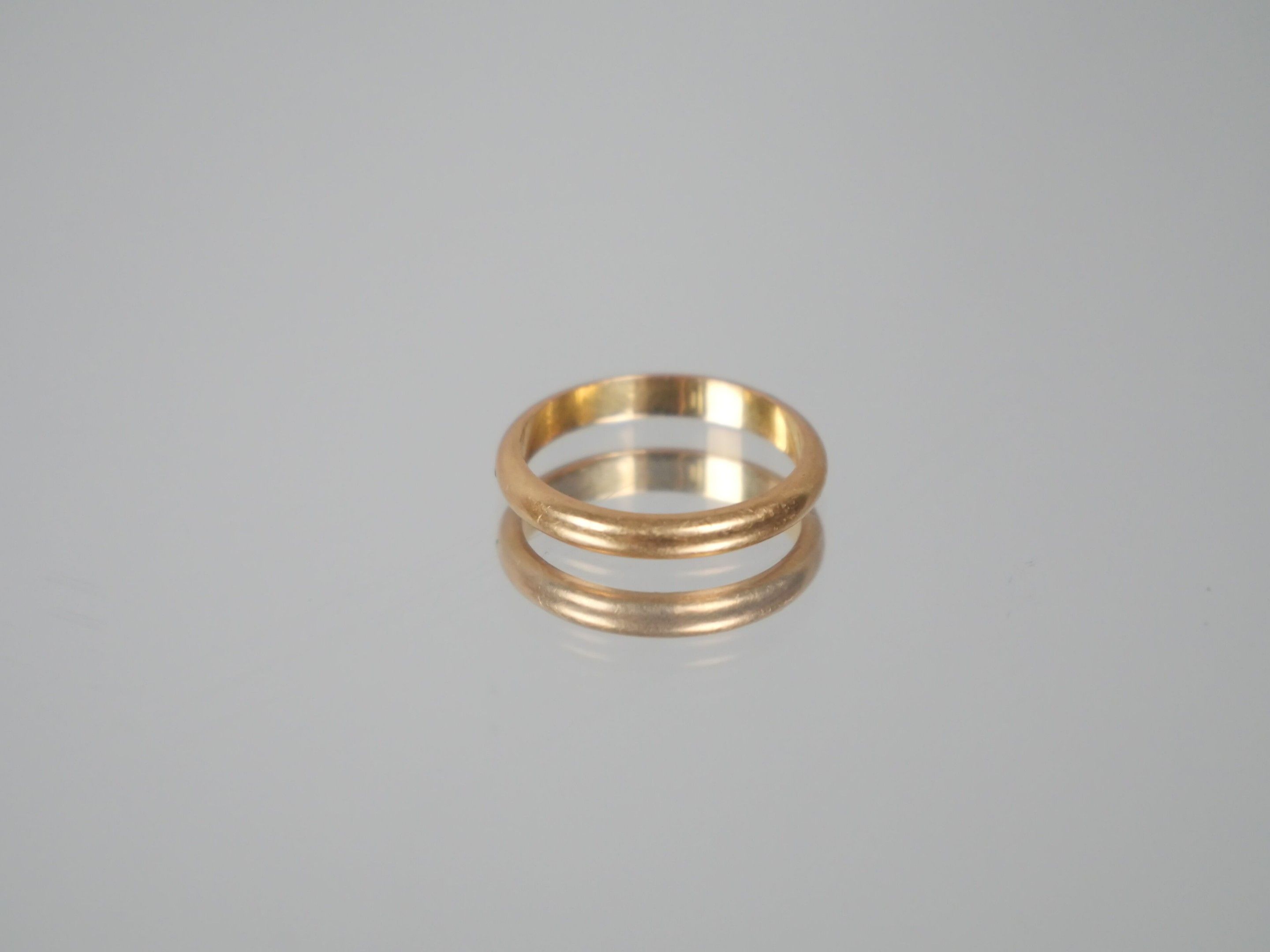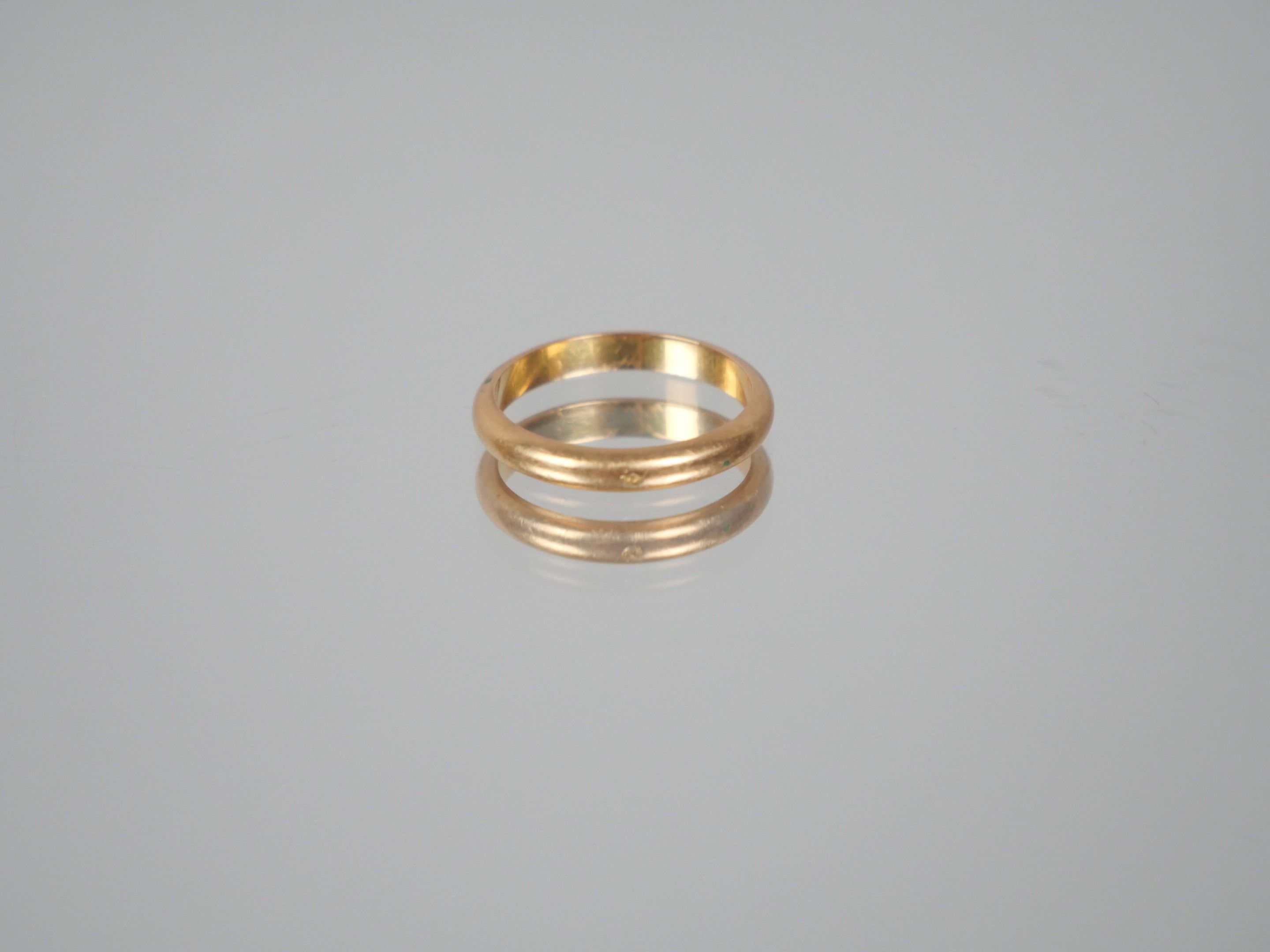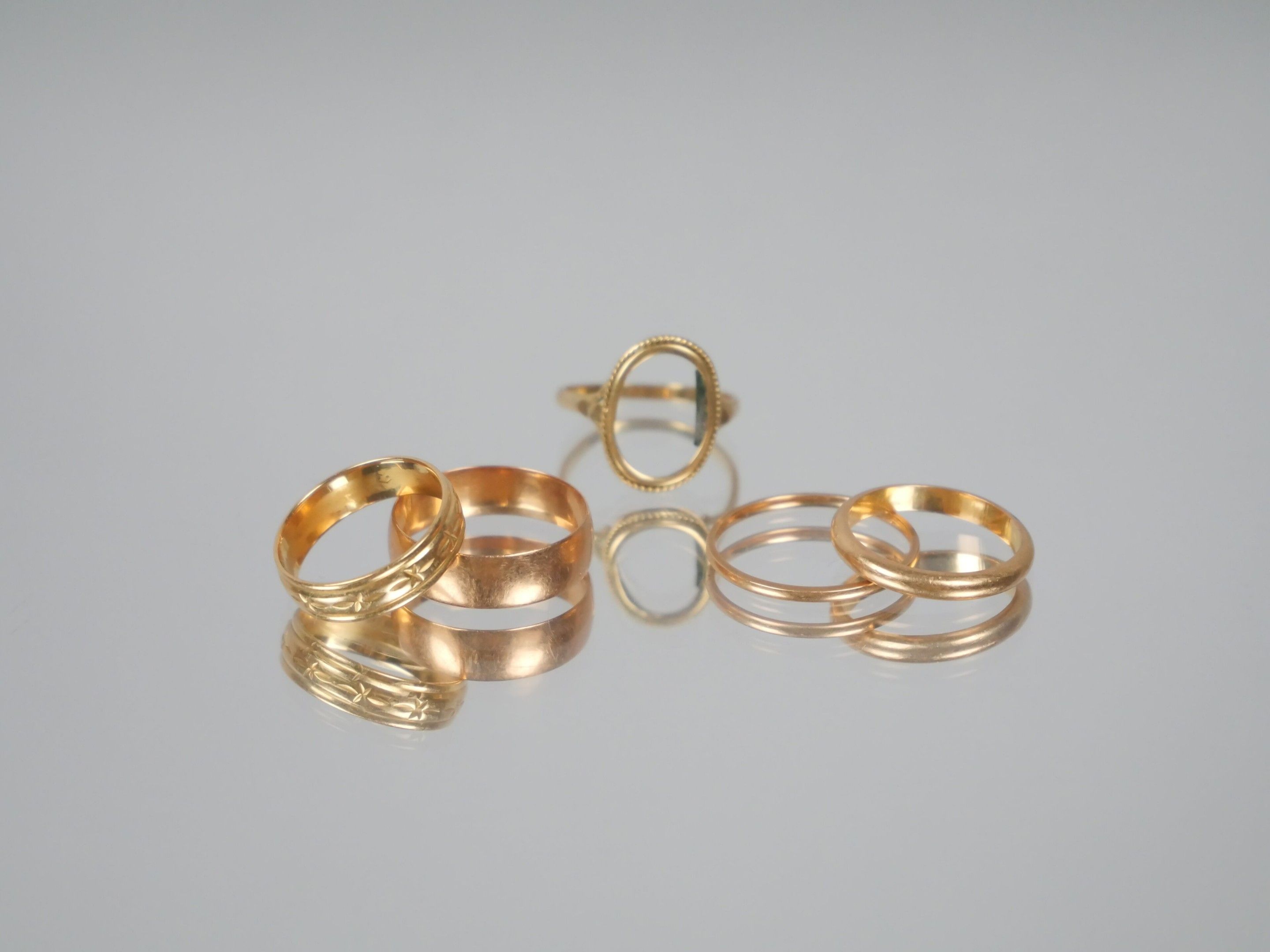 Four wedding rings and one ring setting in 750 thousandths yellow gold.