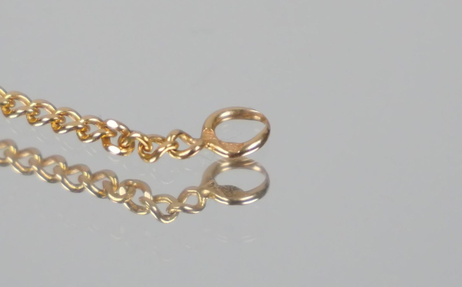 750 thousandths ER yellow gold gourmette chain. Lobster clasp.