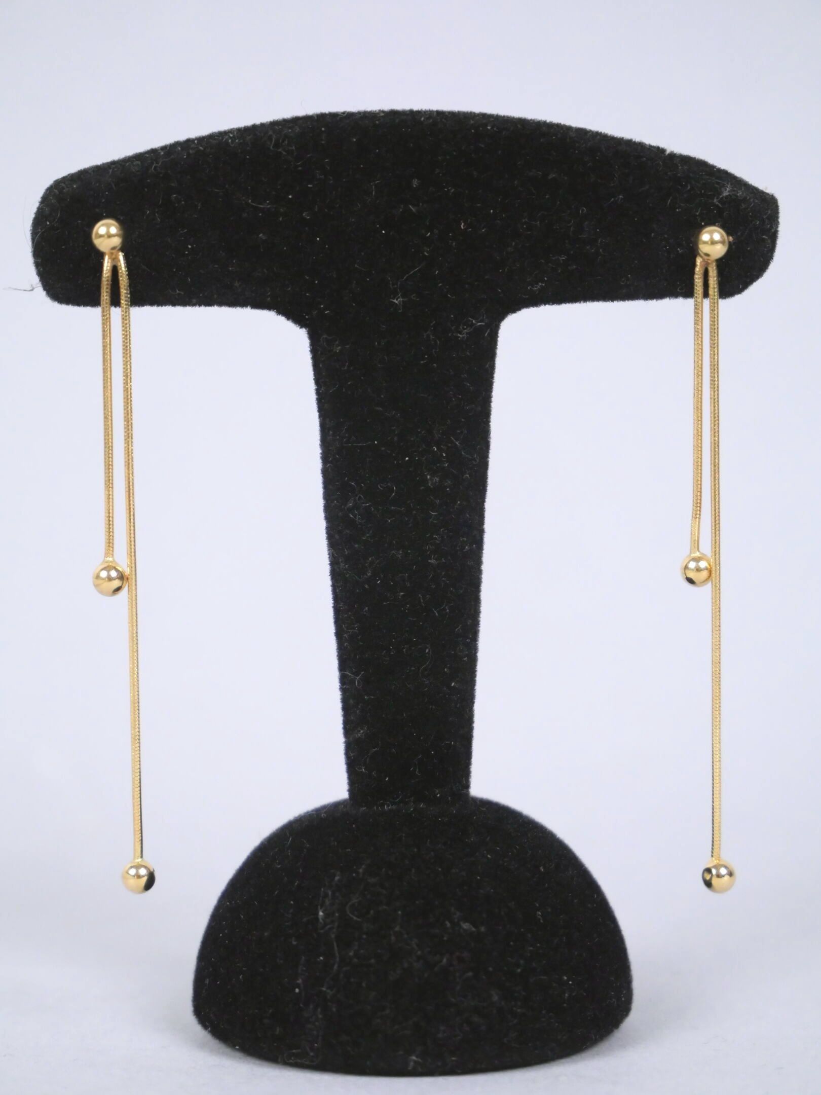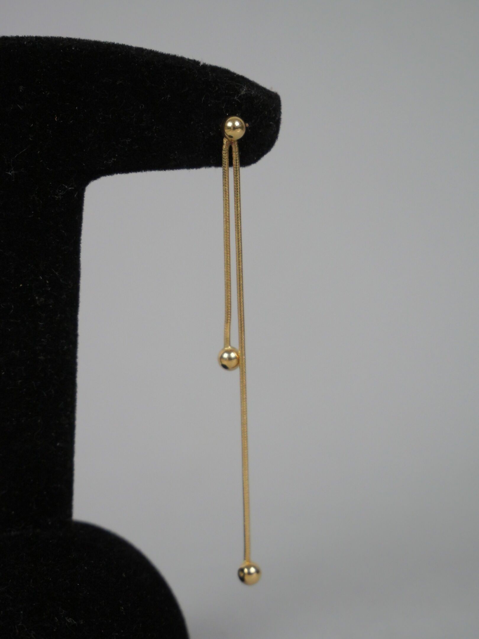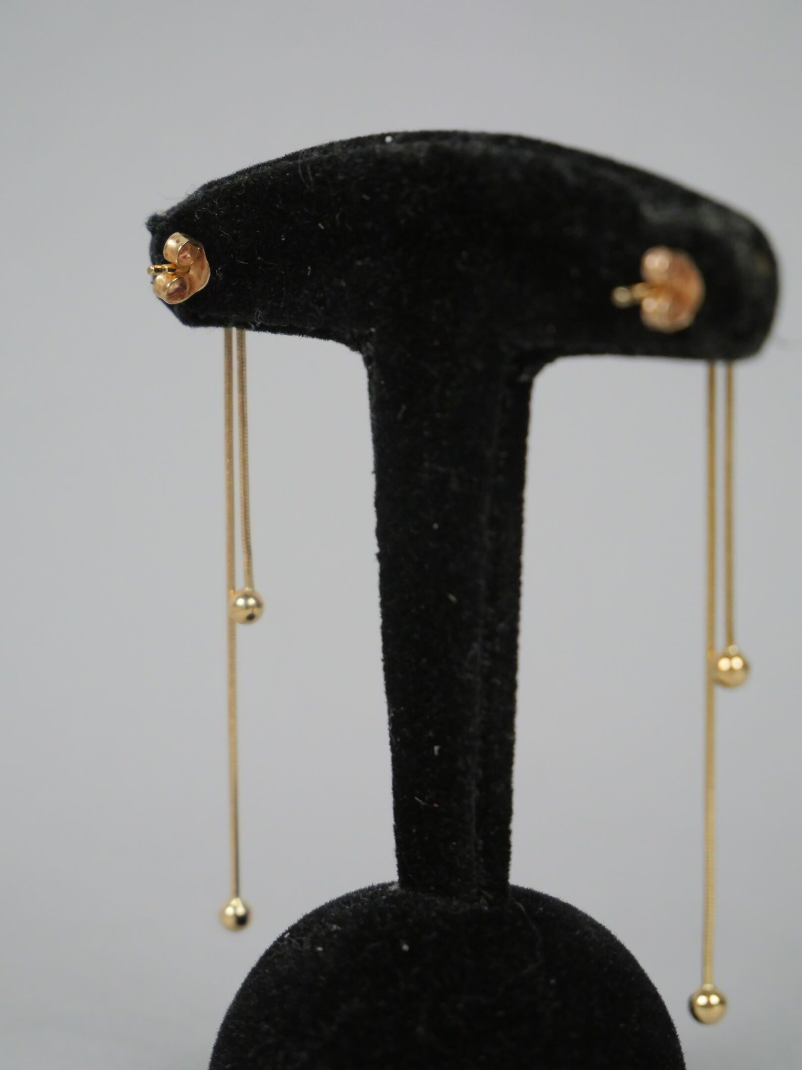 Pair of earrings in 750 thousandths yellow gold, the wires ending in pastilles.