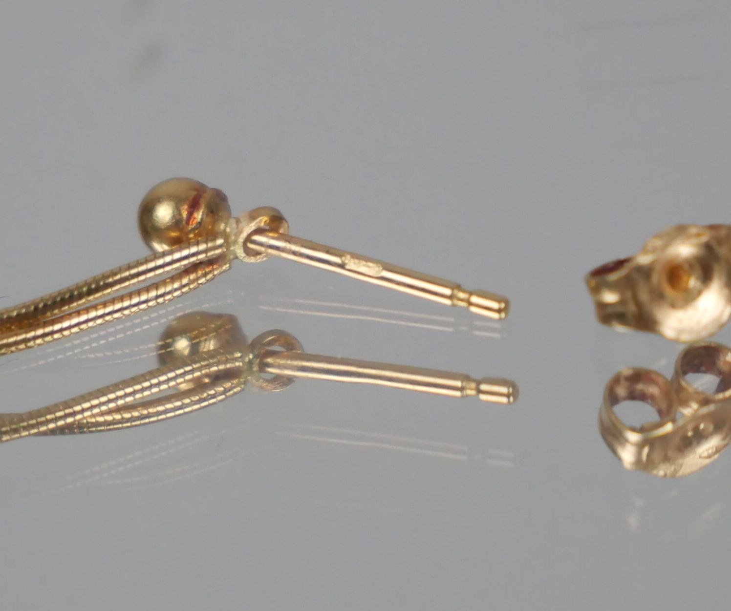 Pair of earrings in 750 thousandths yellow gold, the wires e…