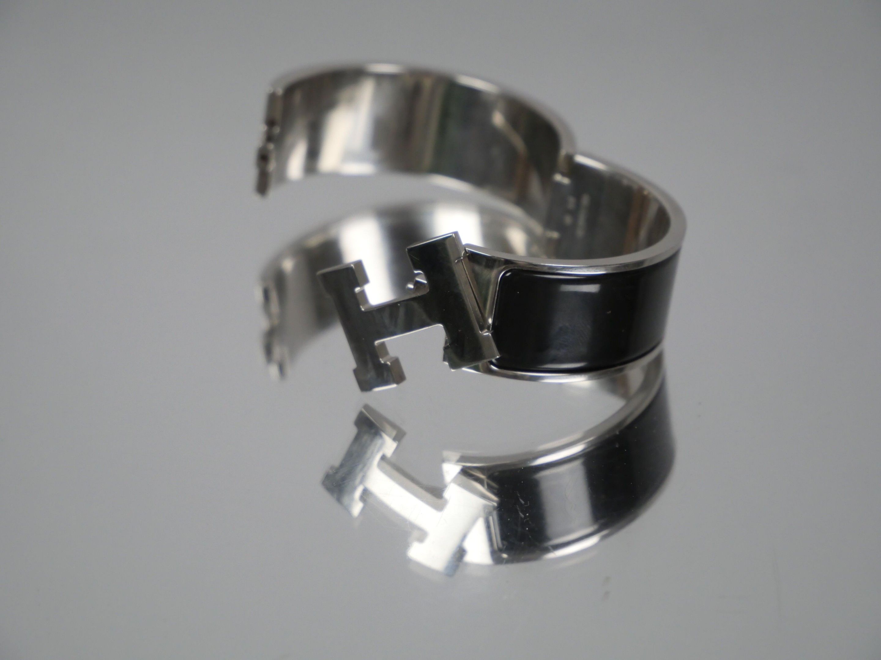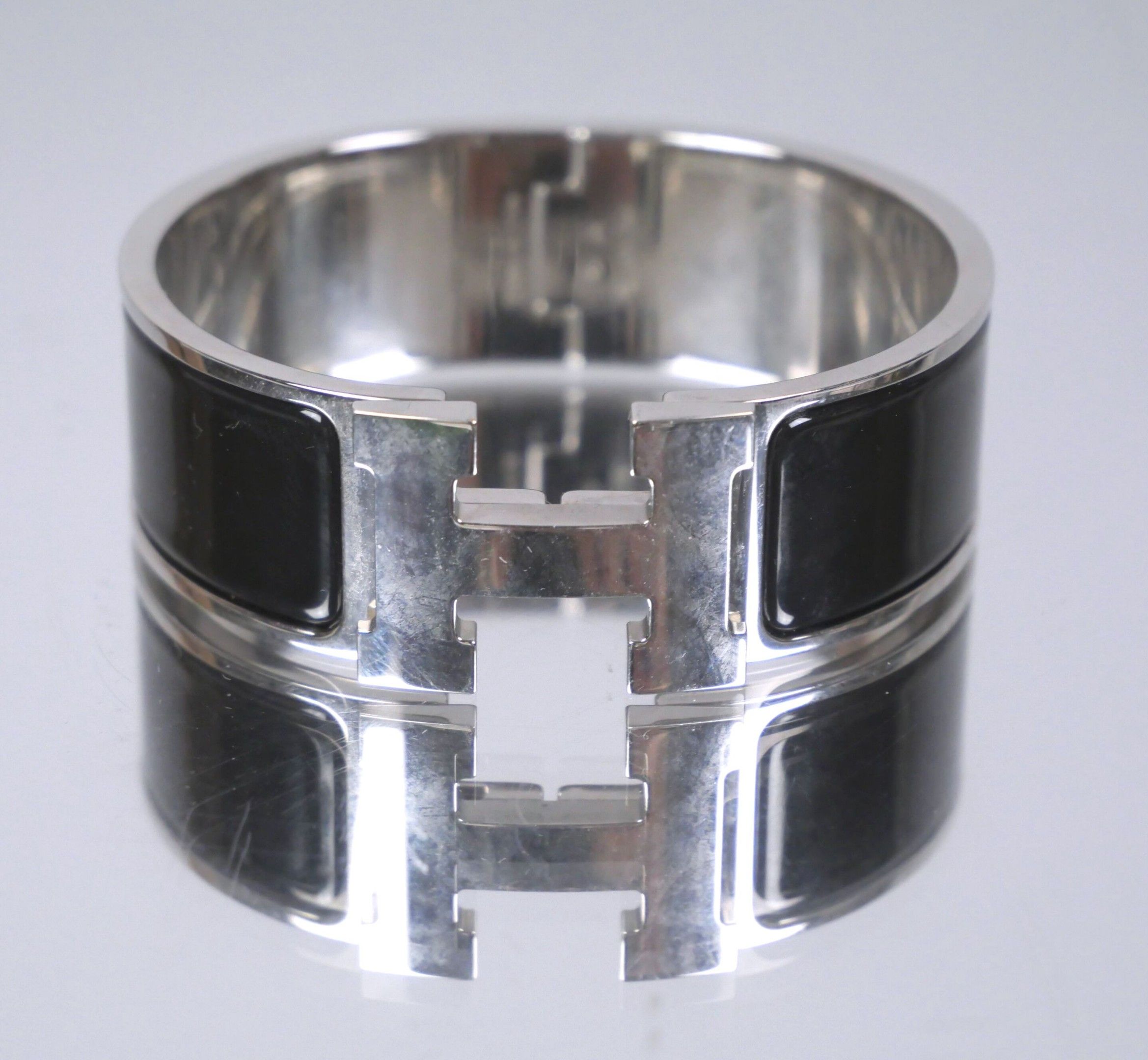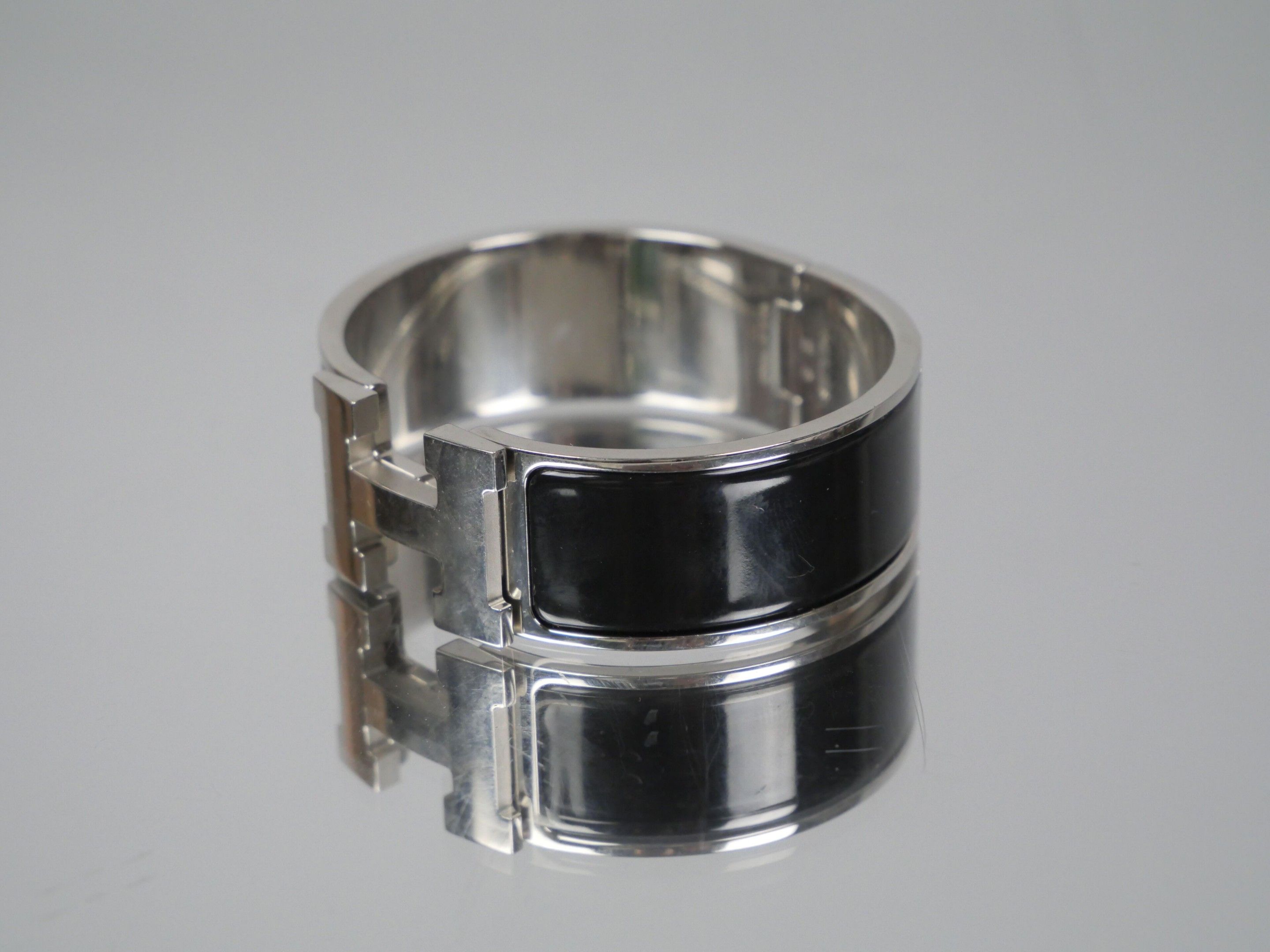 Premium HERMES, Paris Clic Clac H" bangle bracelet in palladium-plat…