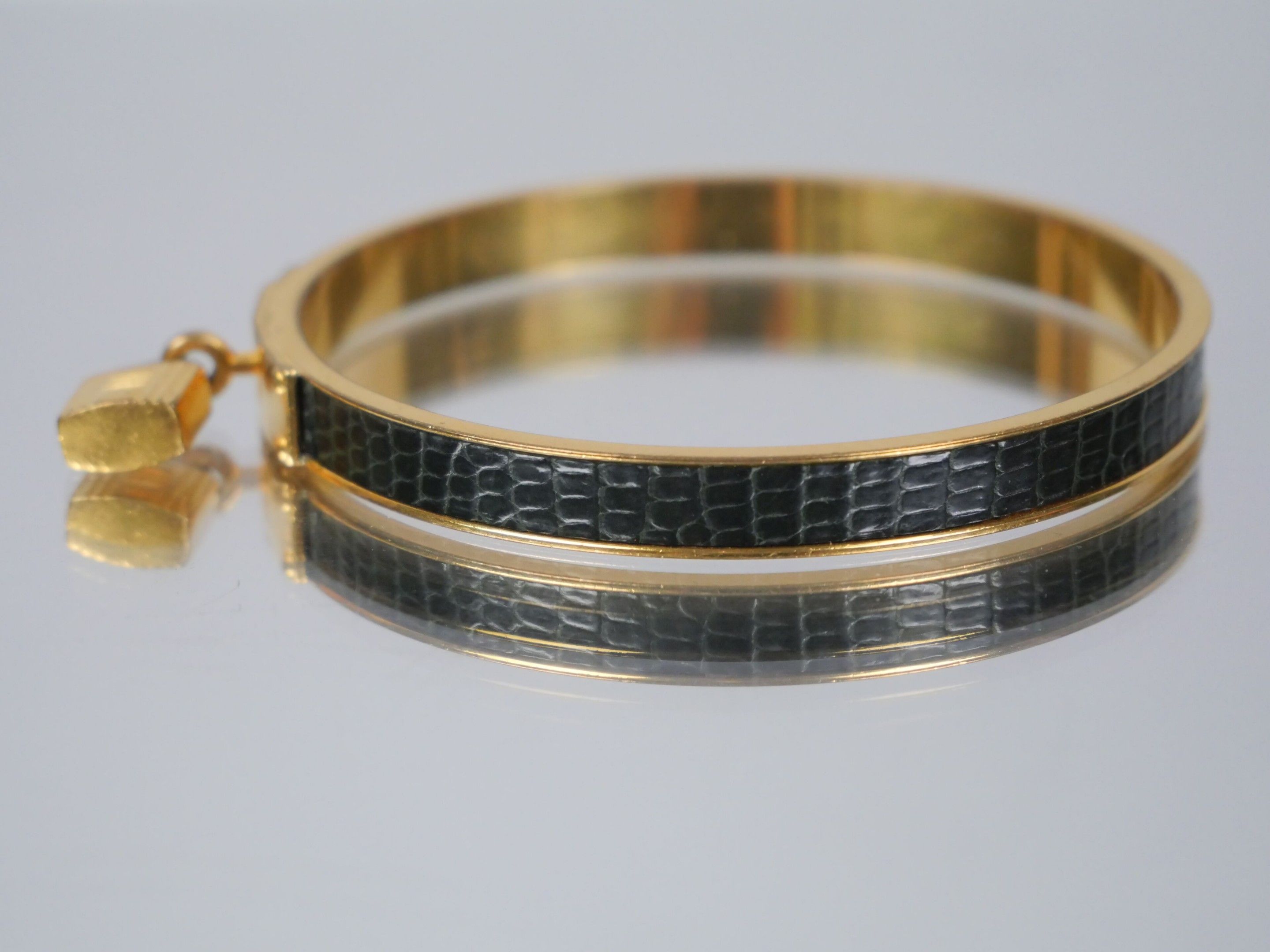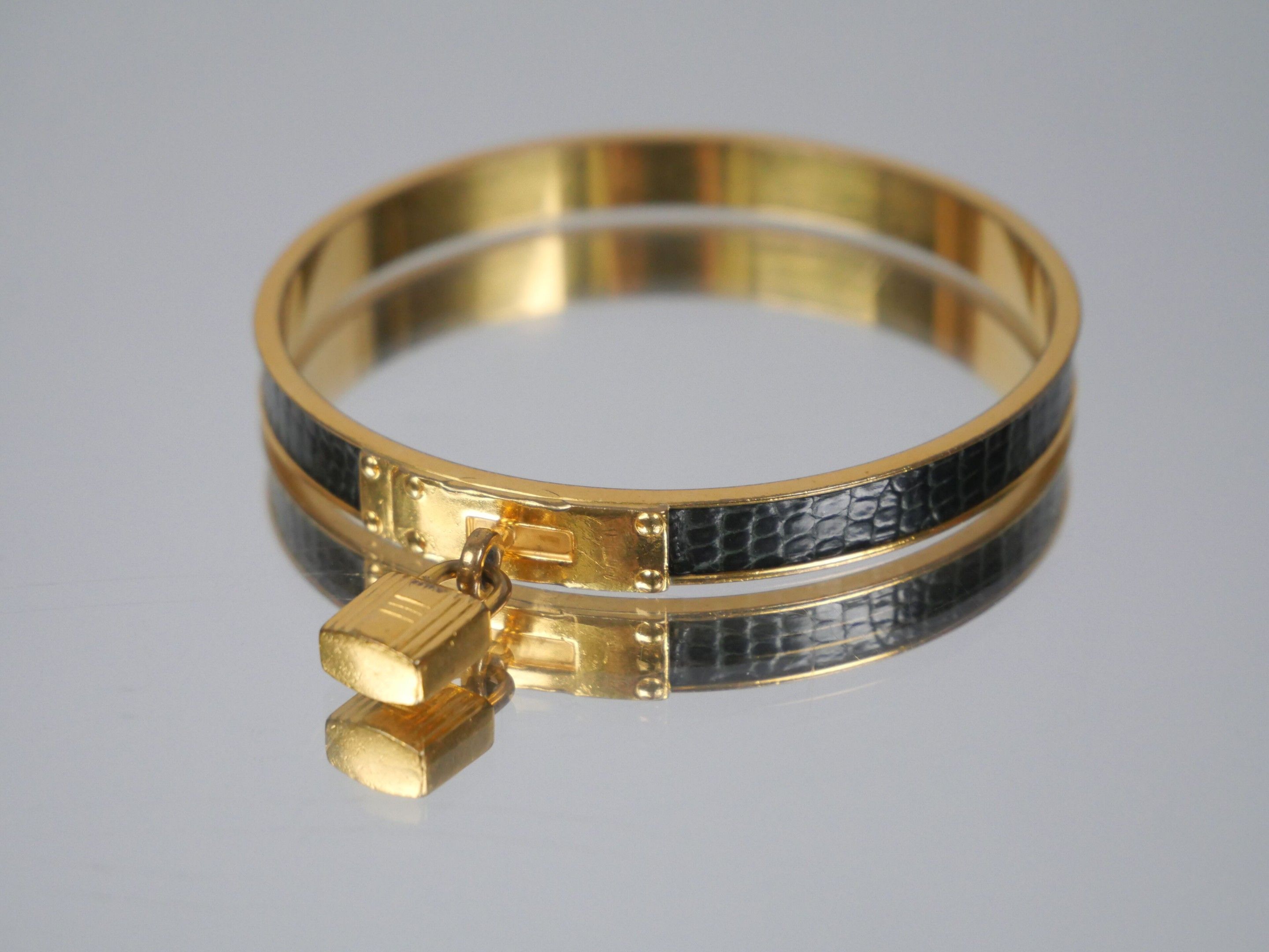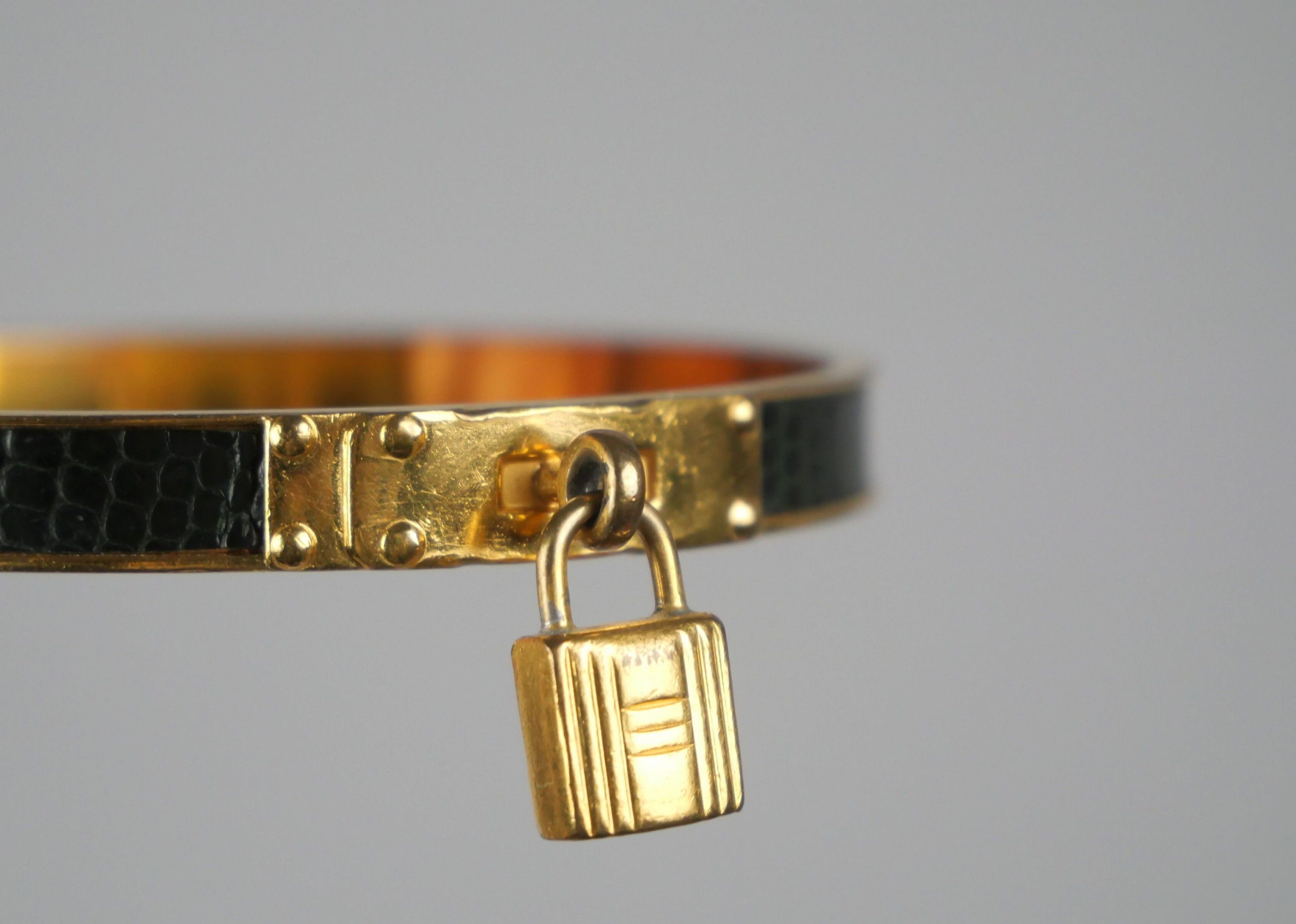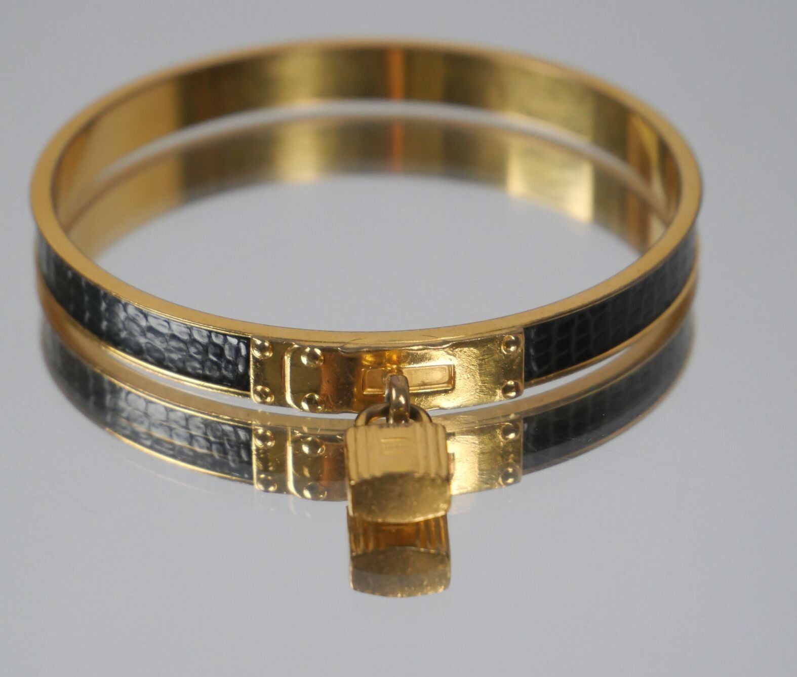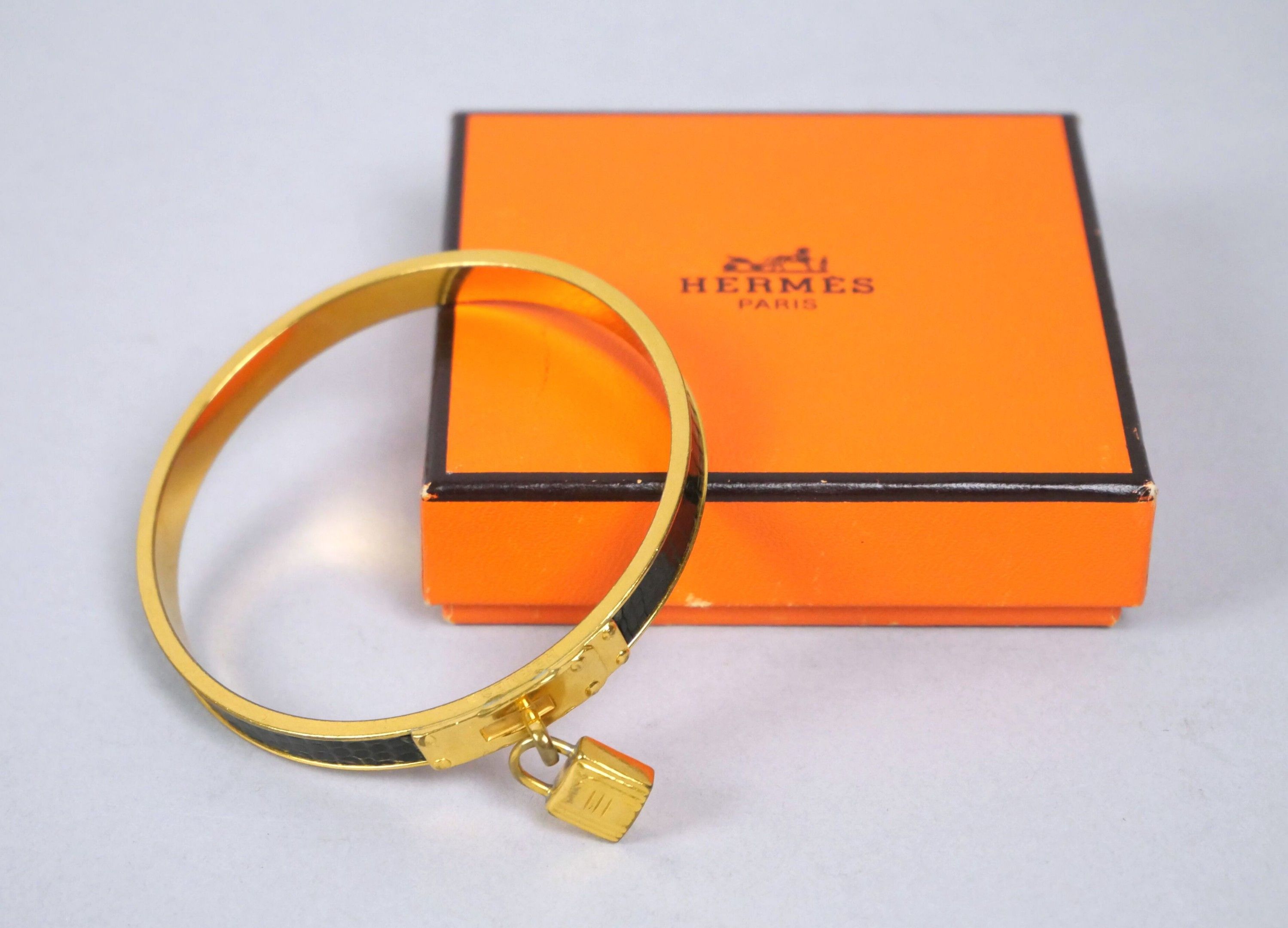 Premium HERMES Paris Kelly" bangle bracelet in gold-plated metal, sh…