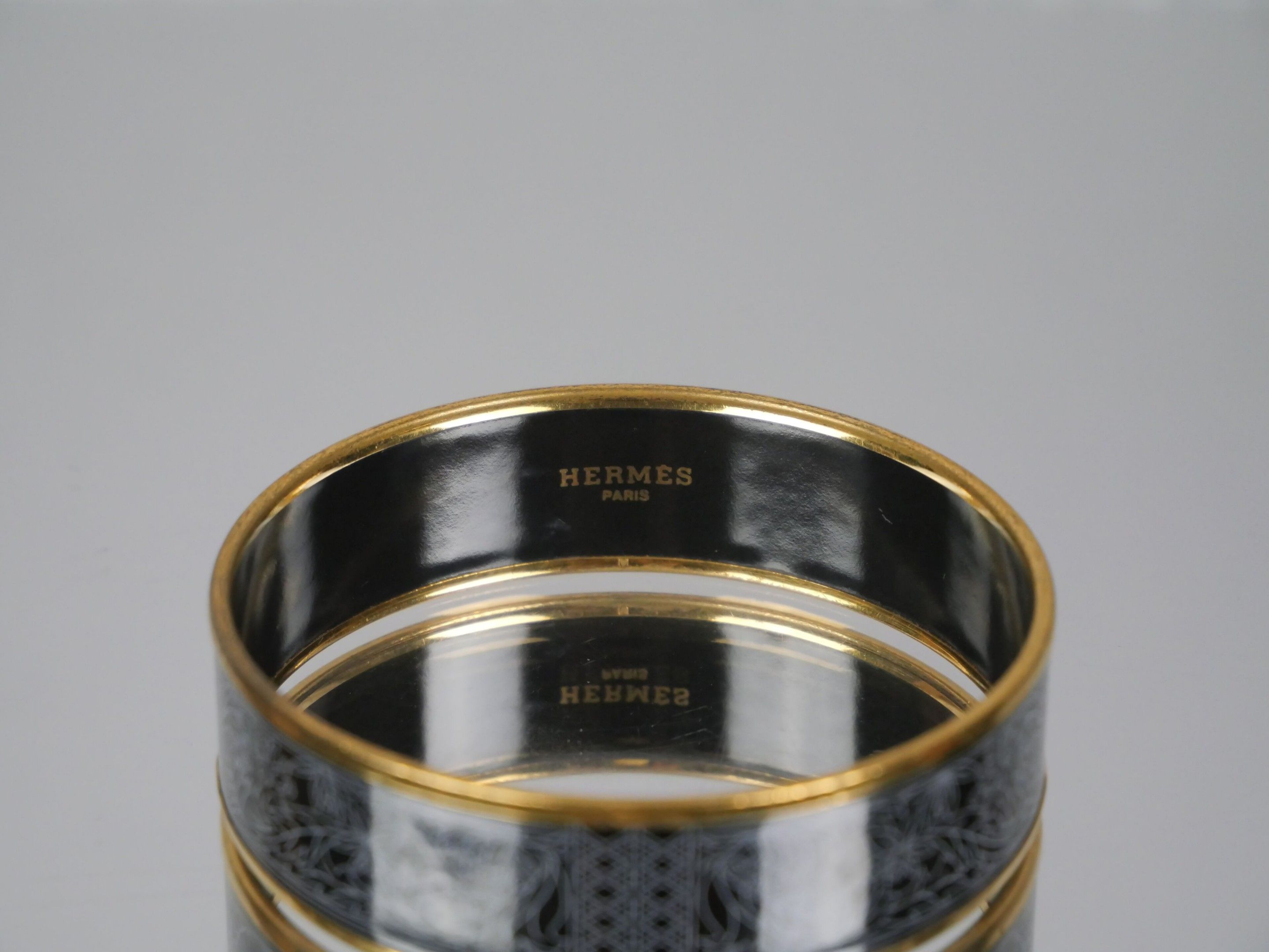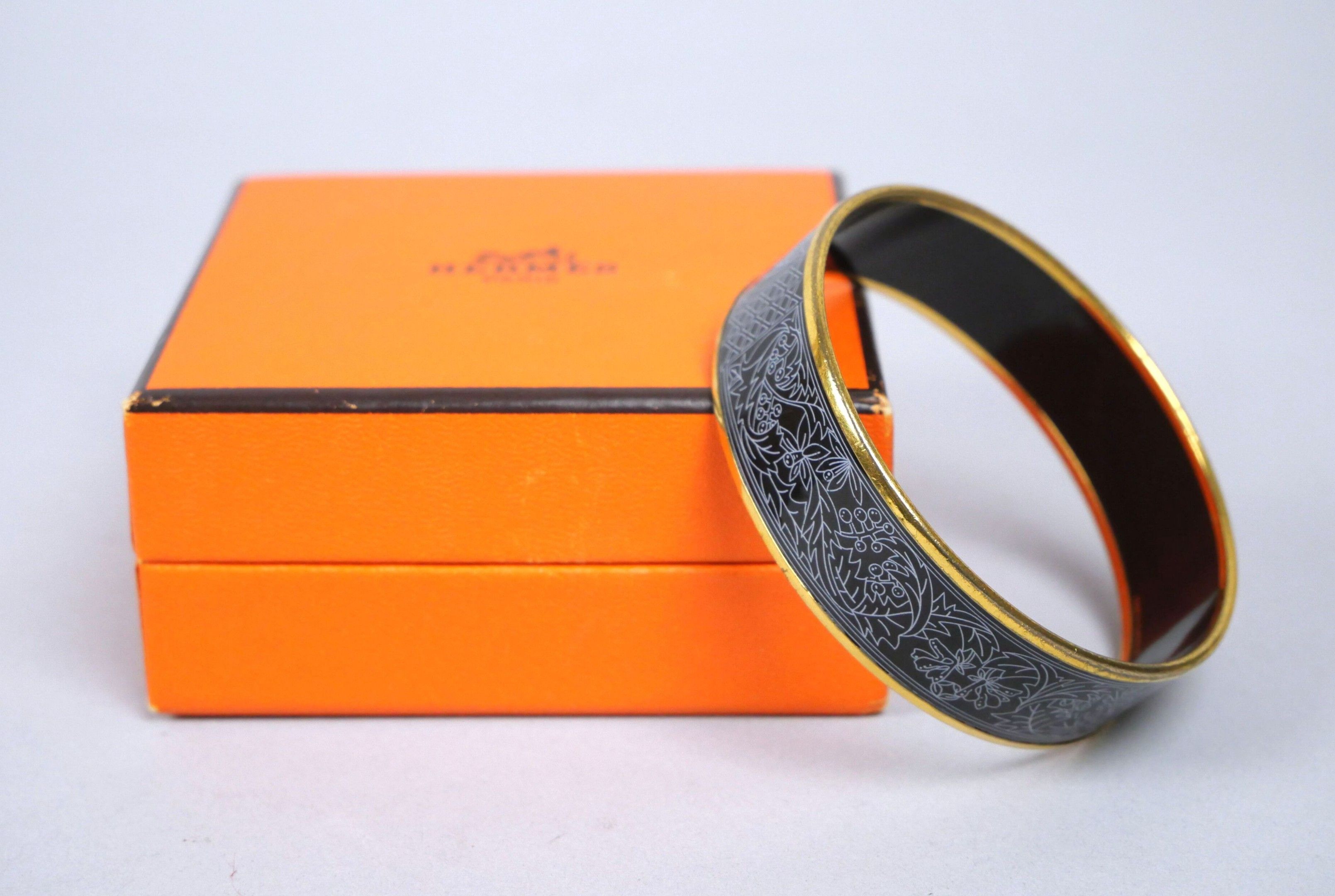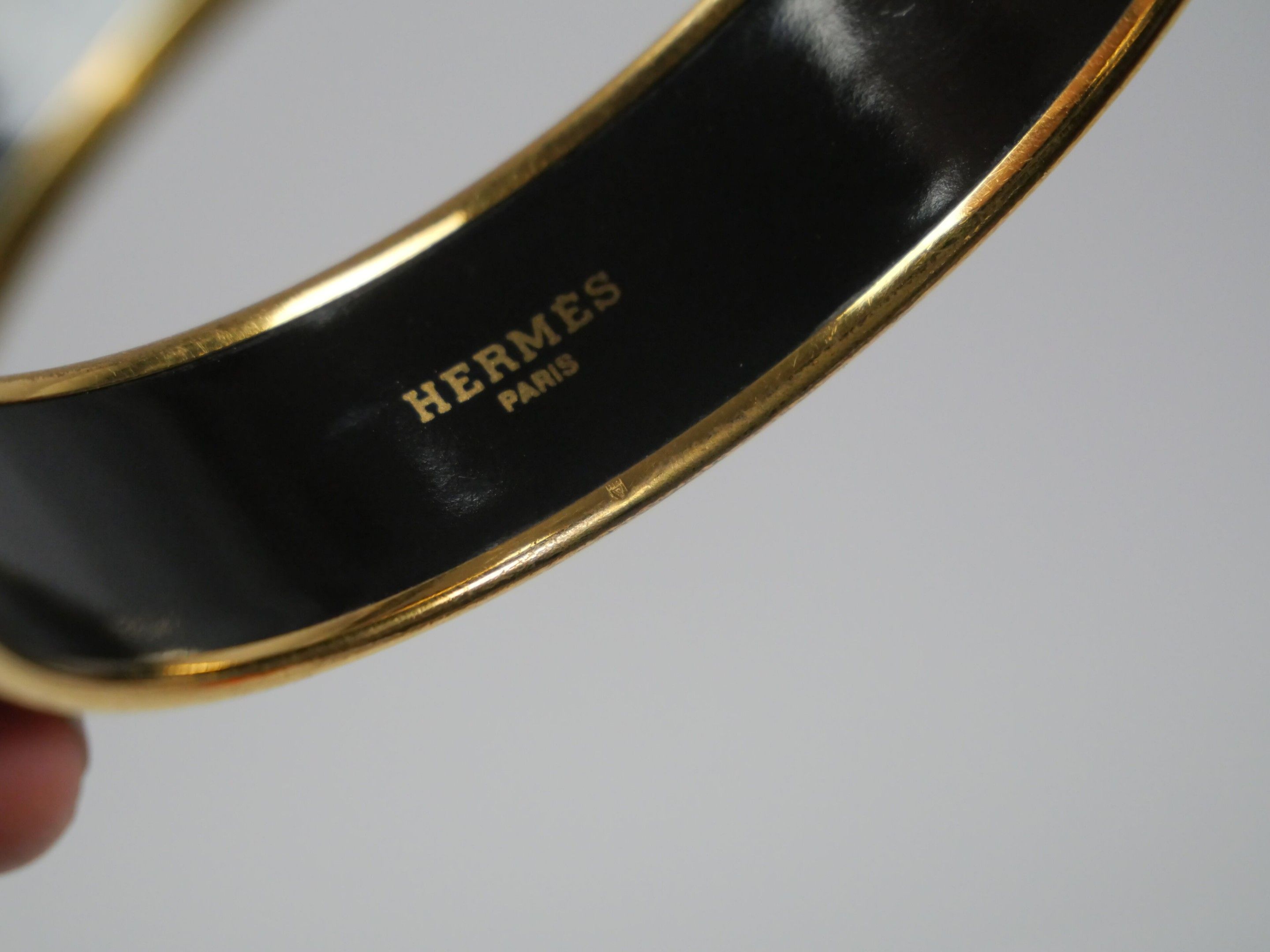 HERMES Paris Rigid gold-plated bangle bracelet with an ename…