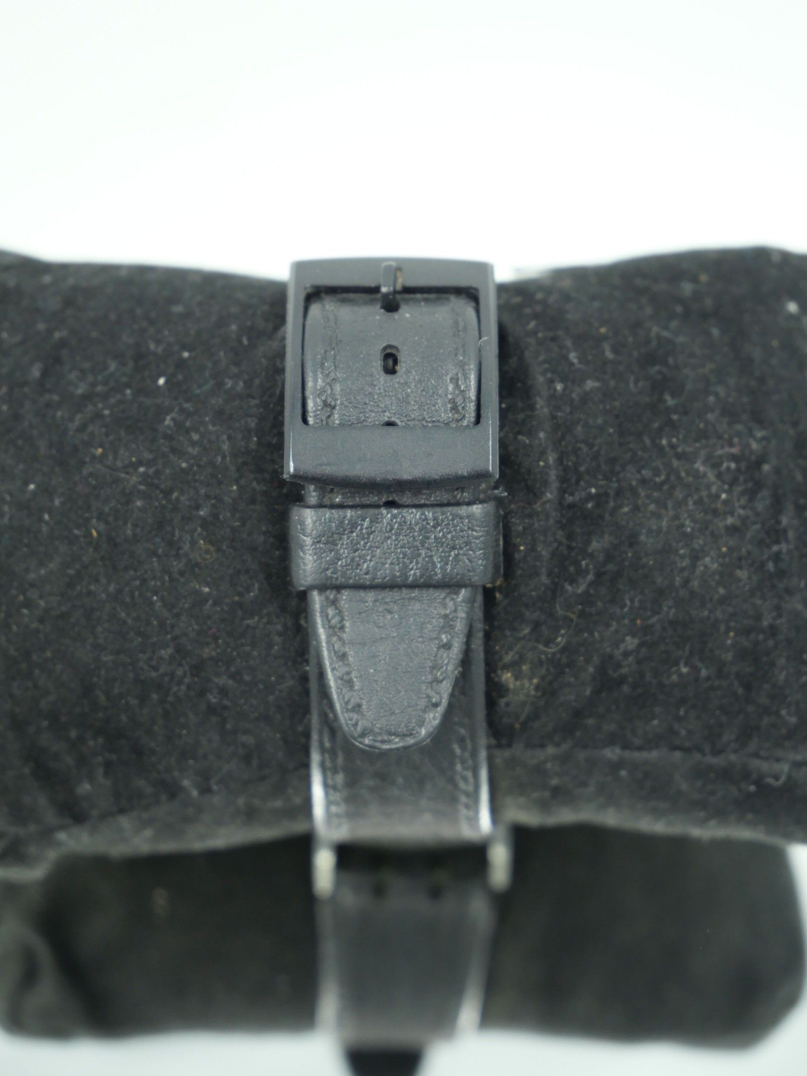 Wristwatch, round steel case, silver dial with applied hour markers.