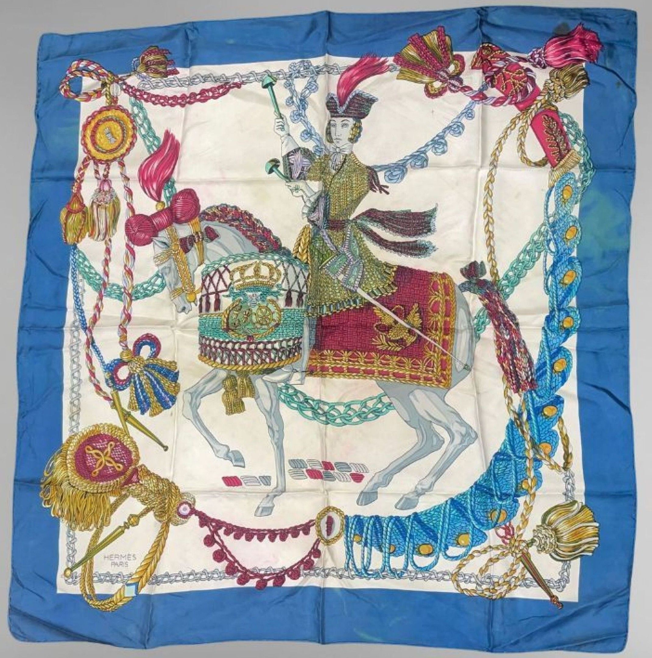 HERMES, Paris Silk twill square, "Le timbalier" model with p…