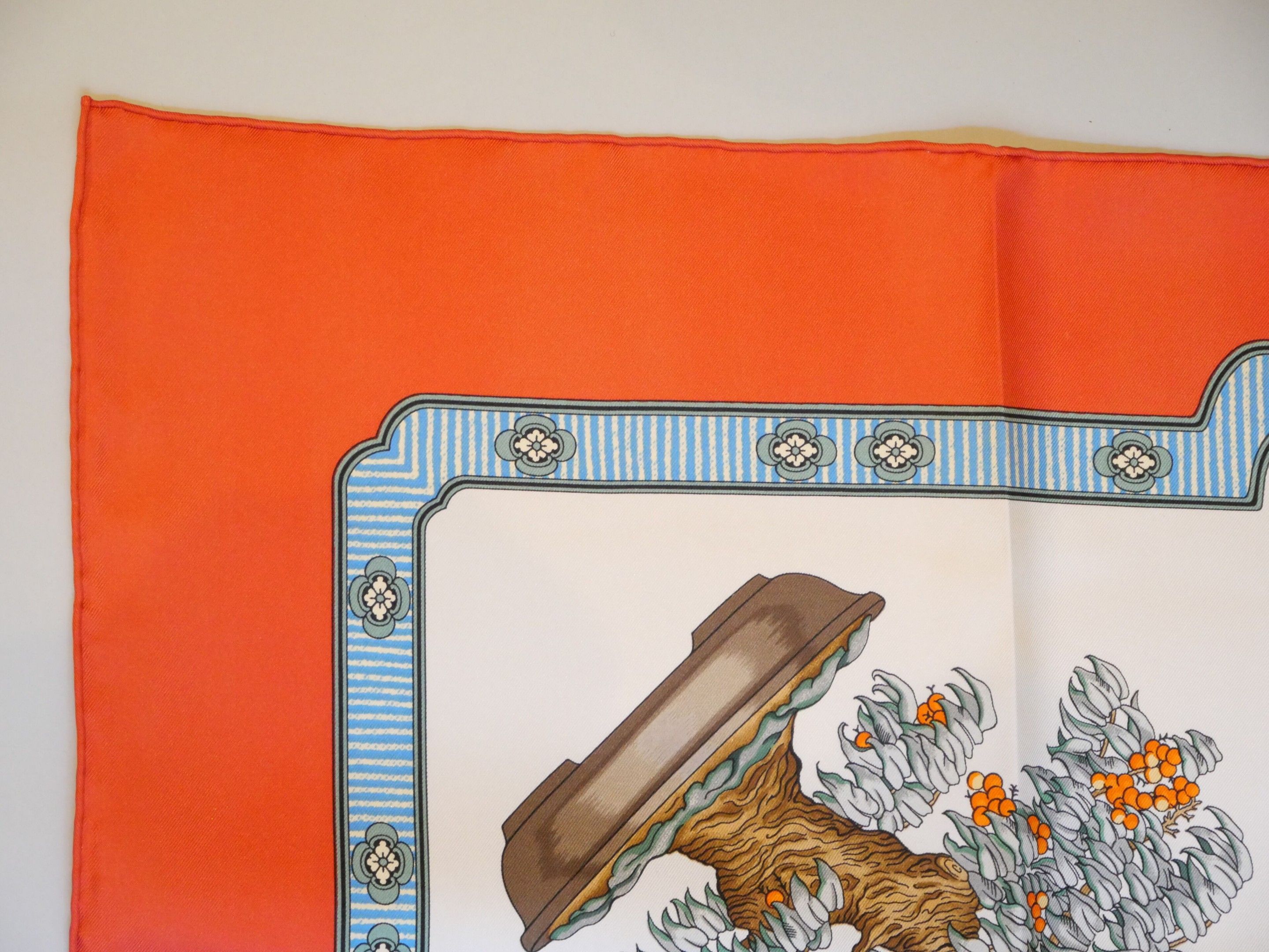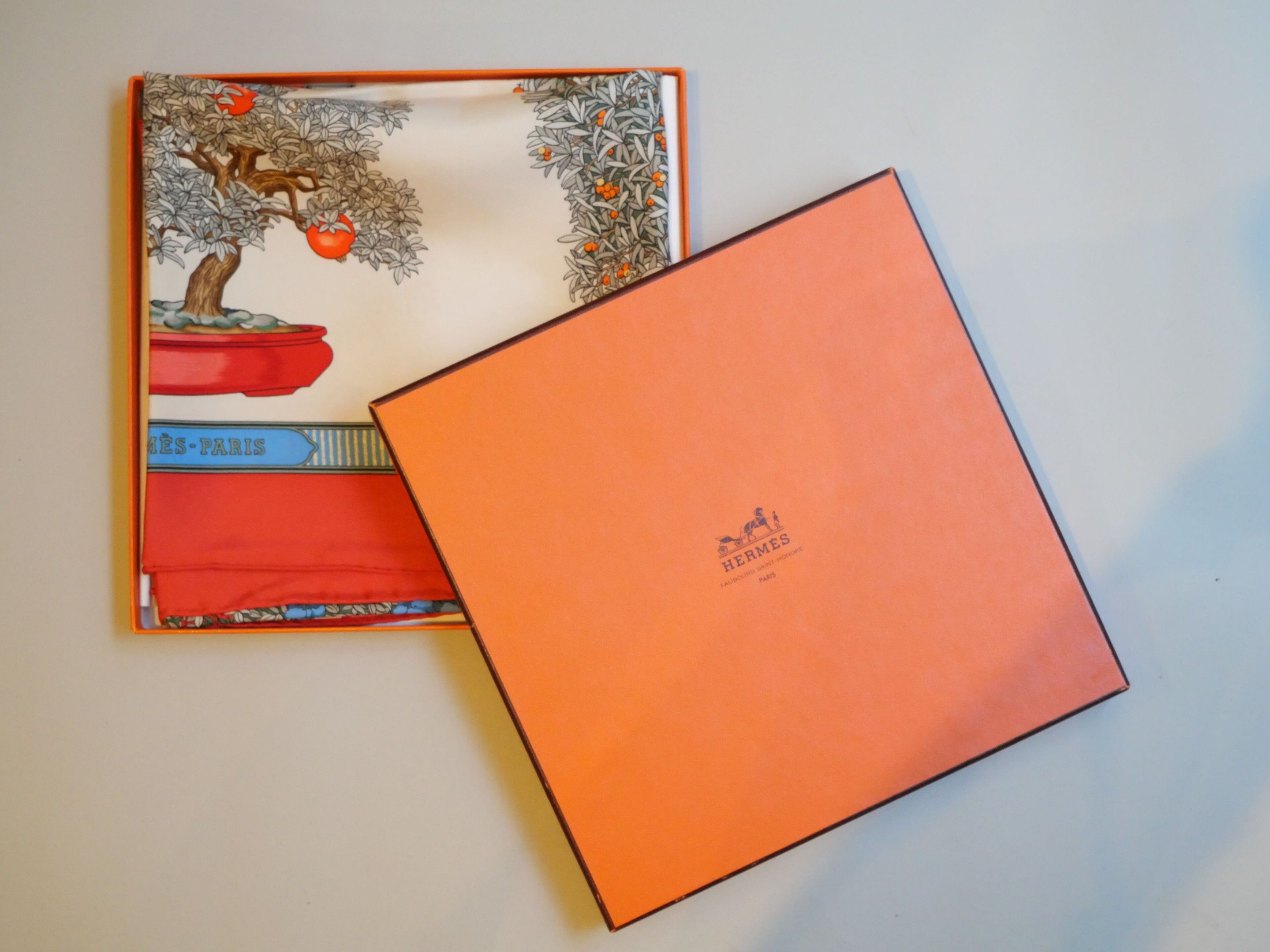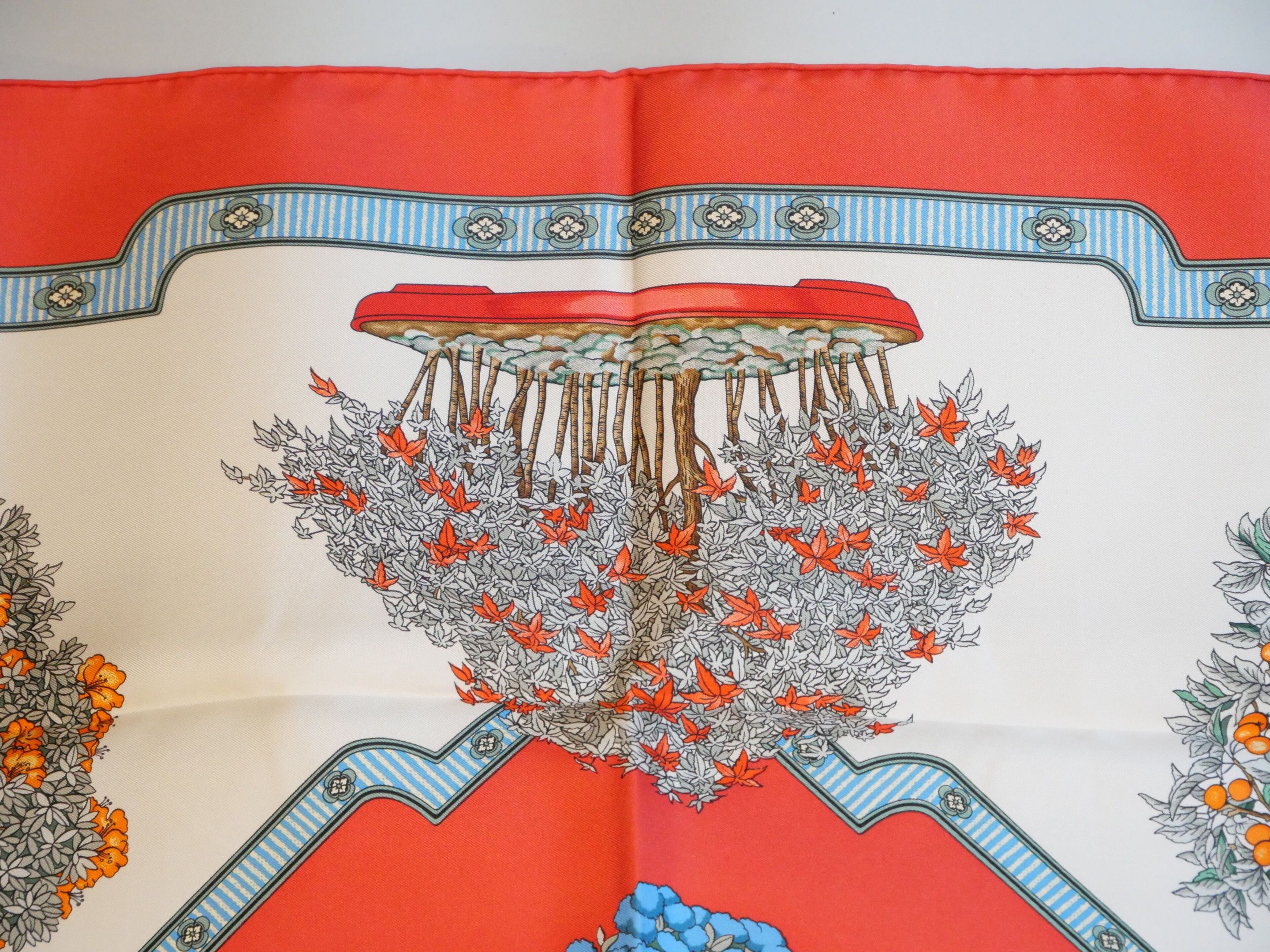 HERMES, Paris Square in silk twill, titled "Bonsaï", white b…