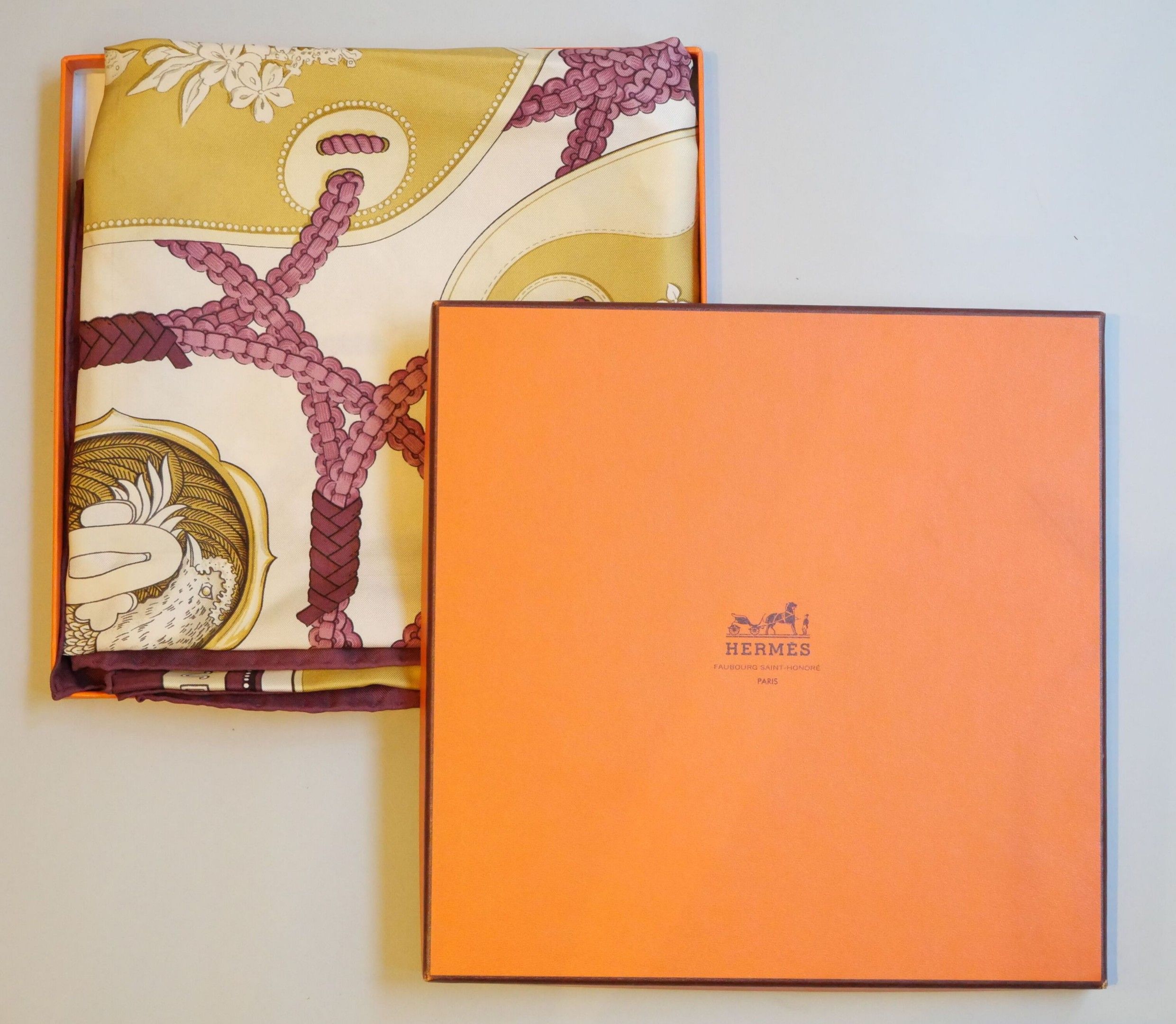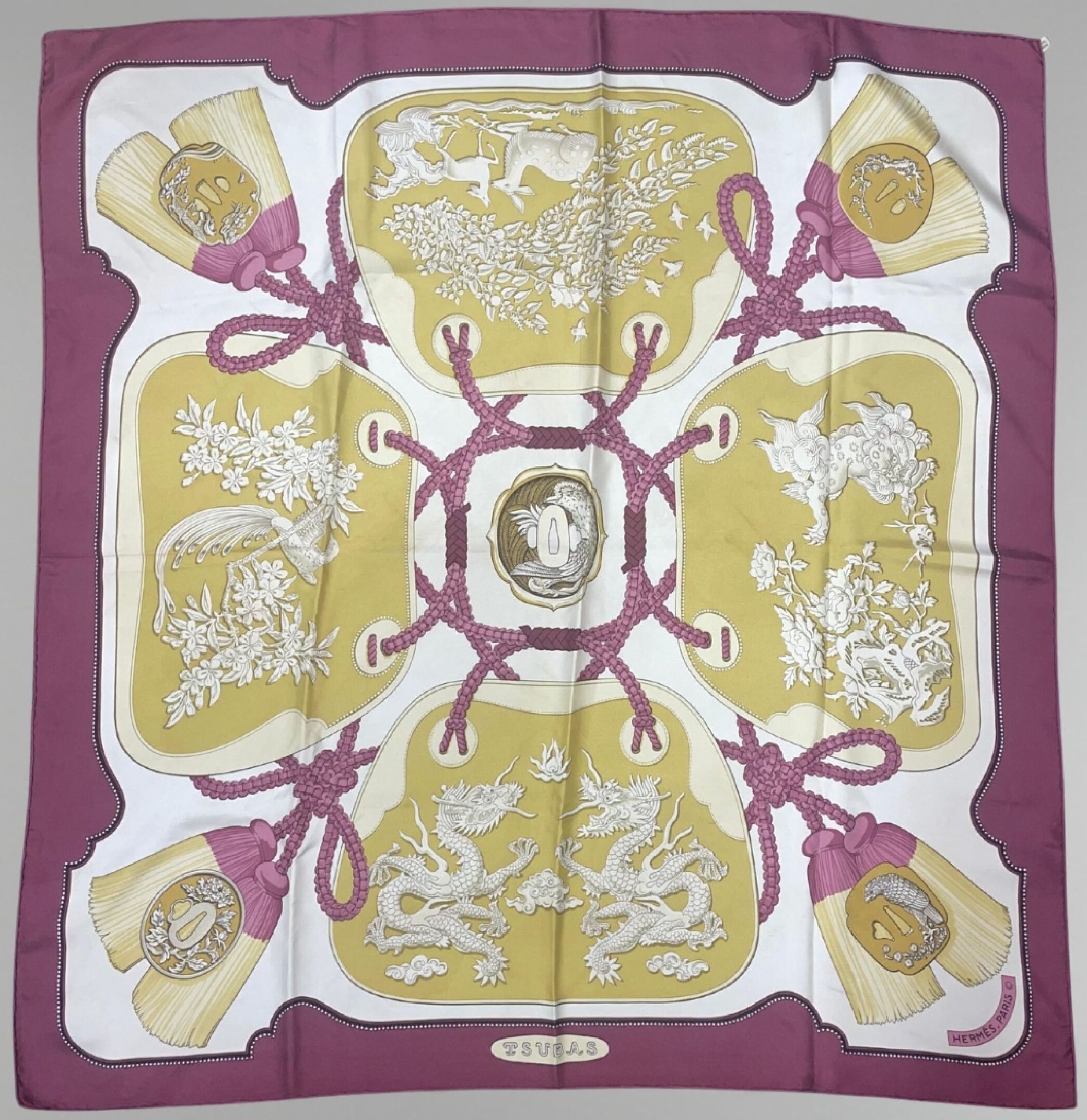 HERMES, Paris Square in printed silk twill, titled "Tsubas",…