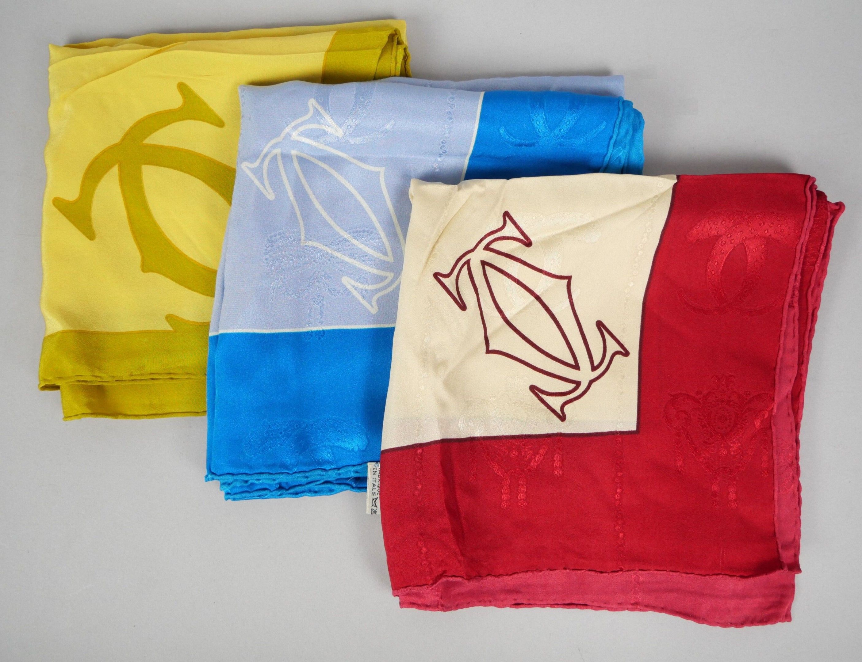MUST DE CARTIER Set of three squares in silk twill, one deco…