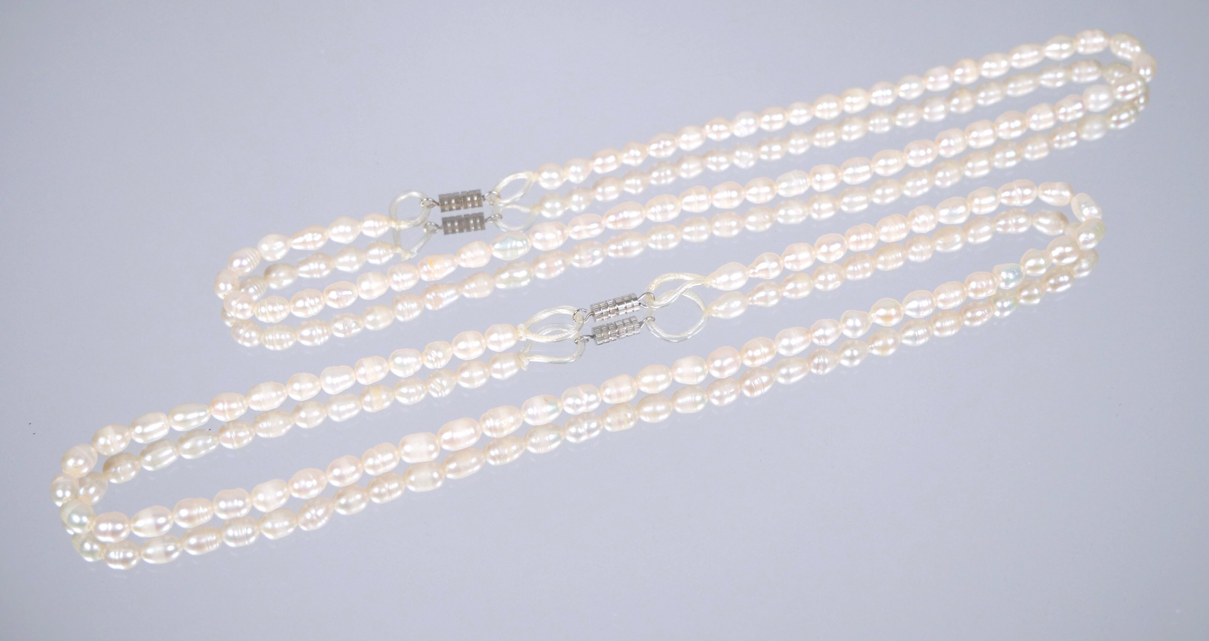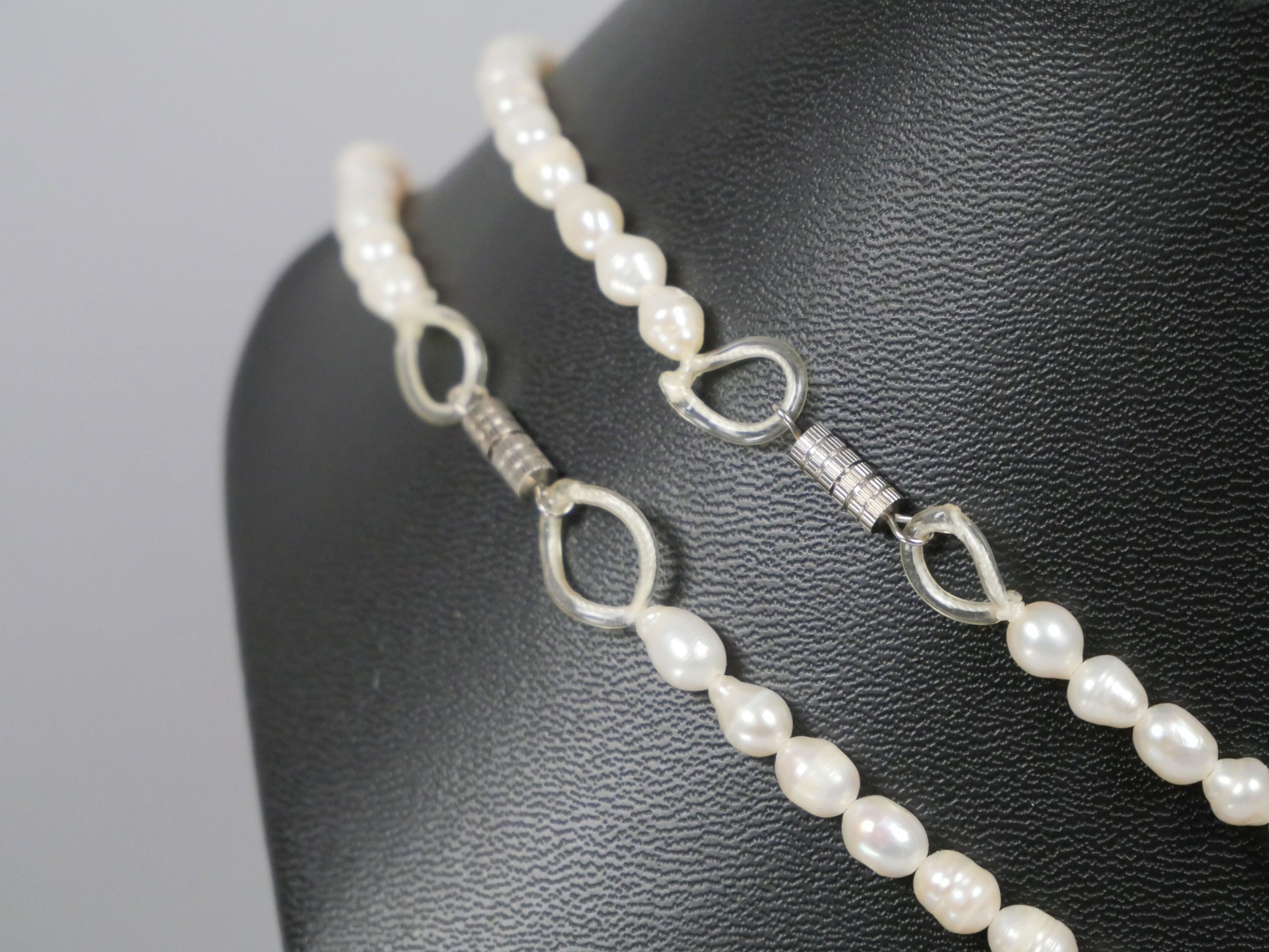 Reunion of two baroque pearl necklaces. Screw clasp.