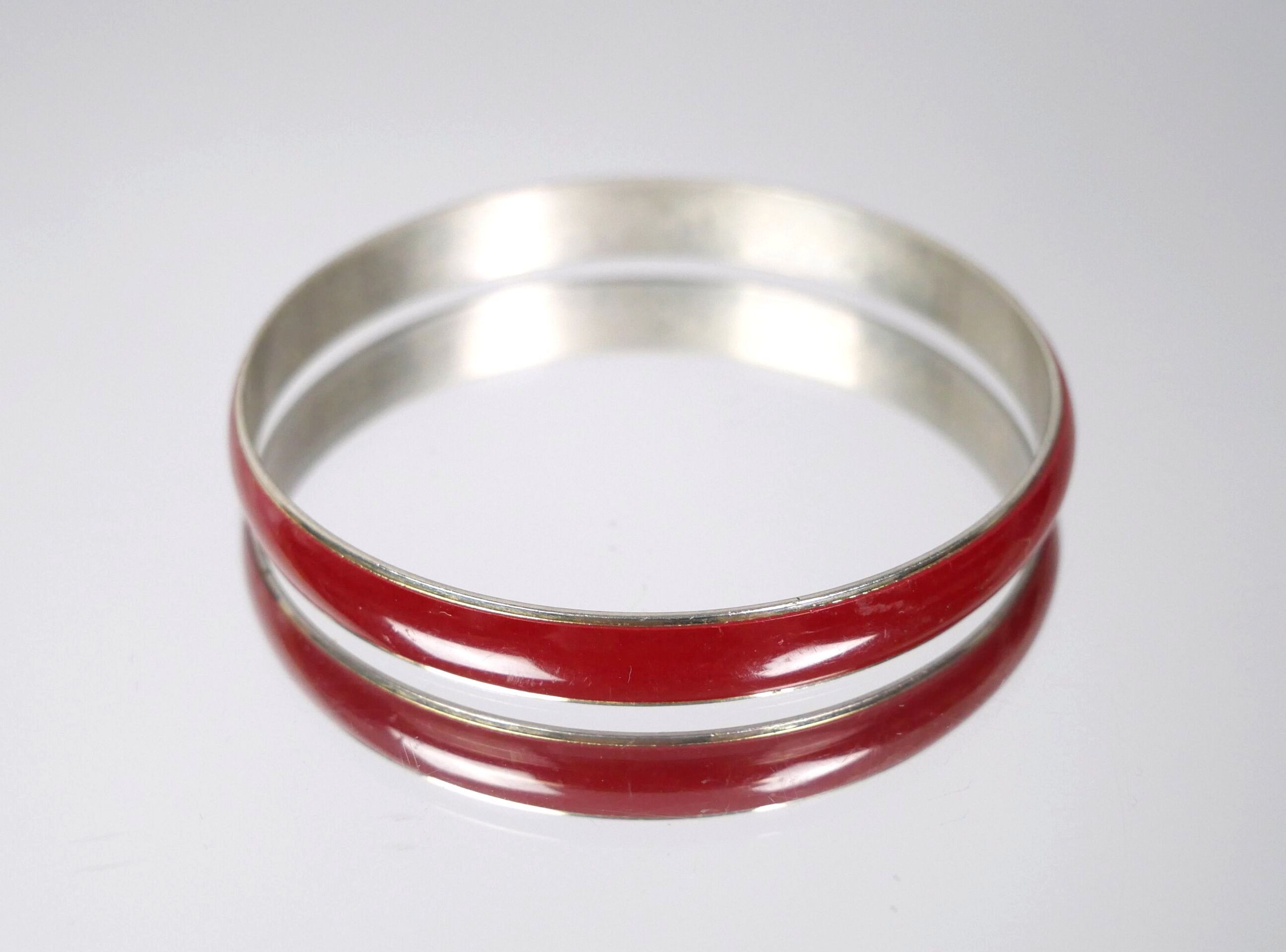 - Bracelet in red enamelled metal. Diameter: 7 cm