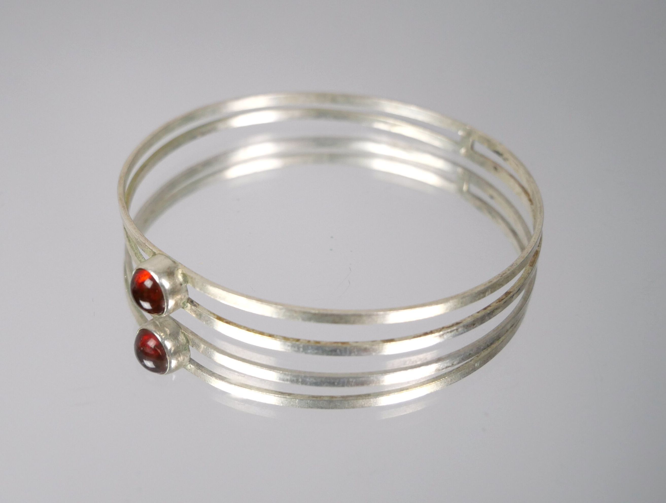 - Openwork silver bracelet set with a cabochon of amber. Diameter: 7 cm - Gross weight: 10.47 g