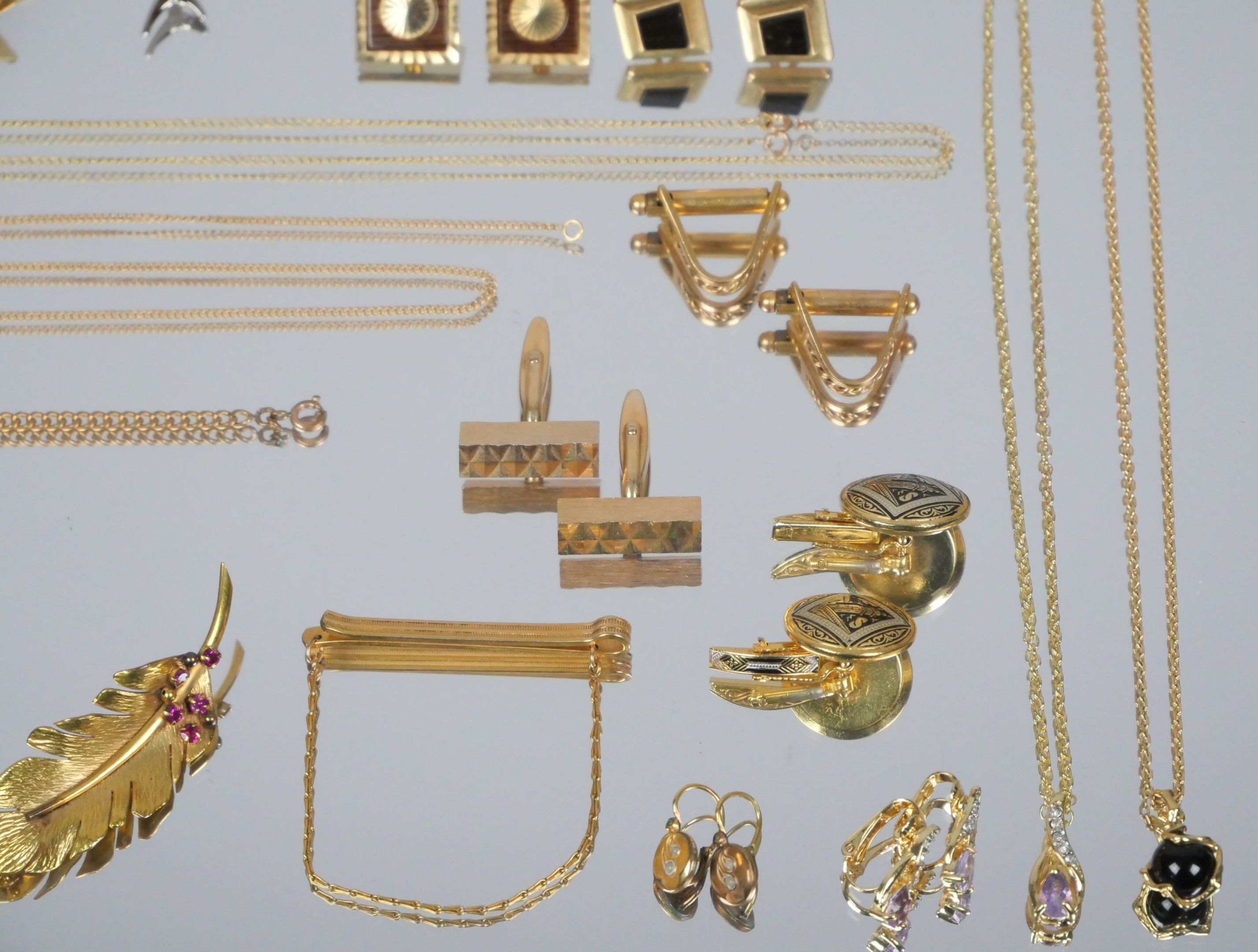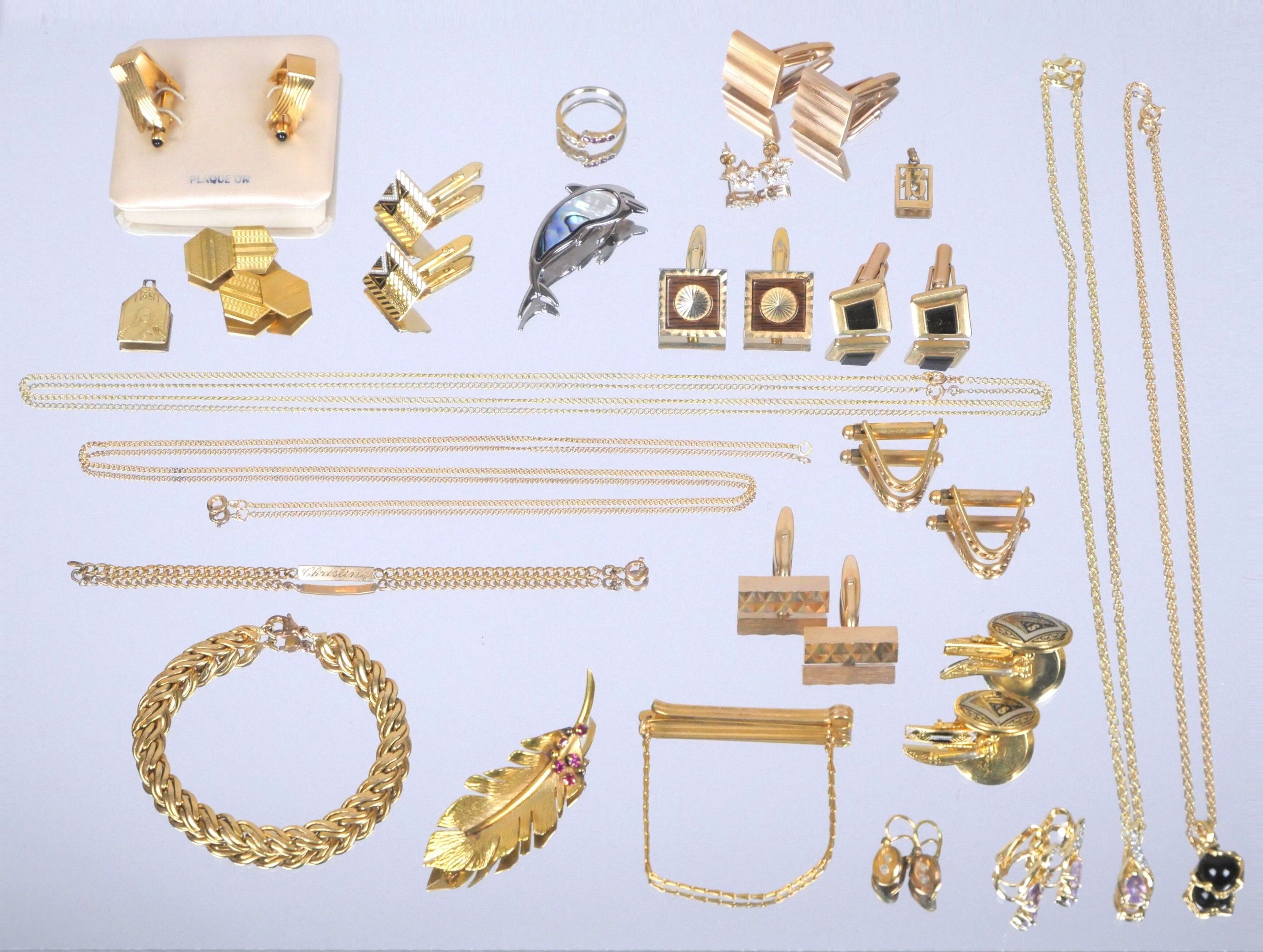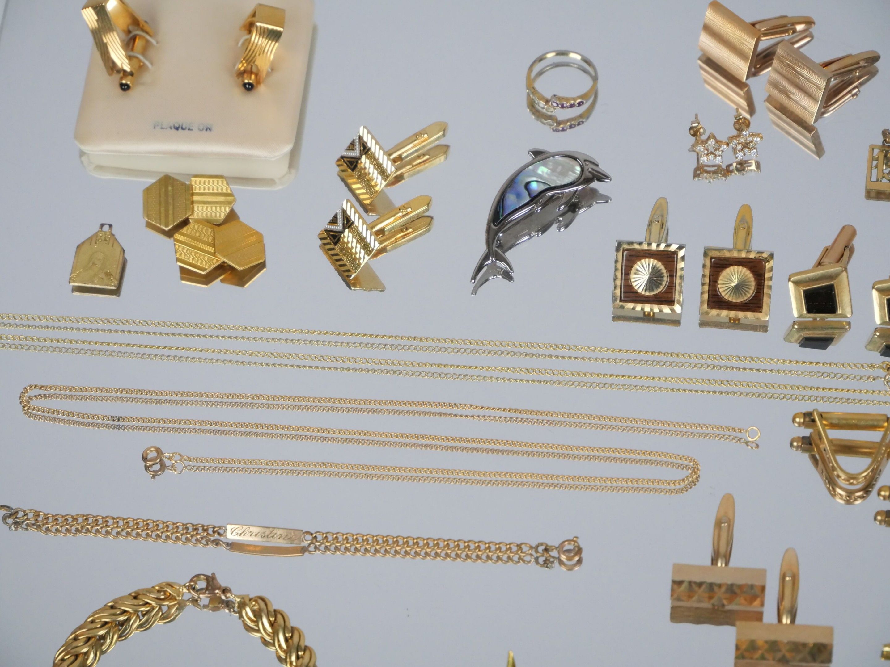 A large lot of costume jewellery in gold-plated metal or gold including :