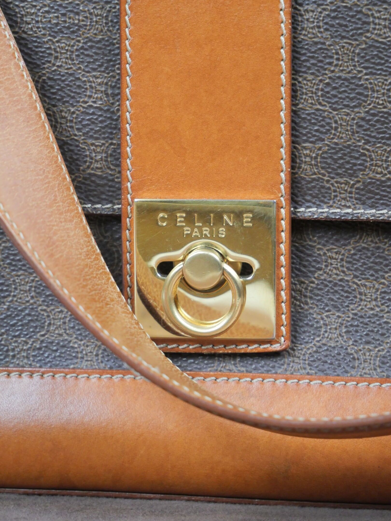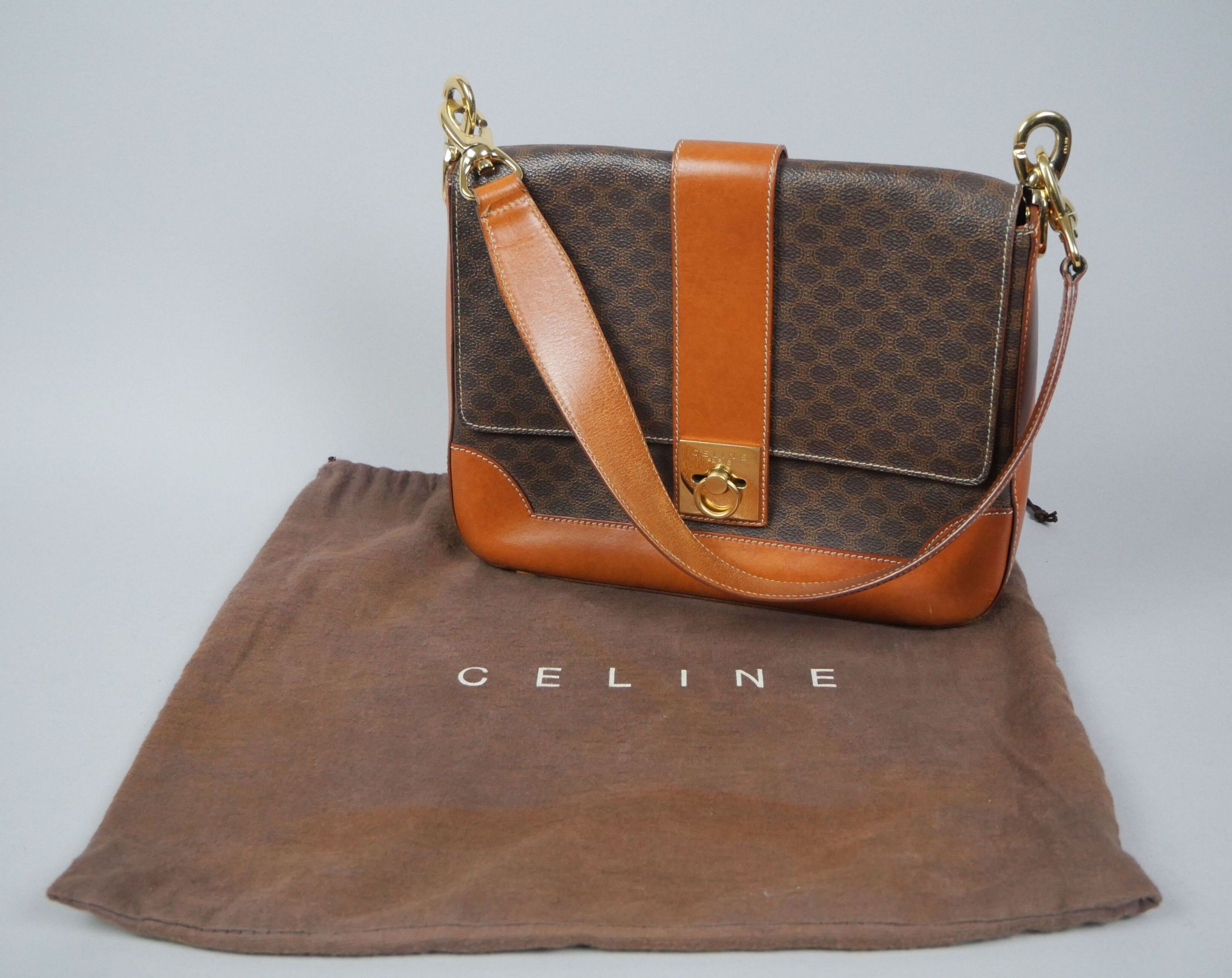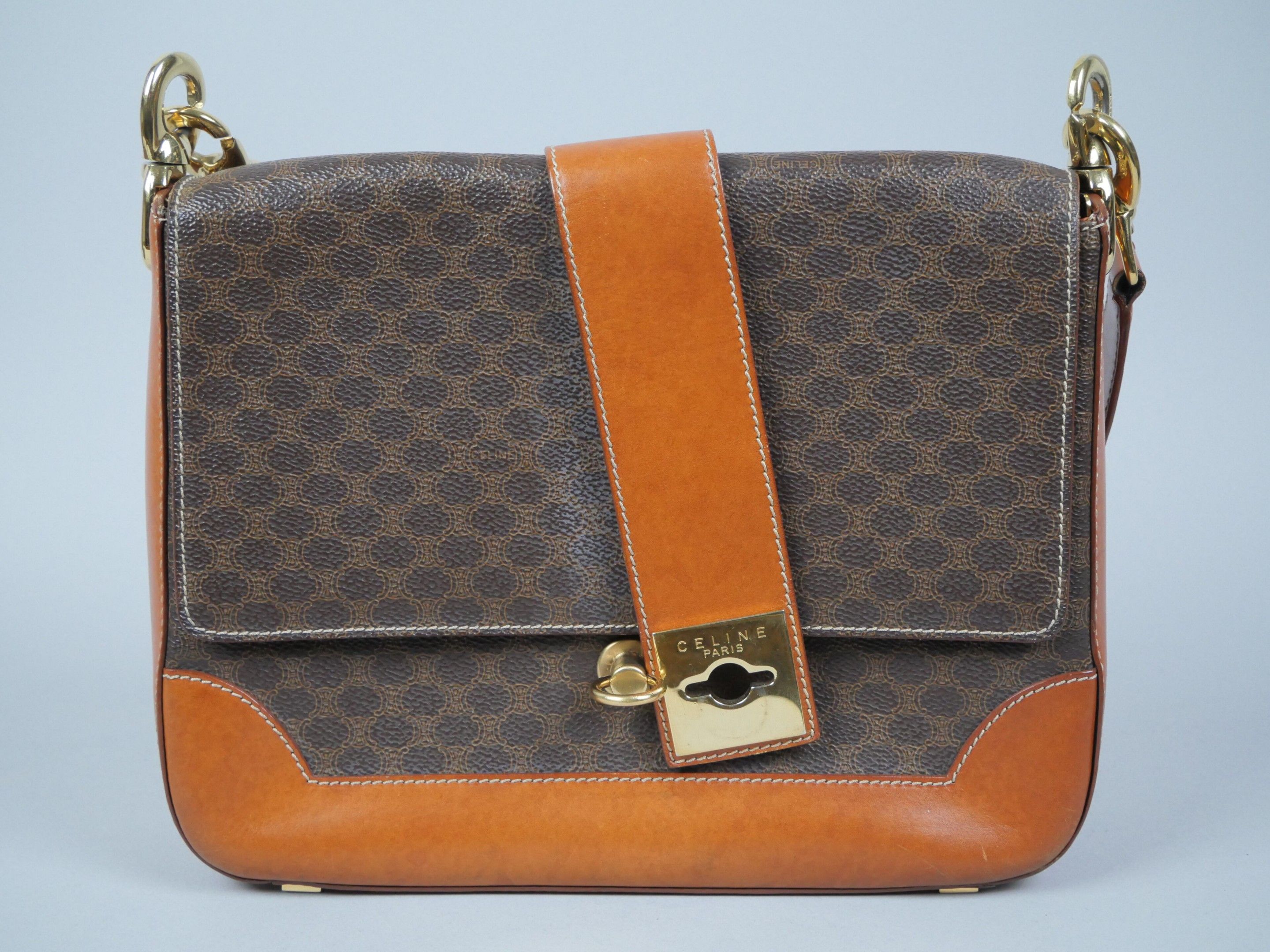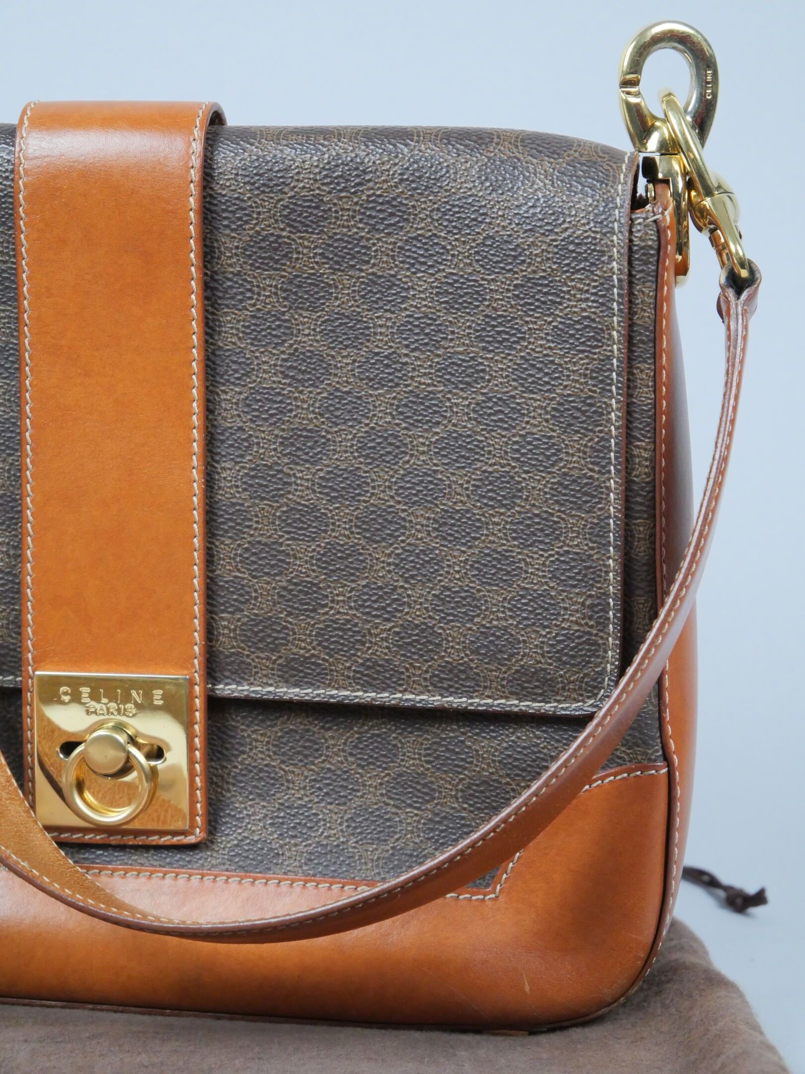 CELINE, Paris Shoulder bag in smooth fawn leather and brown …
