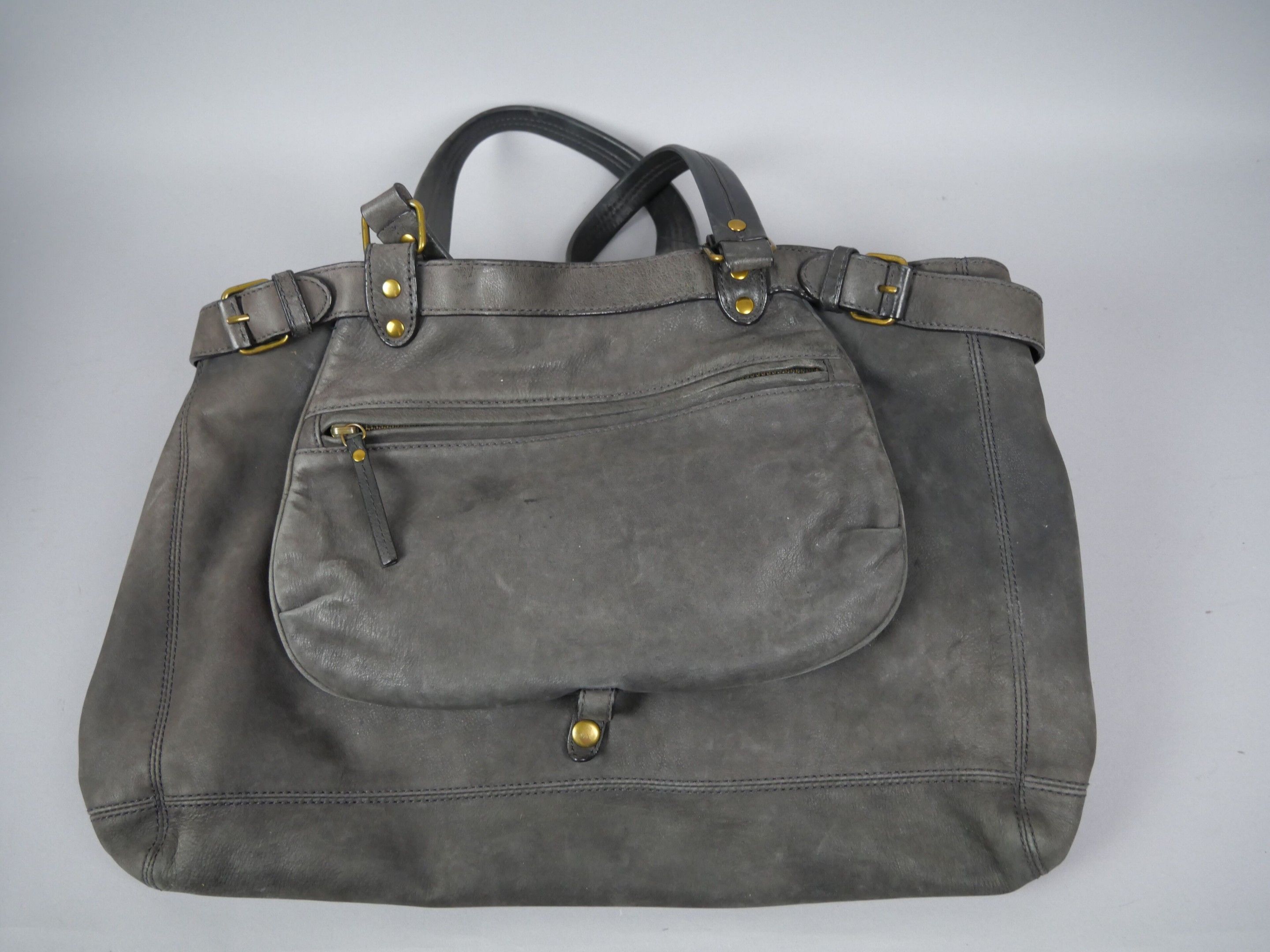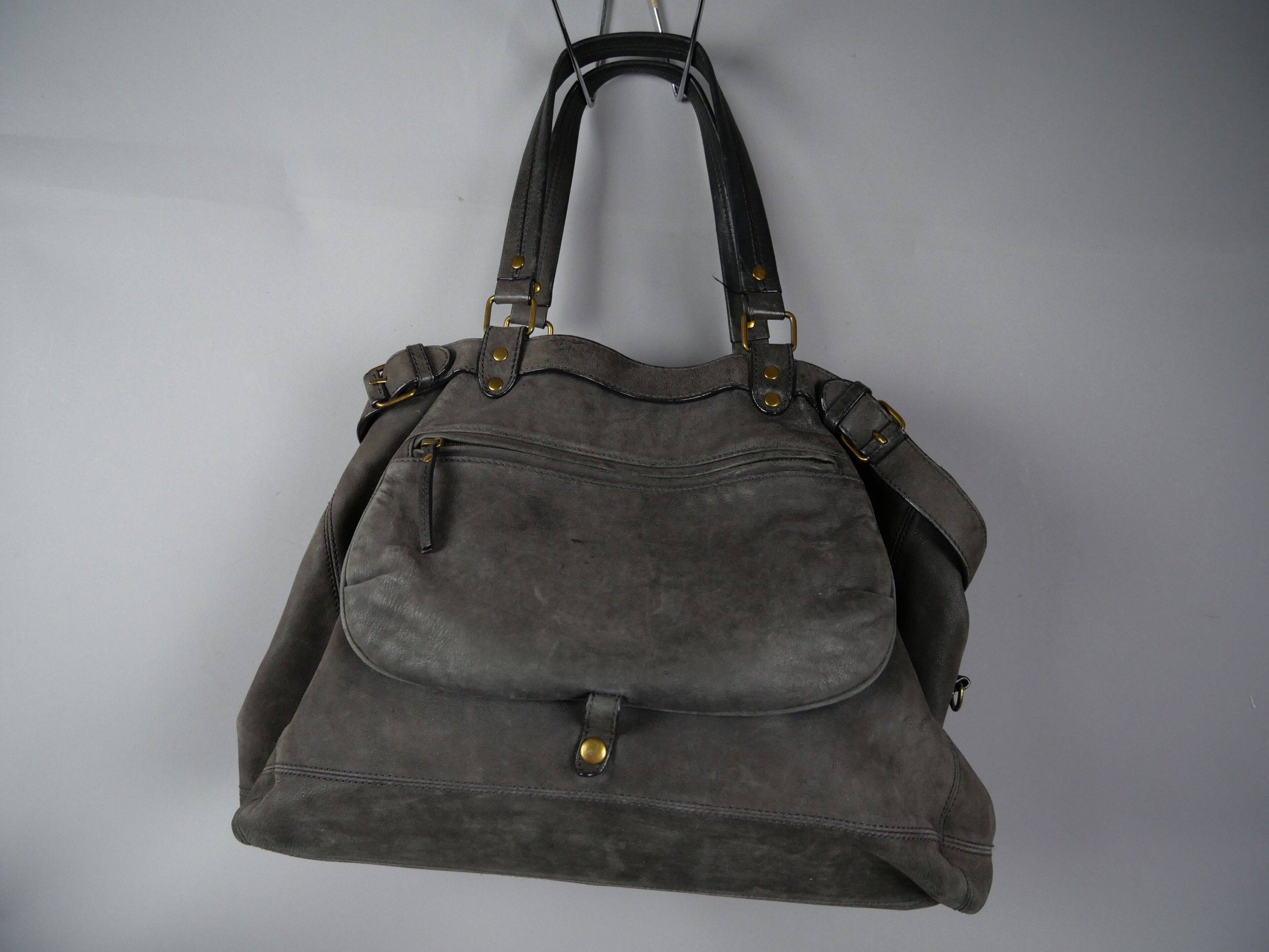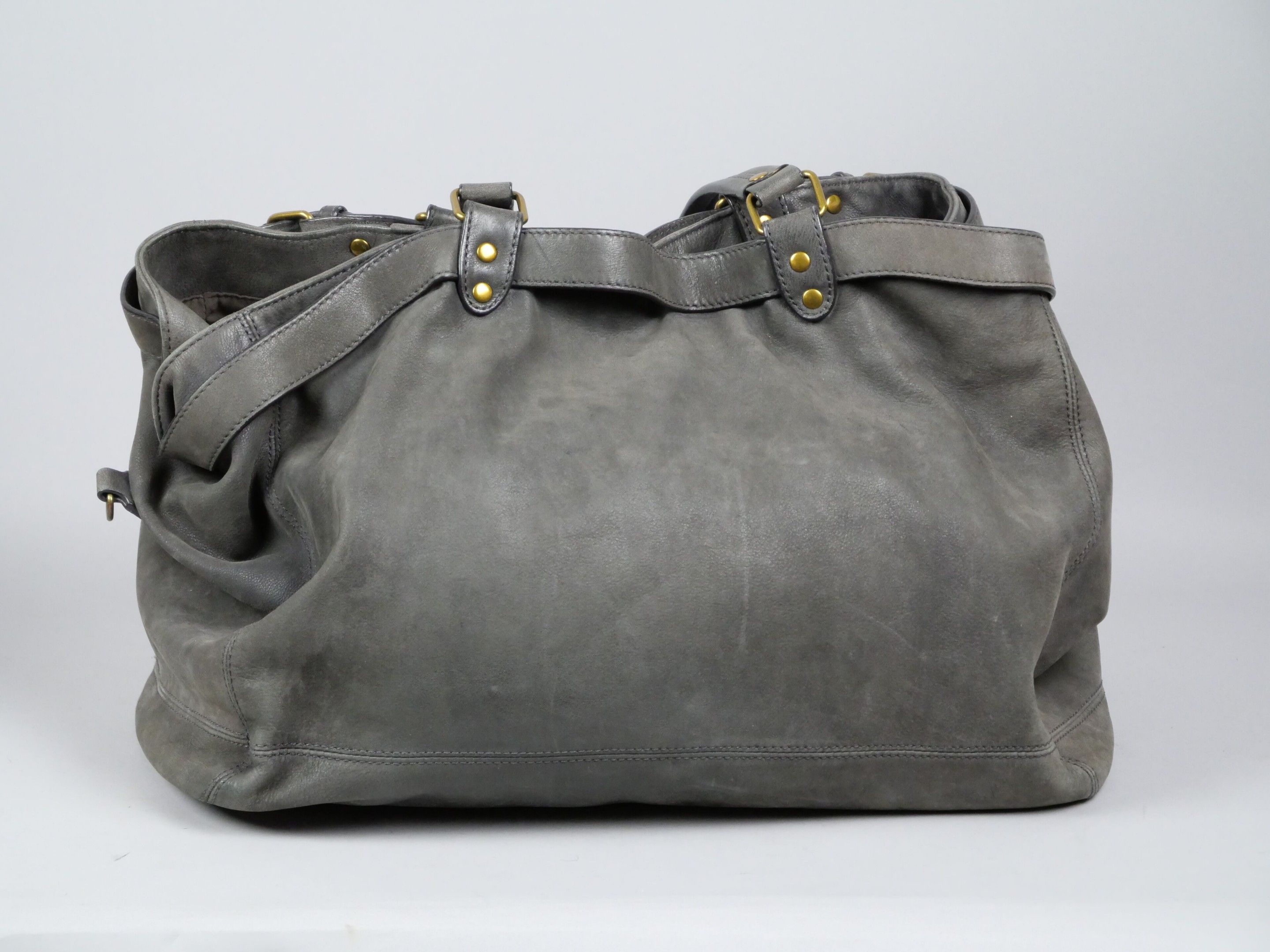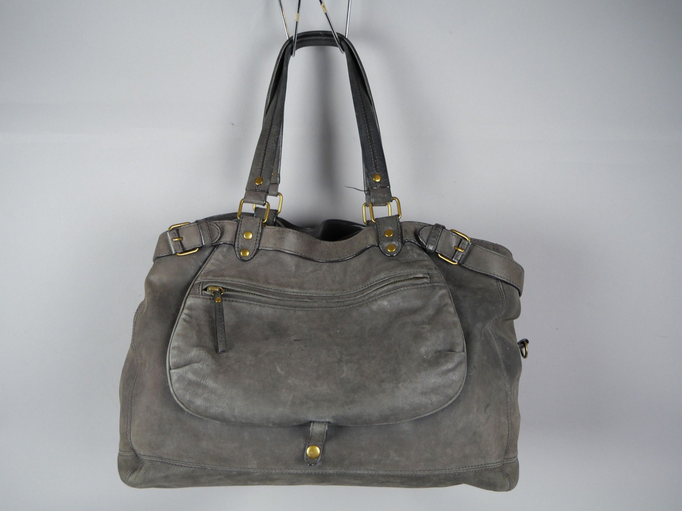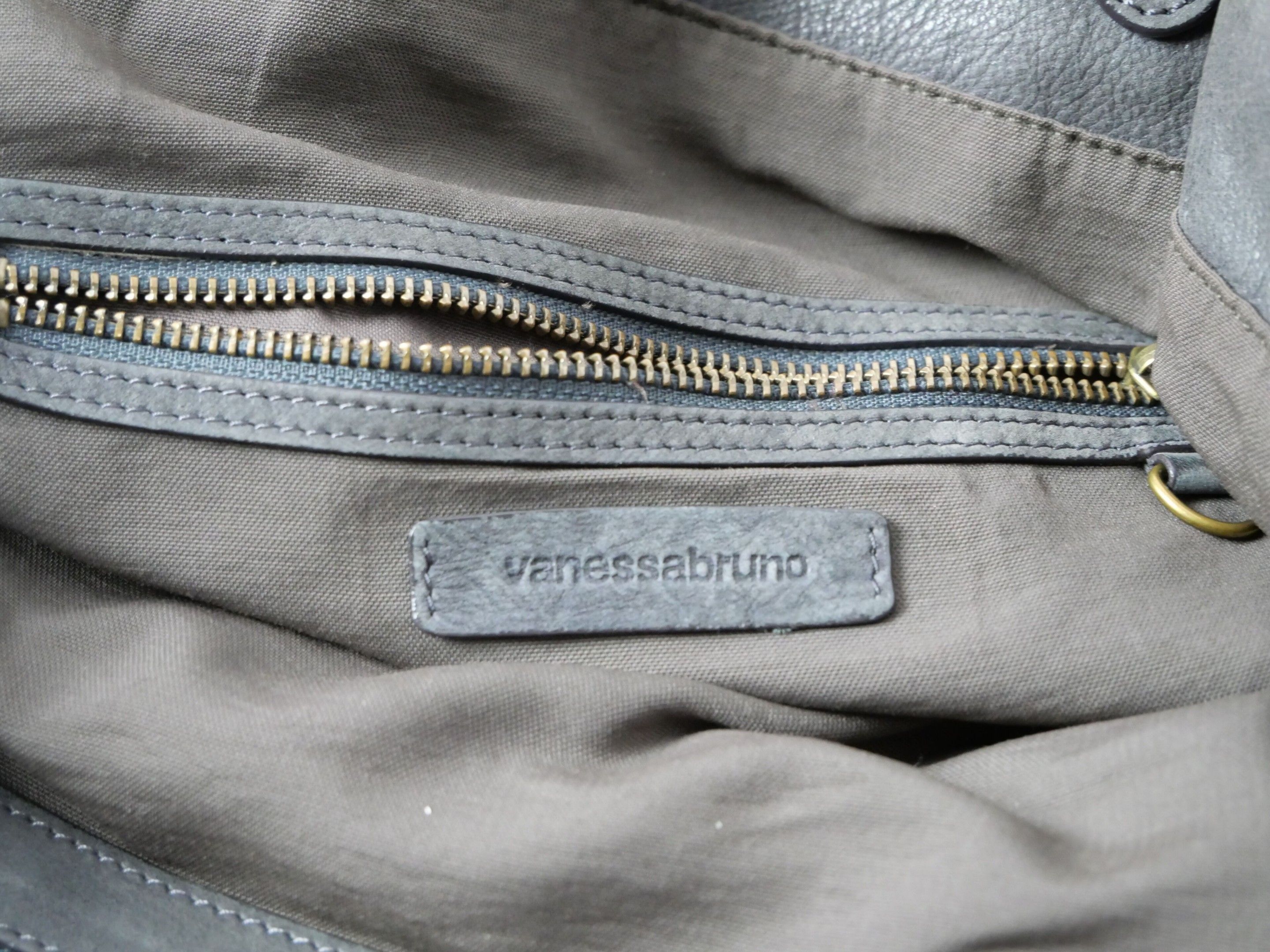 VANESSA BRUNO Moon" bag in smooth grey leather. Press stud f…