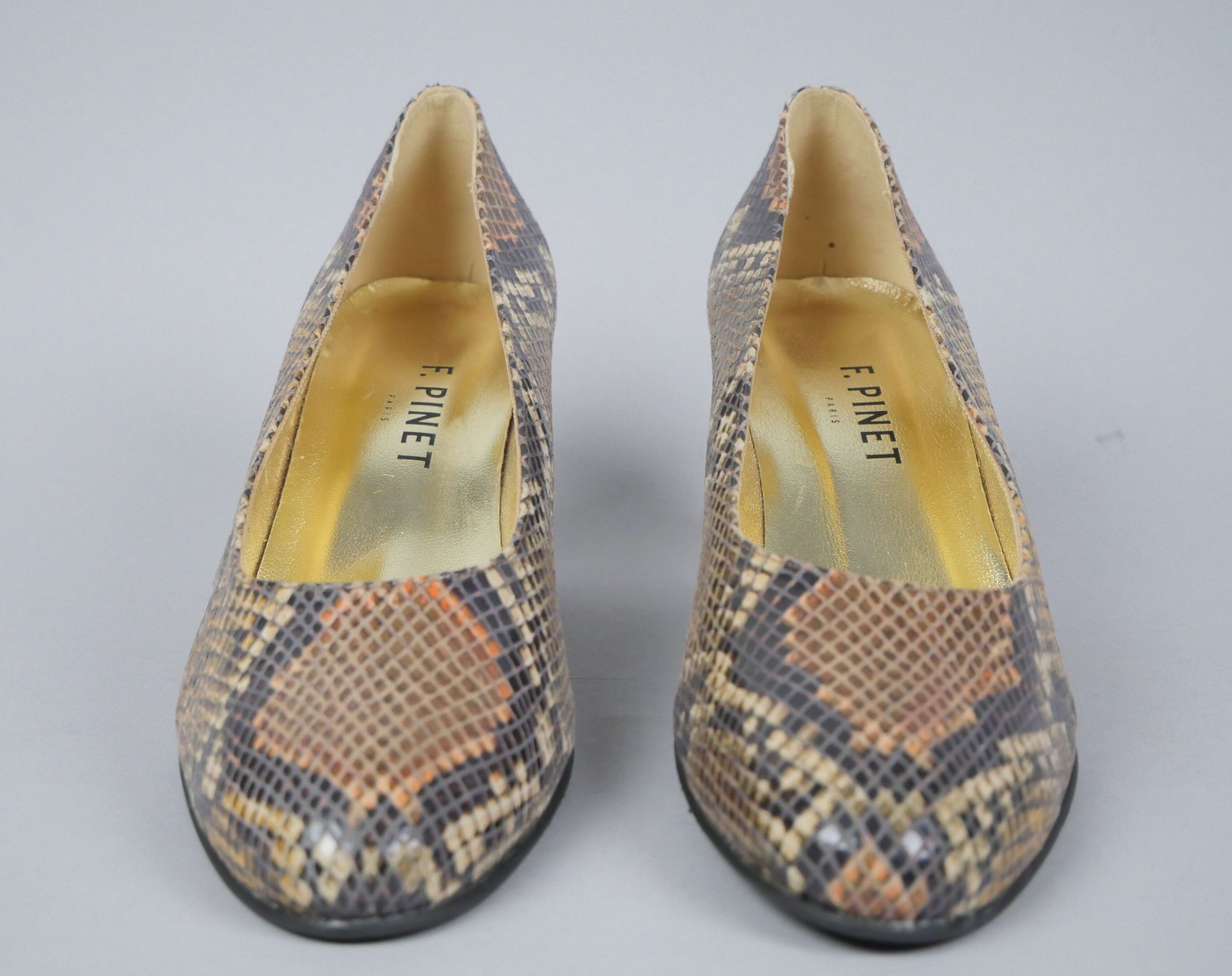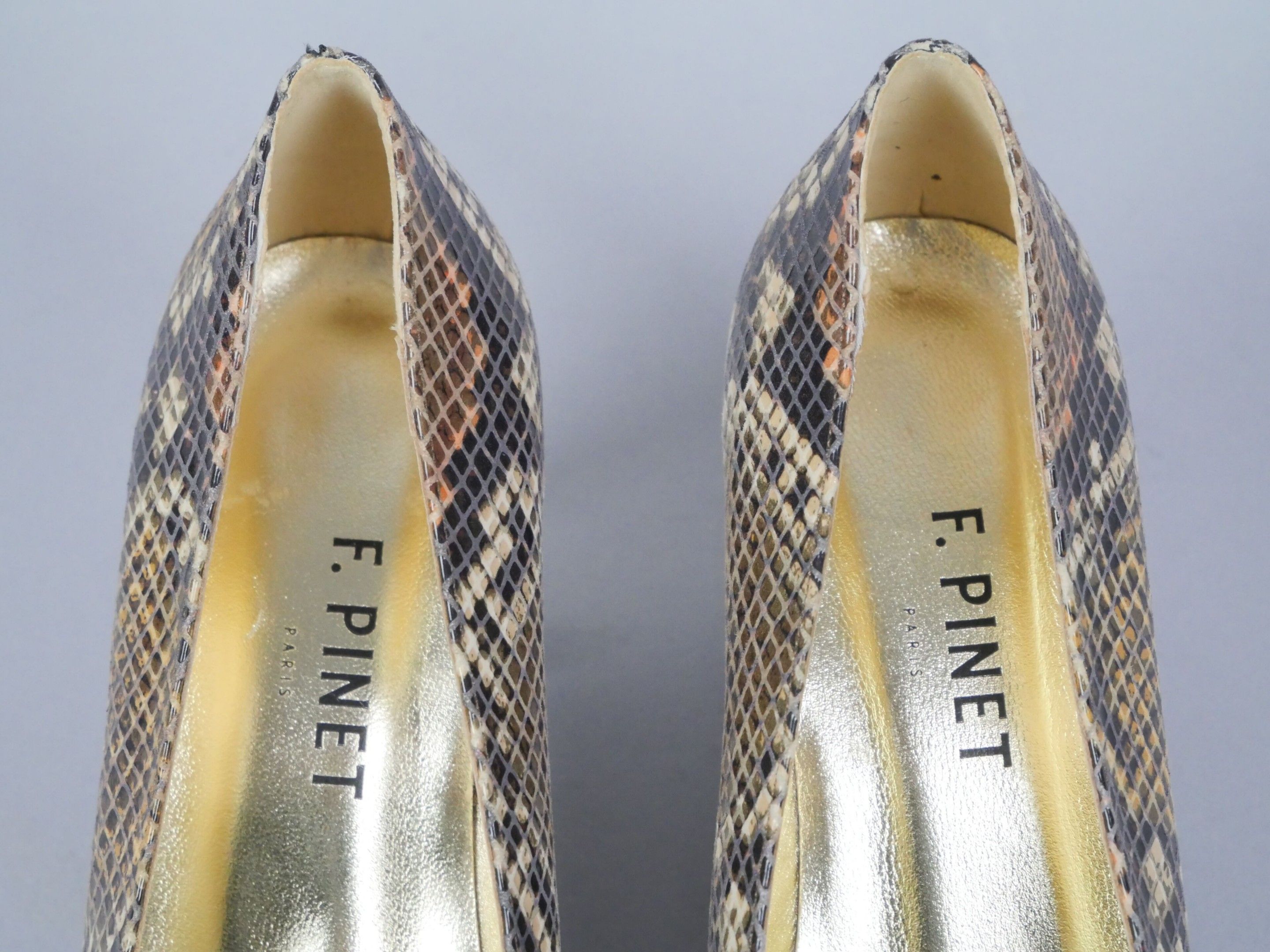 François PINET Pair of python-effect leather pumps. Transluc…