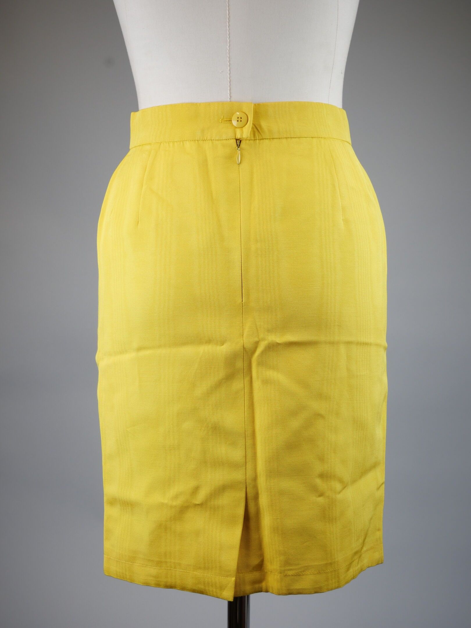 Canary yellow skirt in cotton and viscose, straight cut, slit on the front.
