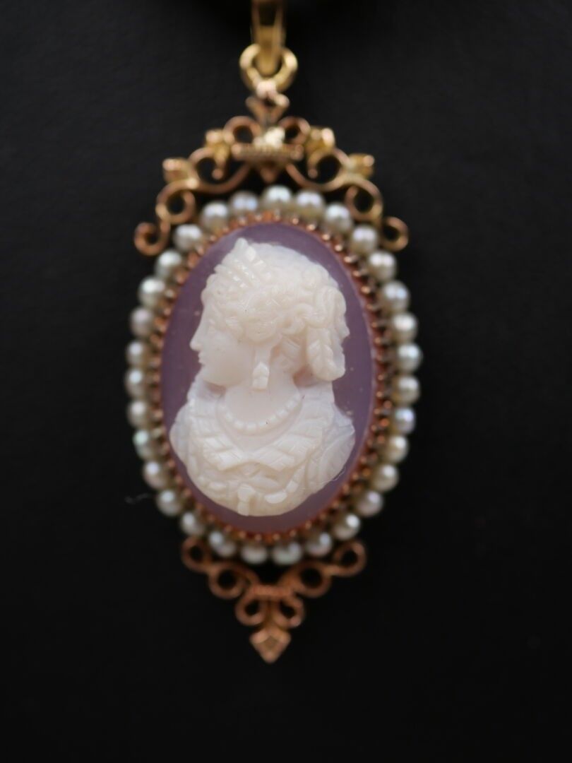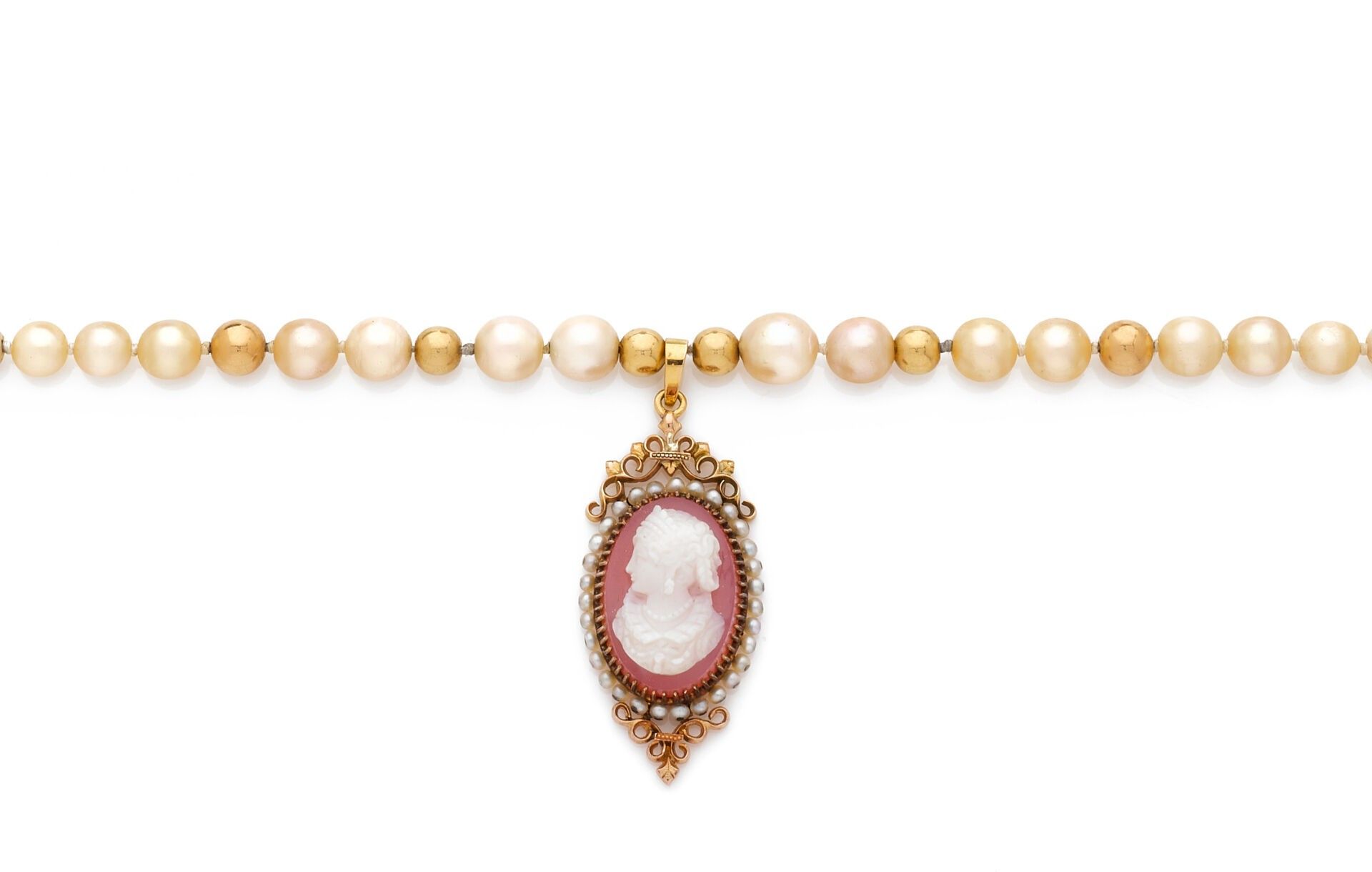 (Wear to the main pearl of the clasp, jewel resulting from a reassembly from a Napoleon III period cameo).