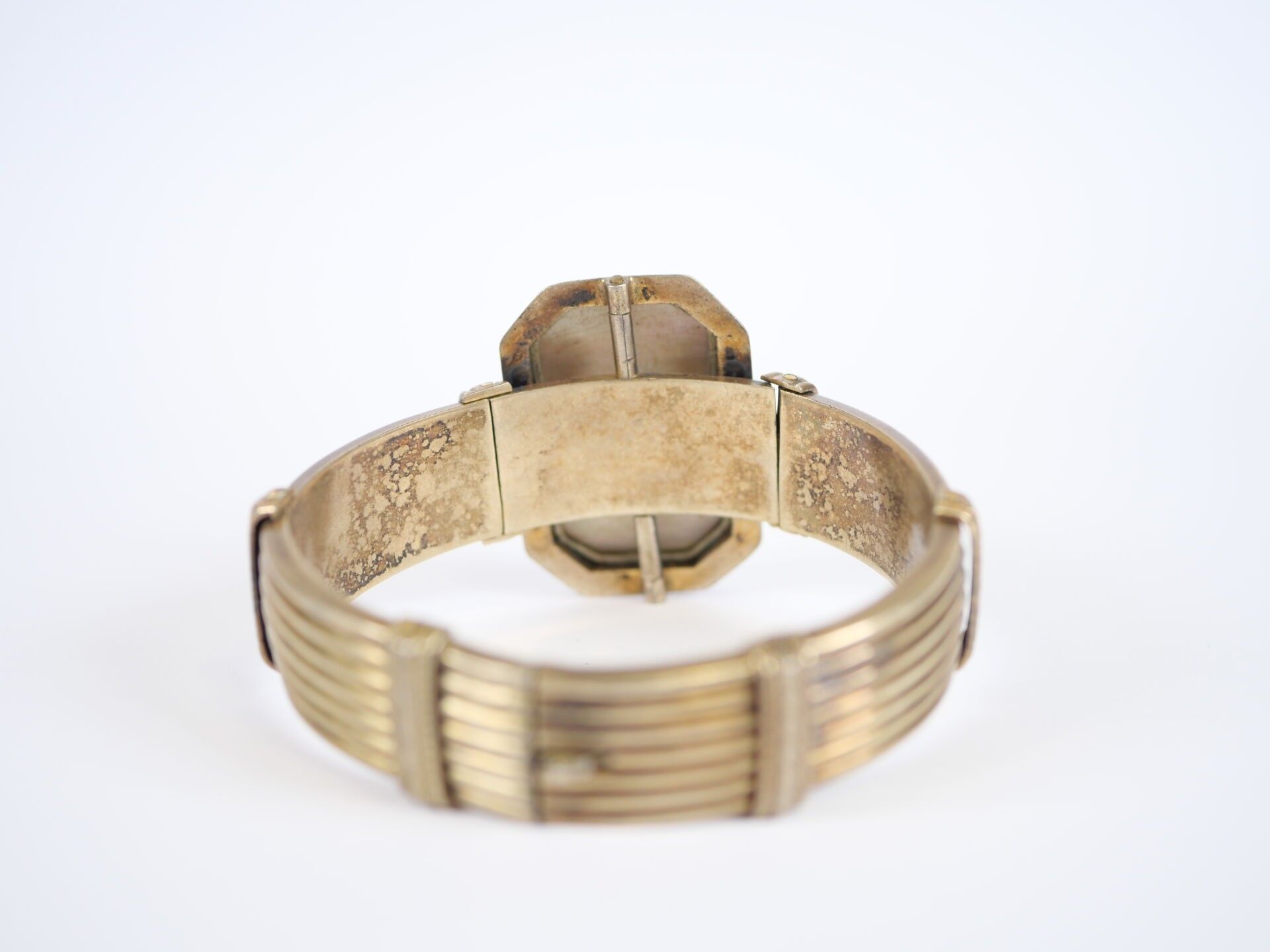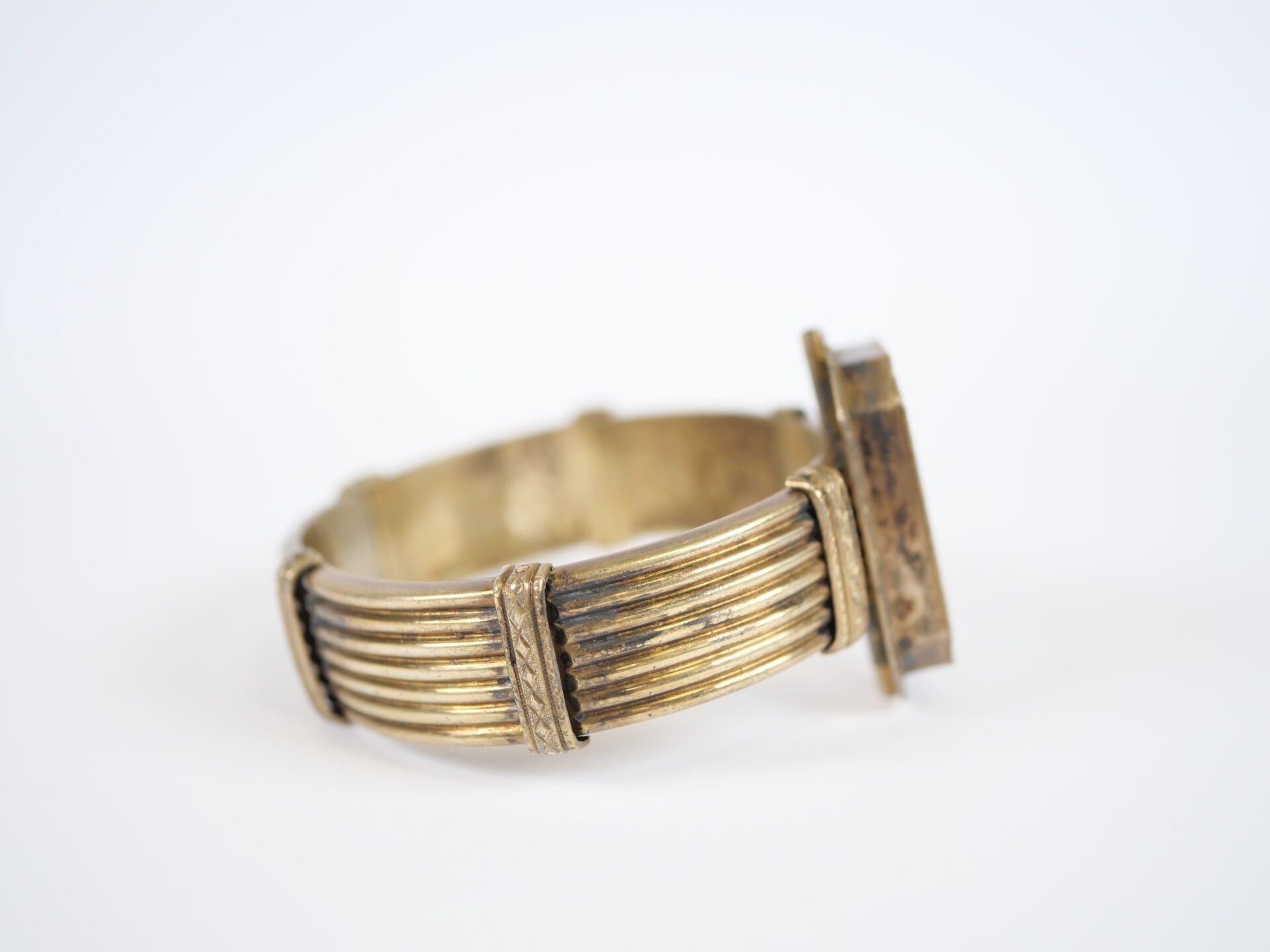 Antique gilt silver articulated bracelet, finely fluted, cen…