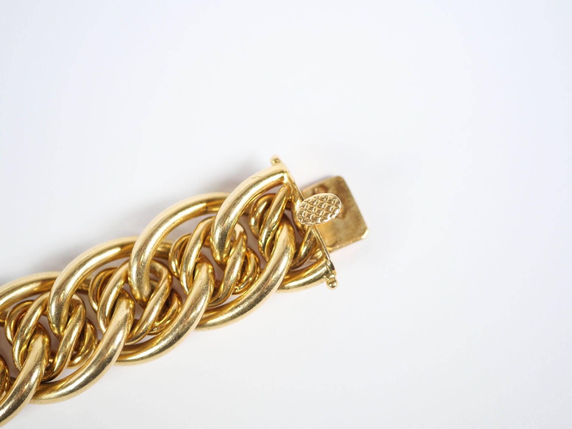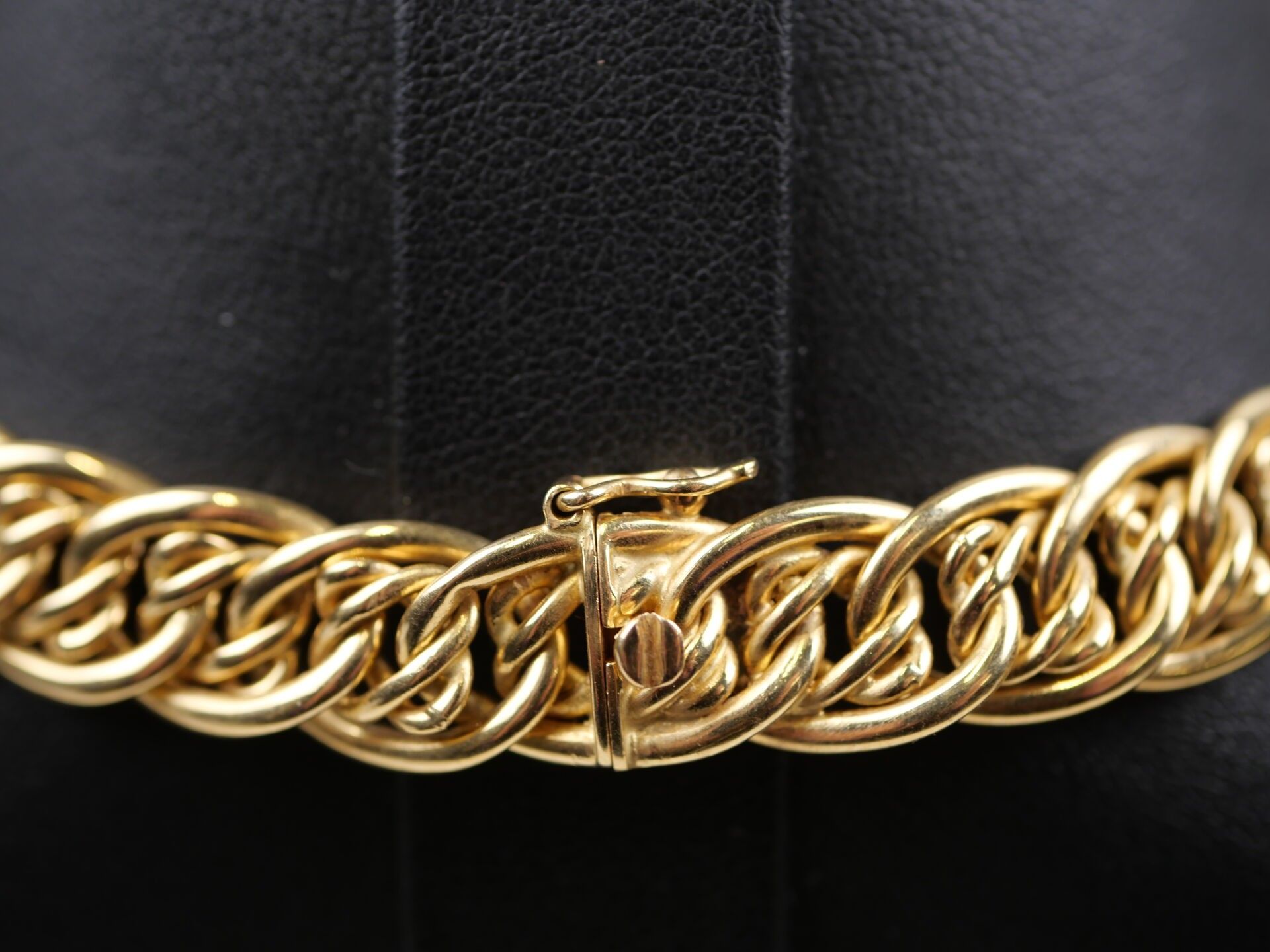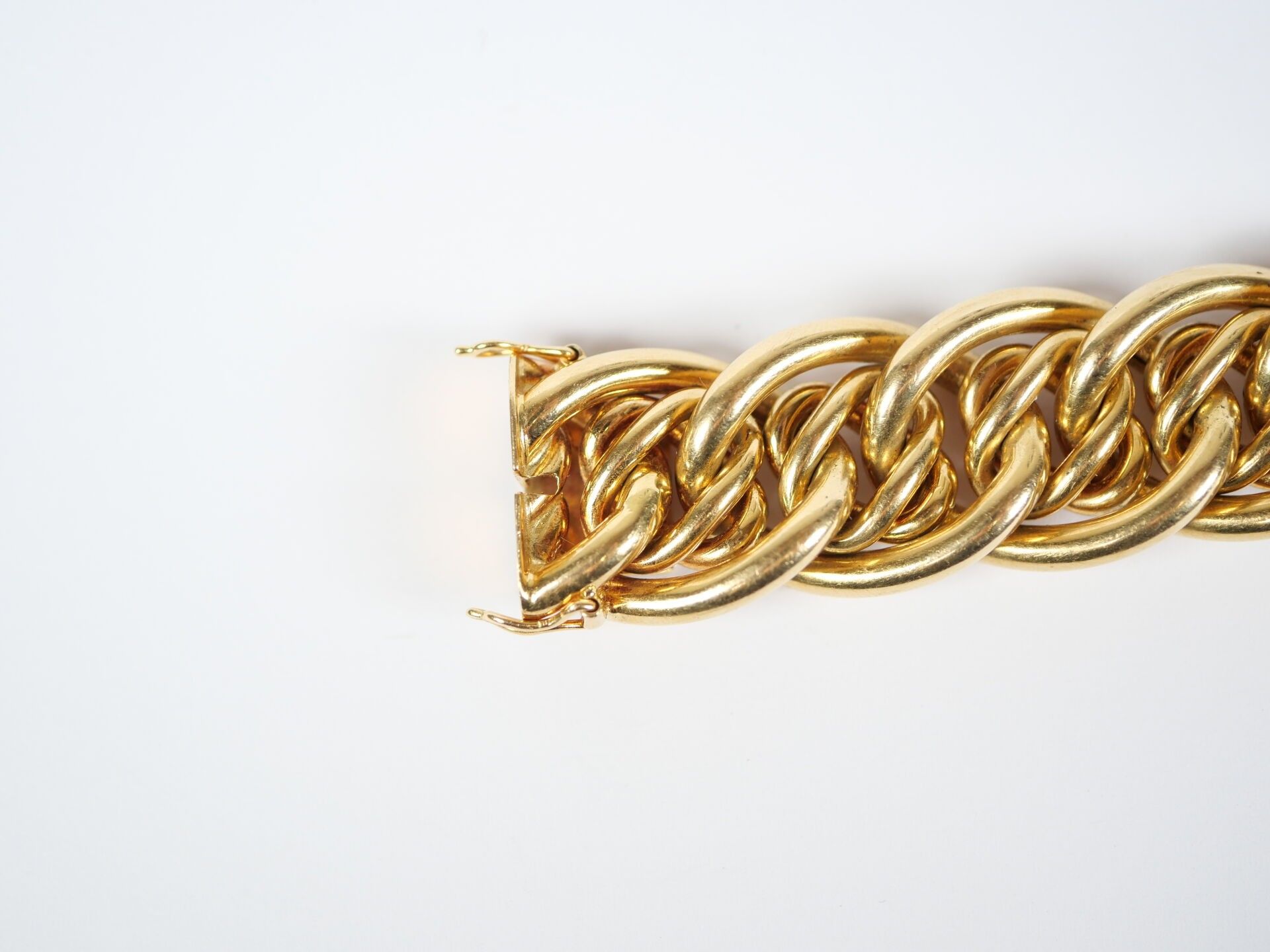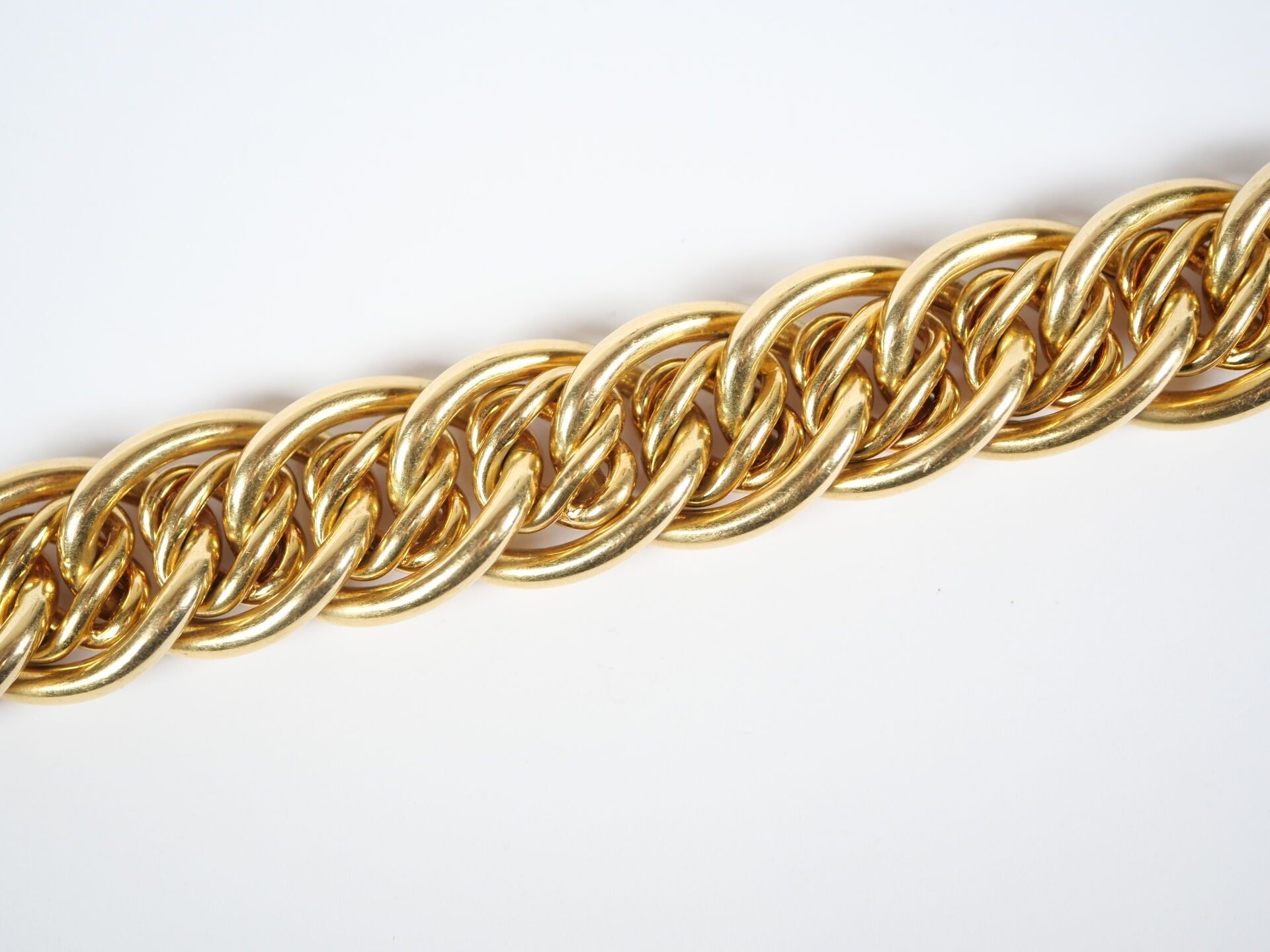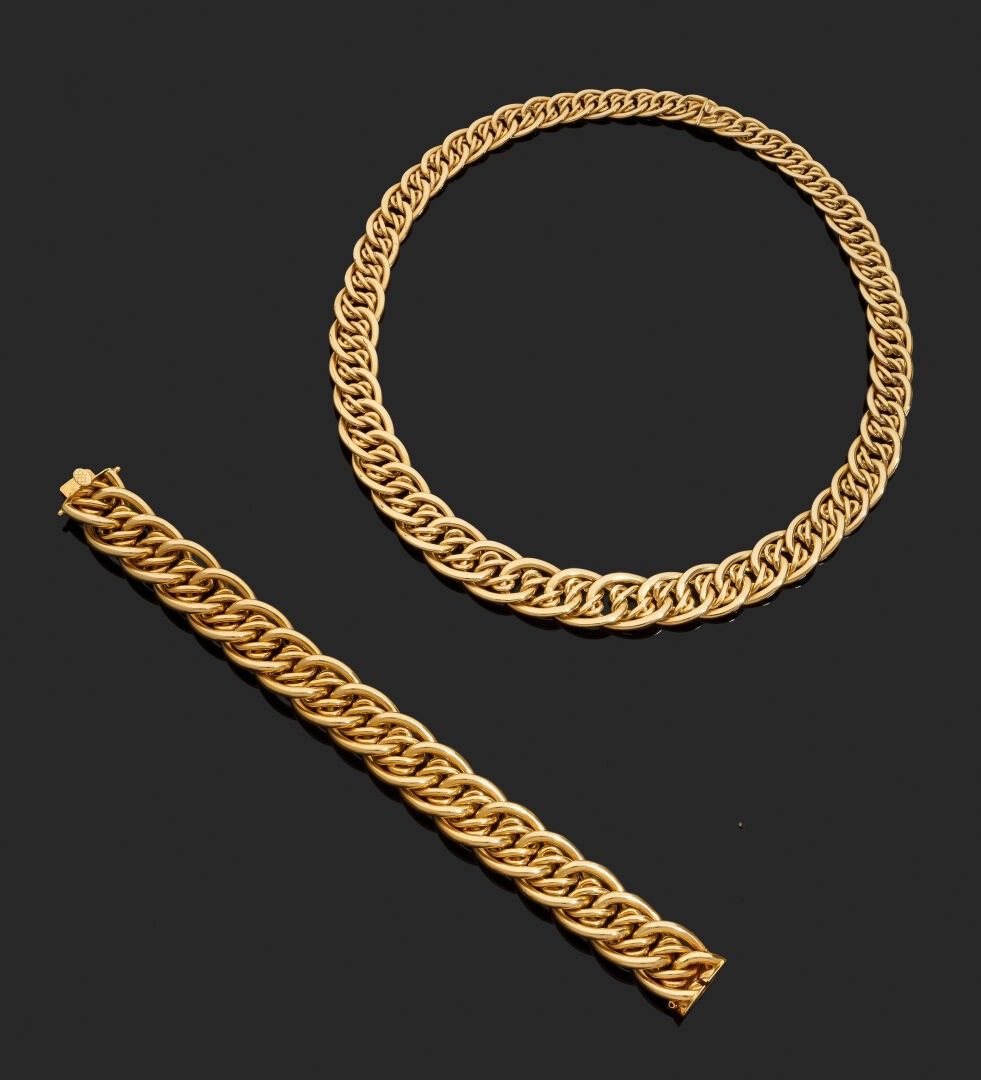 Important set in 18K (750‰) yellow gold with stylised American link comprising a necklace and bracelet.